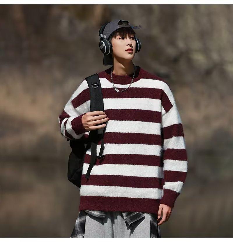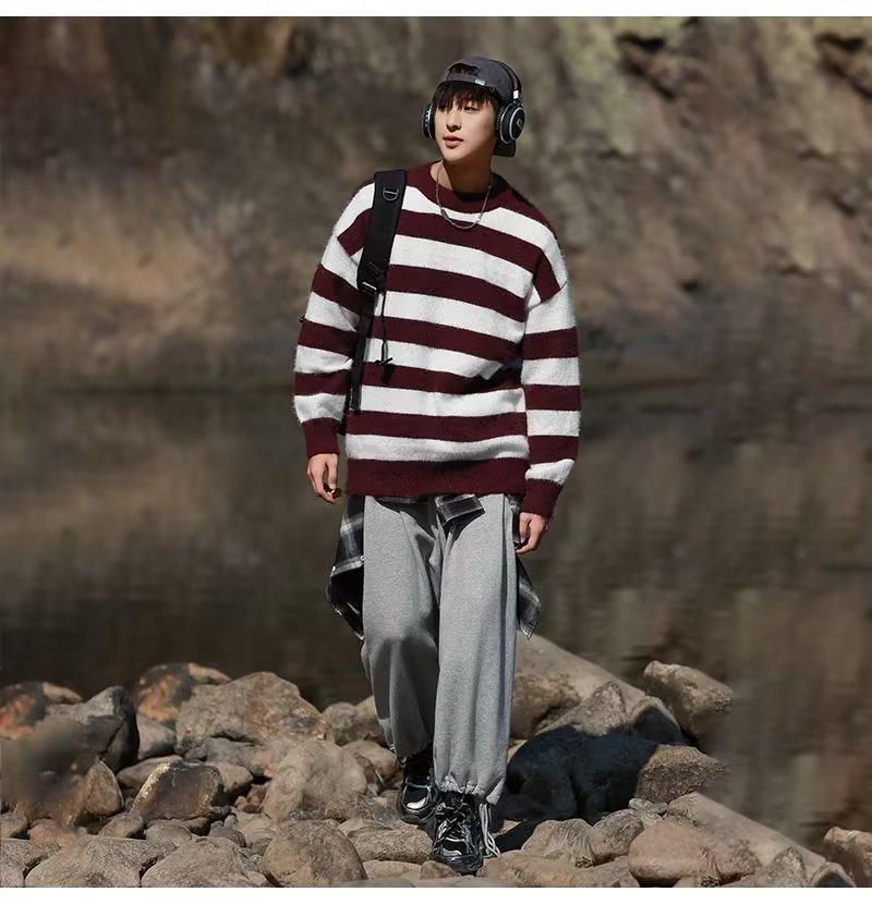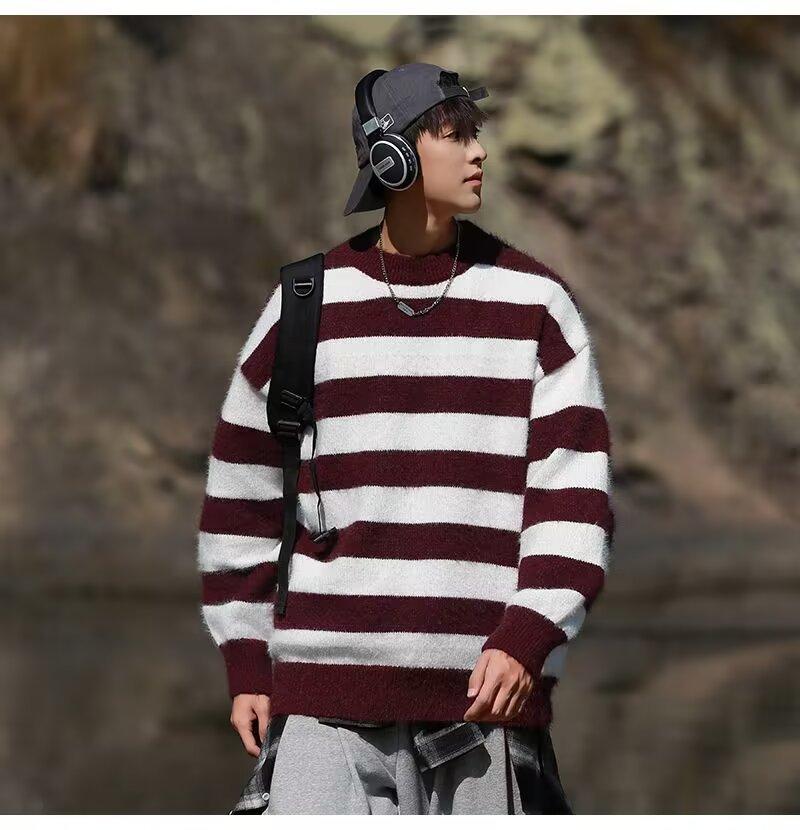 Suéter para hombre y mujer, otoño e invierno, a rayas, neutro, suelto, cómodo y cálido.