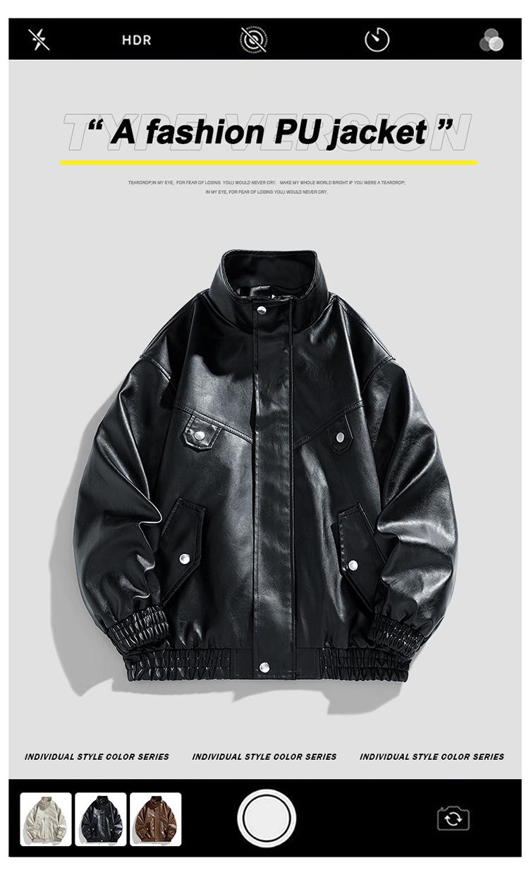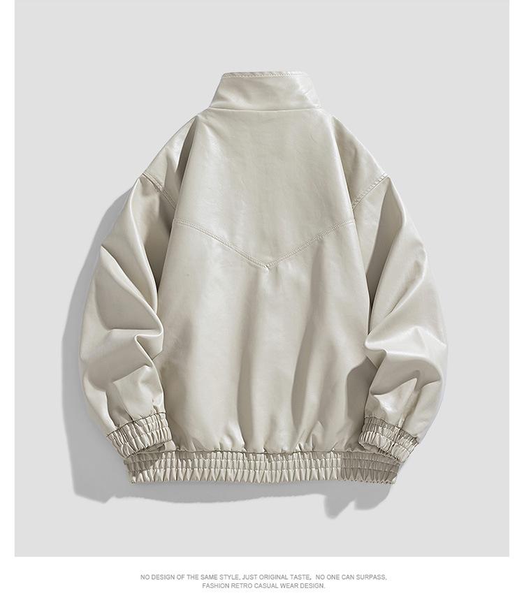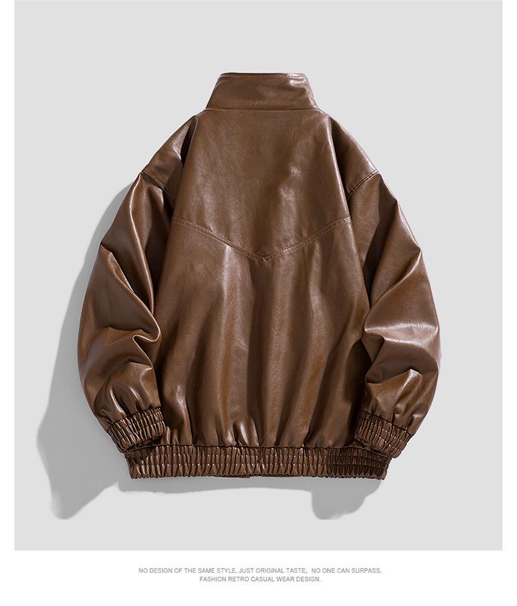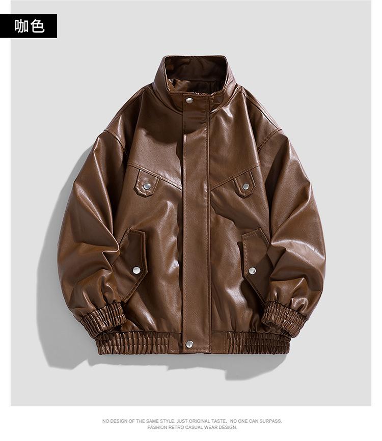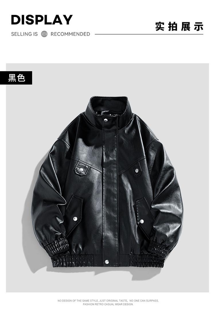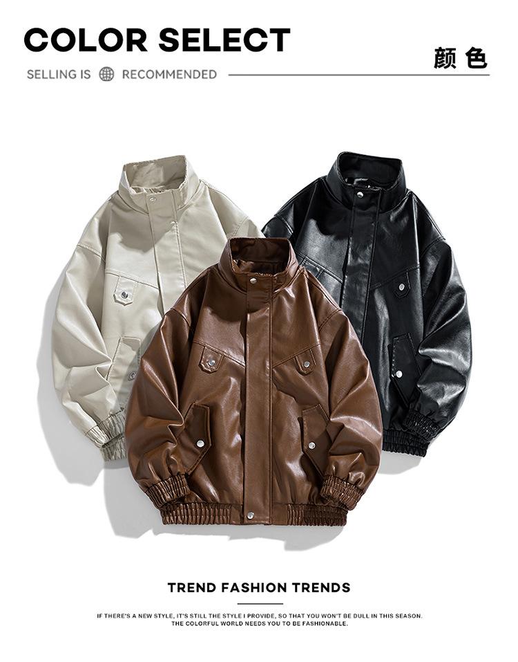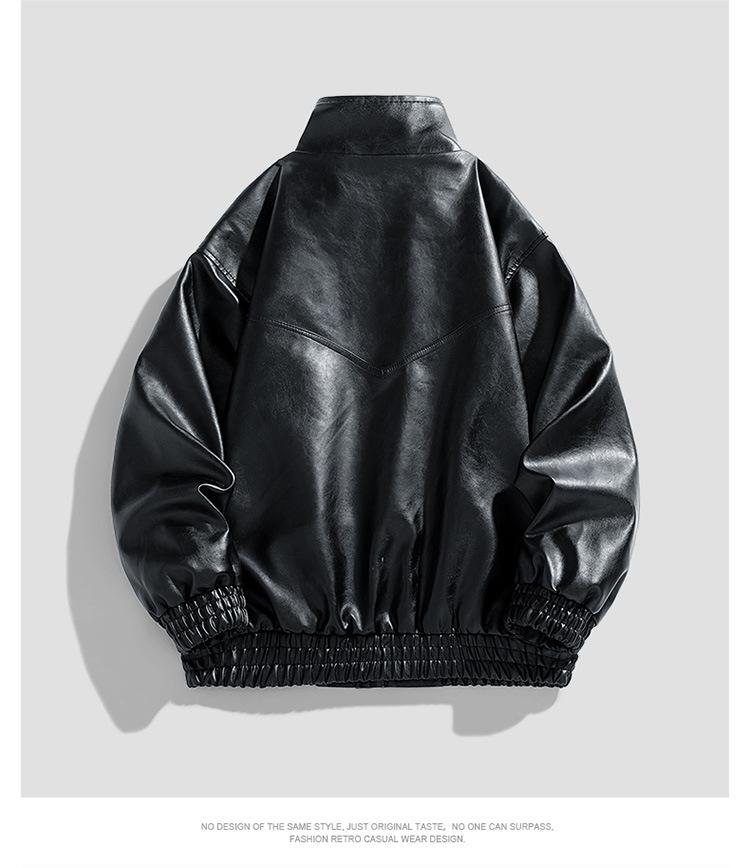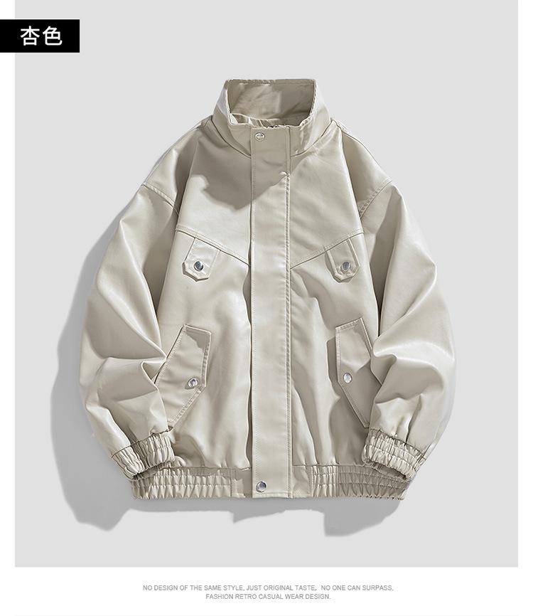 Chaqueta de cuero de motocicleta de marca de moda para hombre, primavera y otoño, nueva chaqueta de cuero de moda de color sólido suelta y combinable informal para hombre