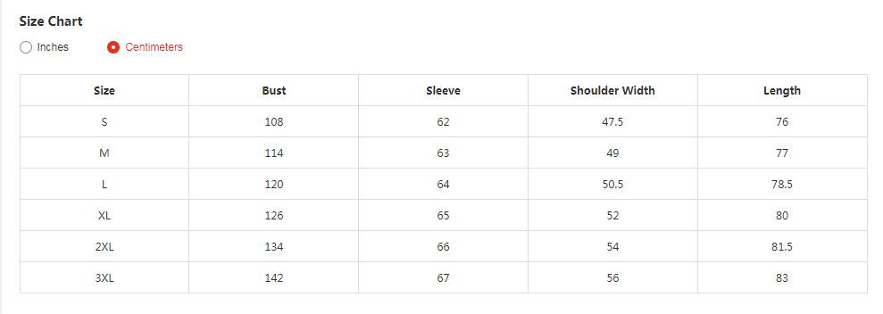 S, M, L, XL, 2XL, 3XL