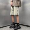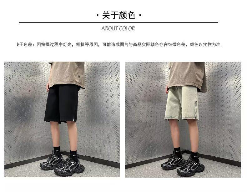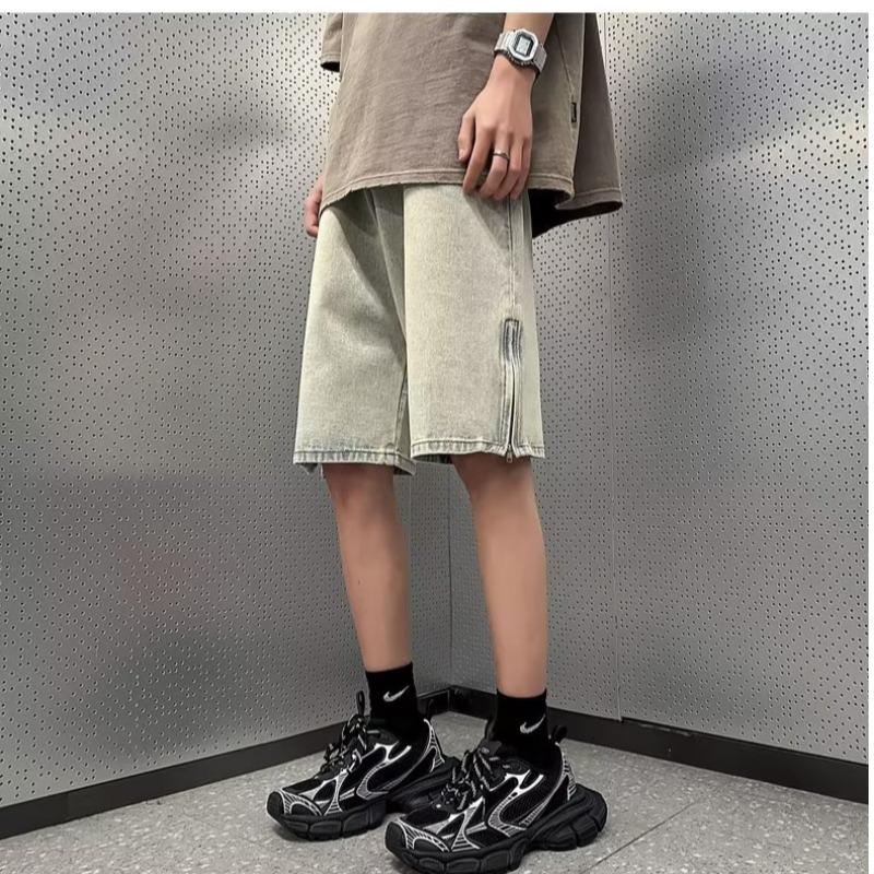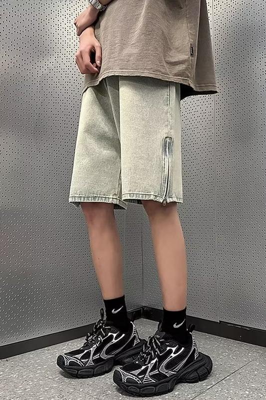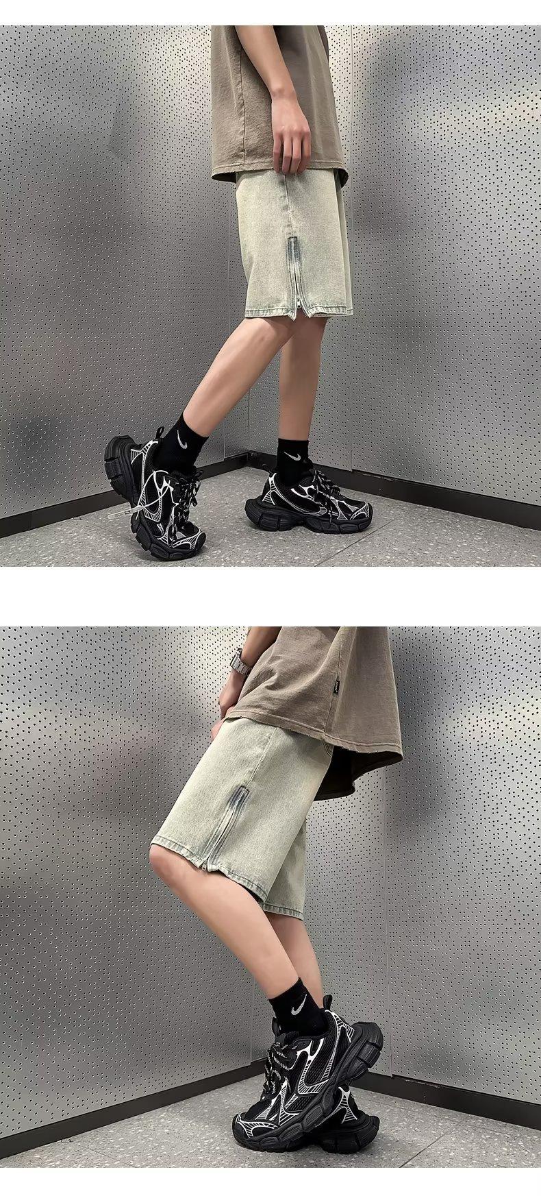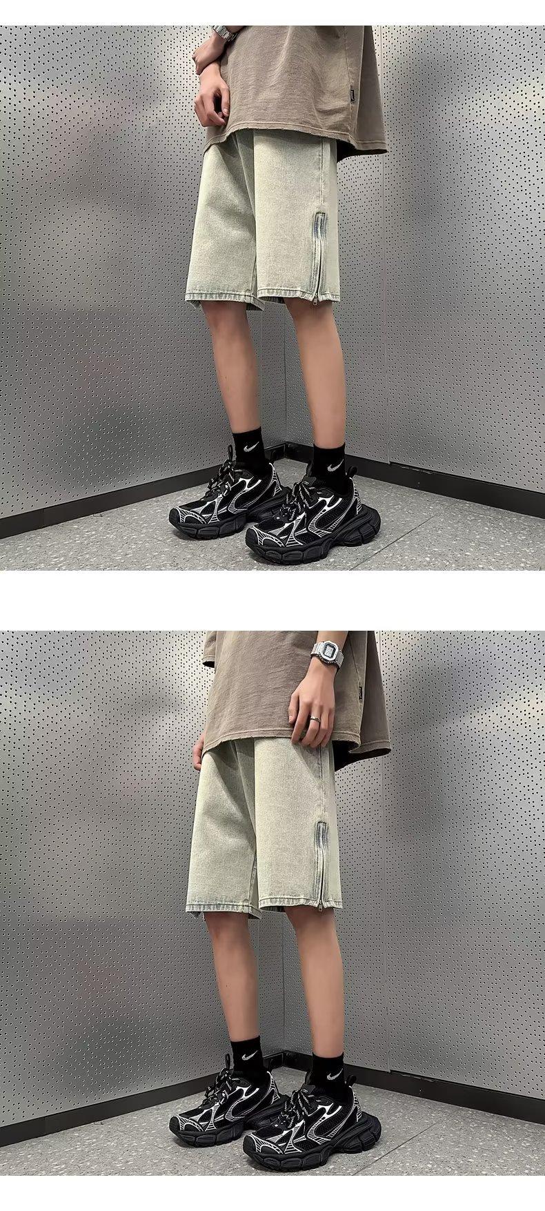 Shorts de mezclilla teñidos con barro amarillo para hombre, moda de estilo americano, cremallera, abertura, pantalones rectos, verano, sueltos, de pierna ancha
