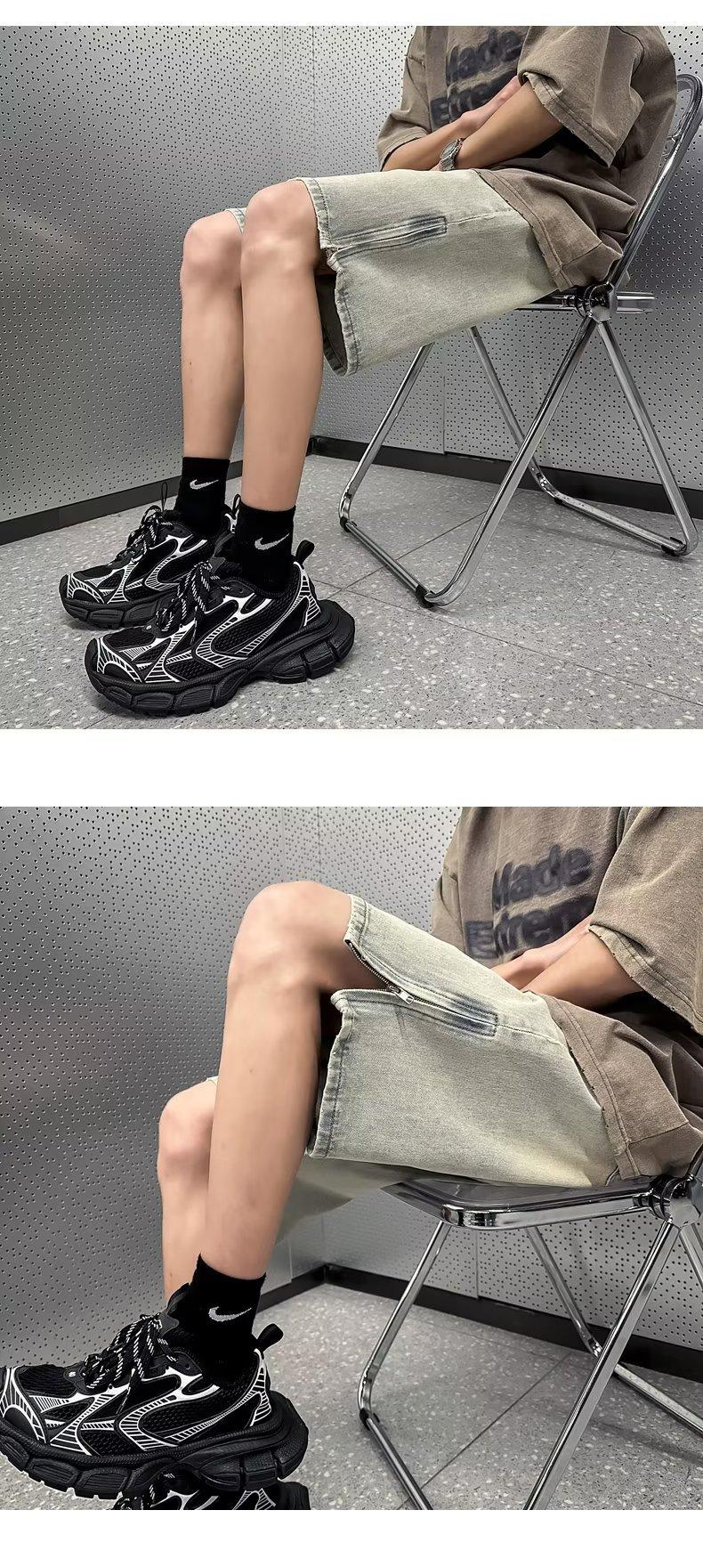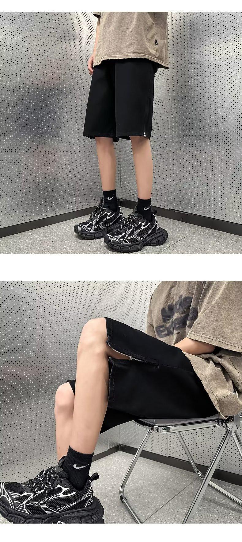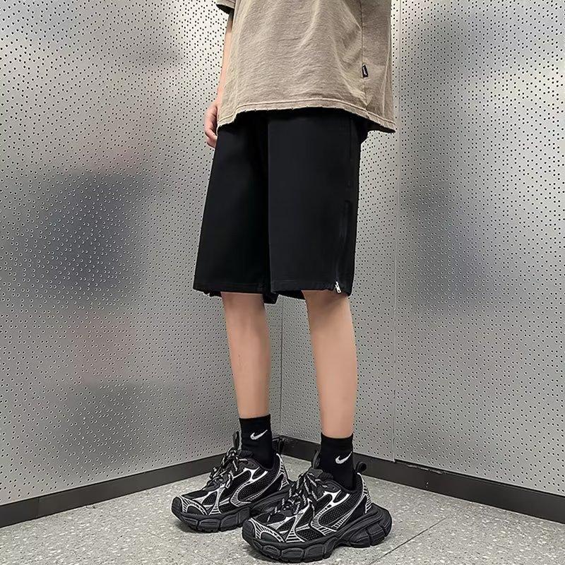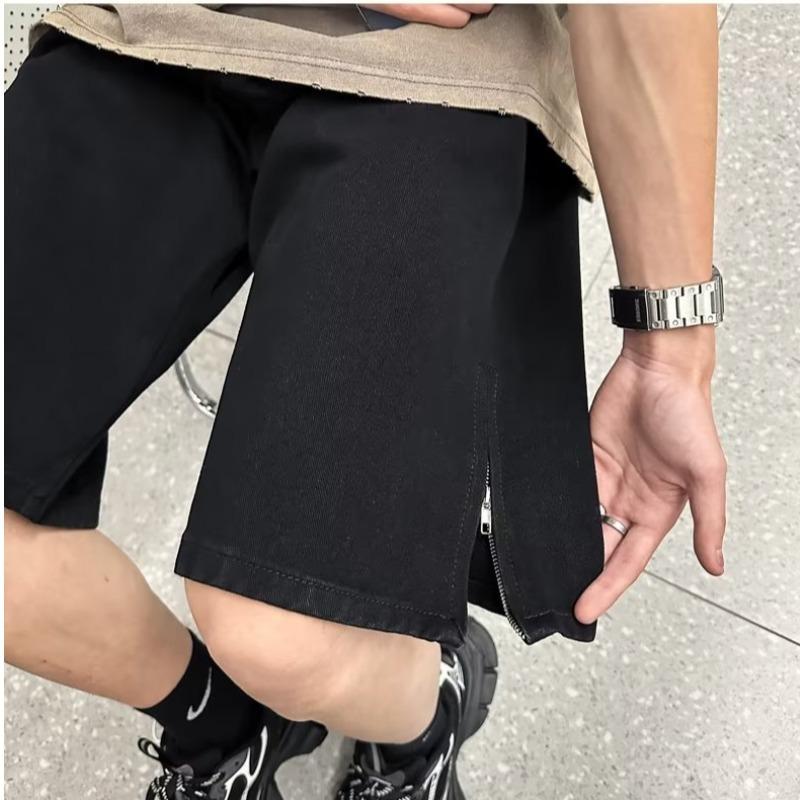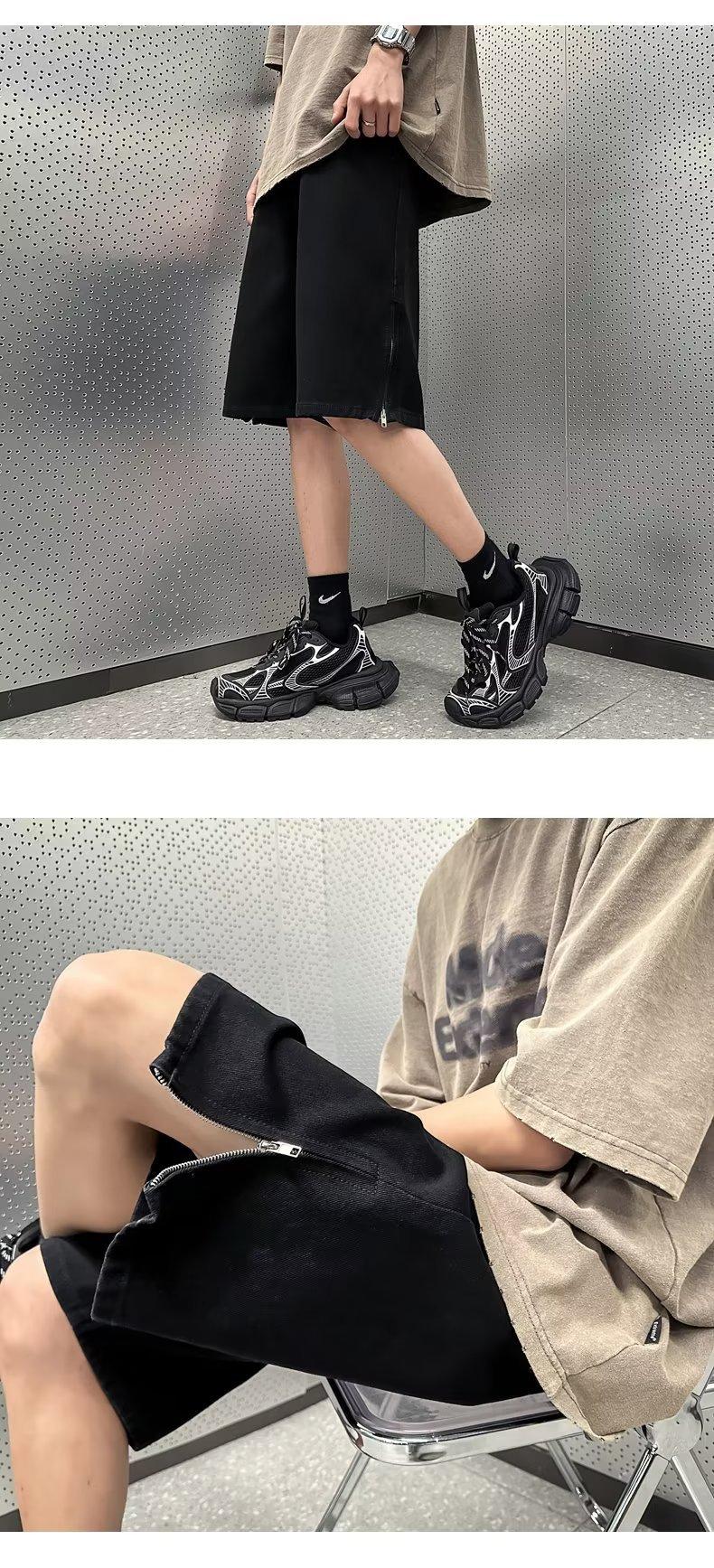 Shorts de mezclilla teñidos con barro amarillo para hombre, moda de estilo americano, cremallera, abertura, pantalones rectos, verano, sueltos, de pierna ancha