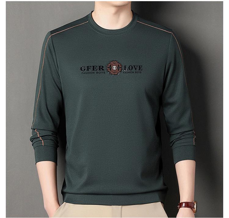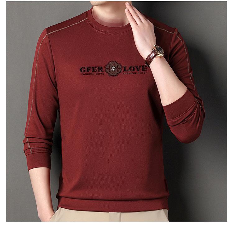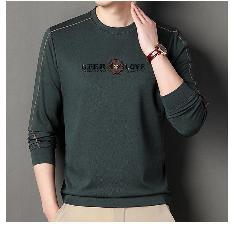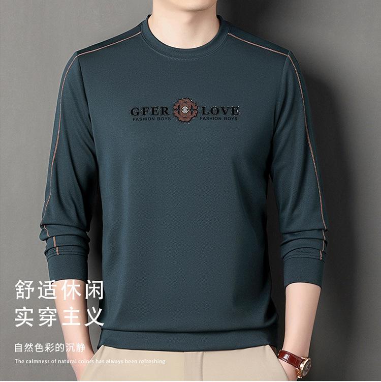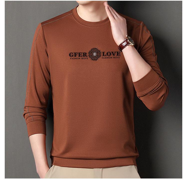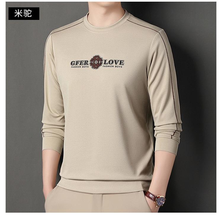 Camiseta de manga larga para hombre, primavera y otoño, nueva sudadera informal de moda con estampado para jóvenes y mediana edad, cuello redondo, moda para hombre