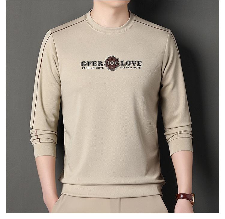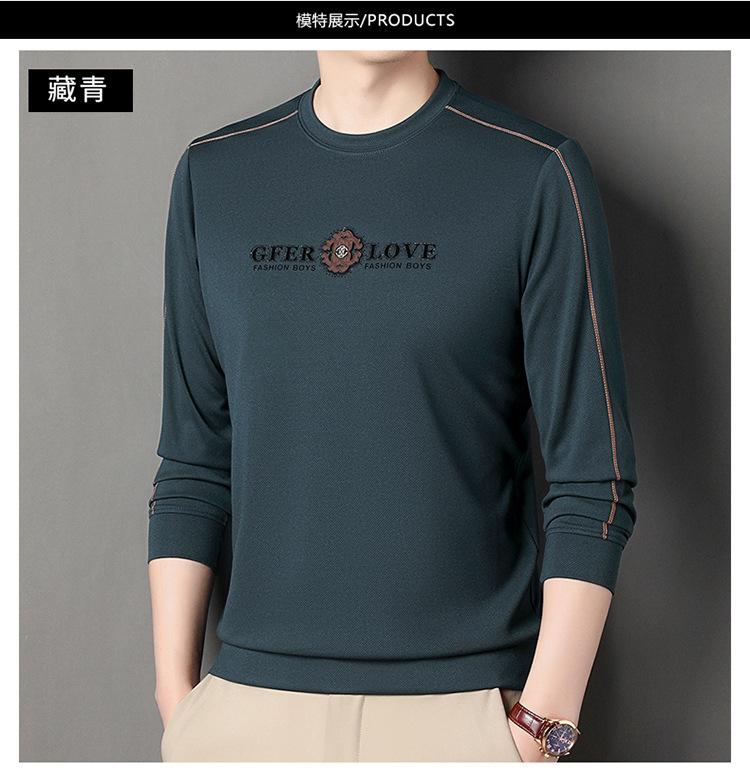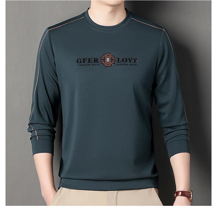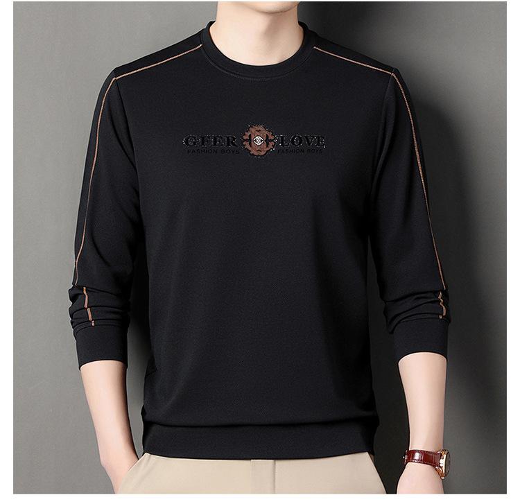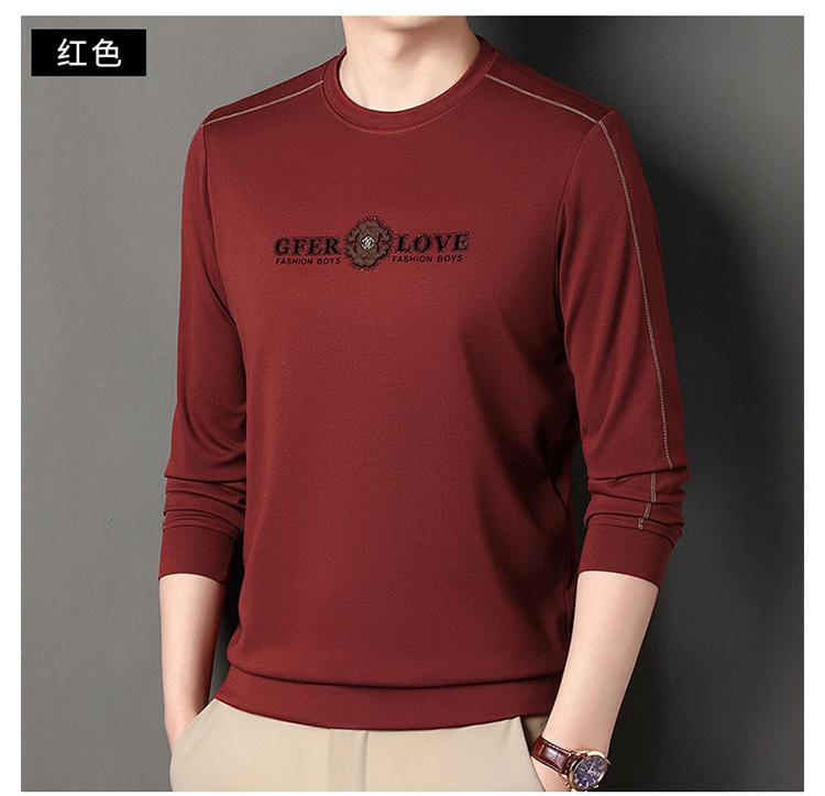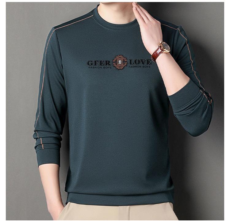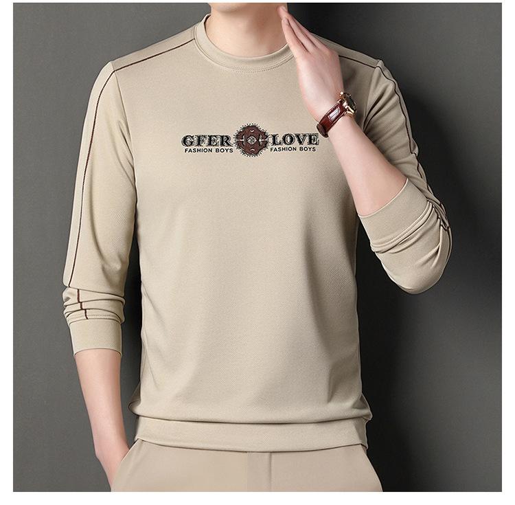 Camiseta de manga larga para hombre, primavera y otoño, nueva sudadera informal de moda con estampado para jóvenes y mediana edad, cuello redondo, moda para hombre