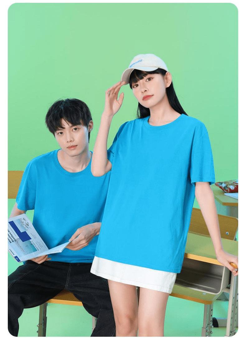 Nueva camiseta de manga corta con cuello redondo de algodón peinado de 210 g, con logotipo personalizado impreso, camiseta publicitaria cultural, ropa de trabajo grupal, impresión