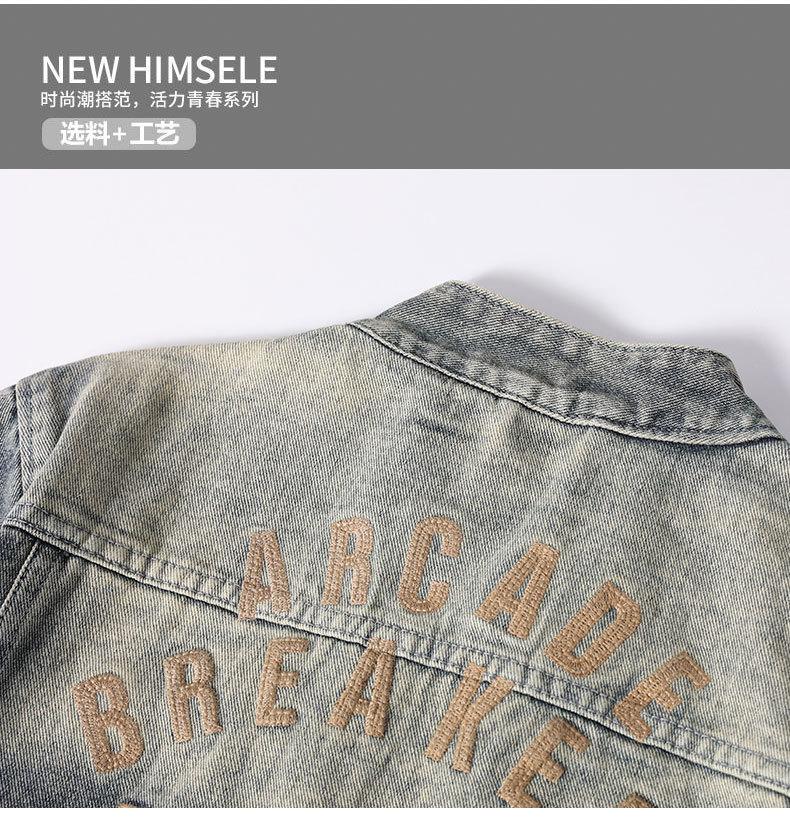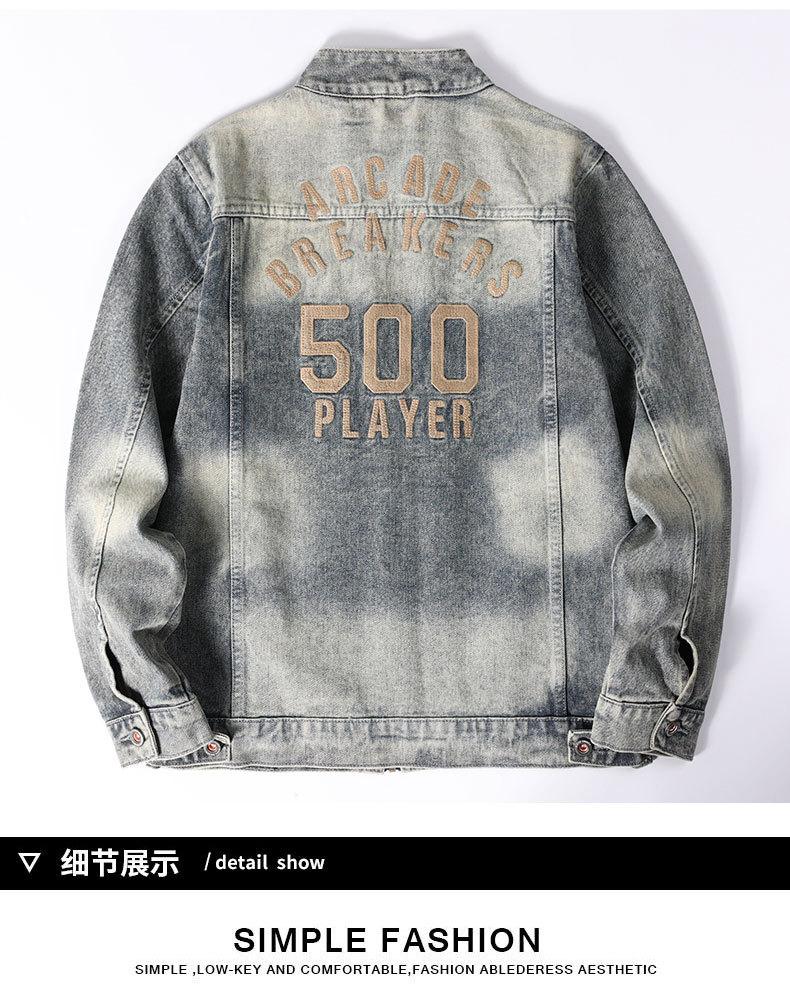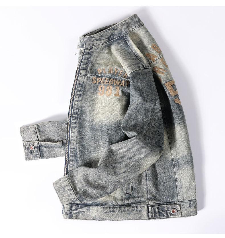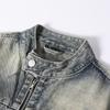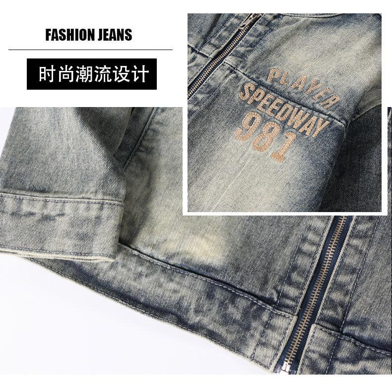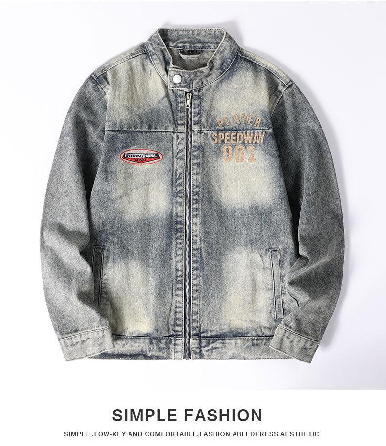 Chaqueta de Mezclilla para Hombre Marca de Moda Chaqueta de Ropa de Trabajo Lavada Nueva Primavera y Otoño Suelta Elegante Cuello Mao Ropa Casual
