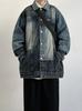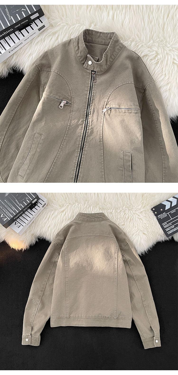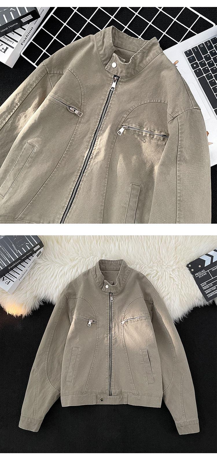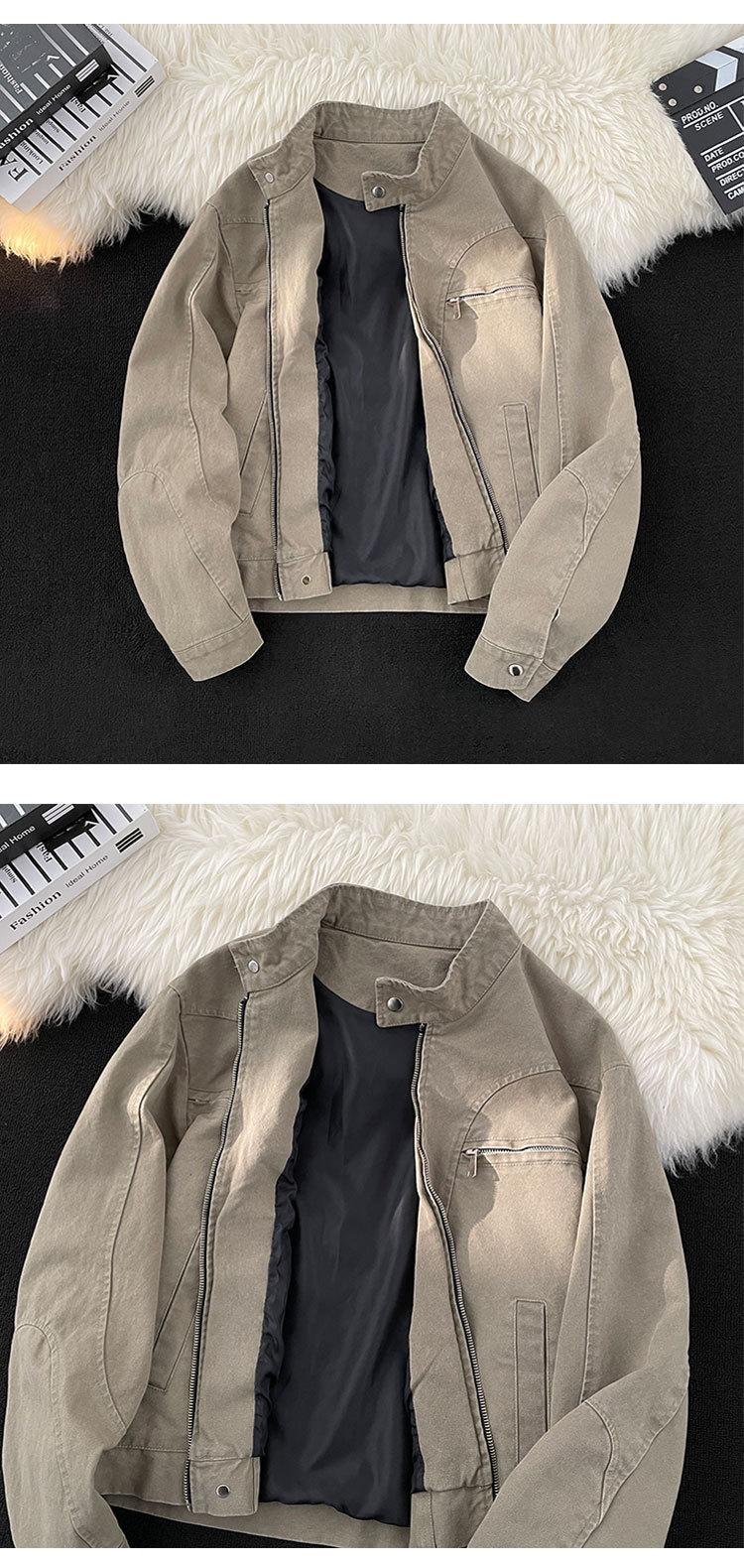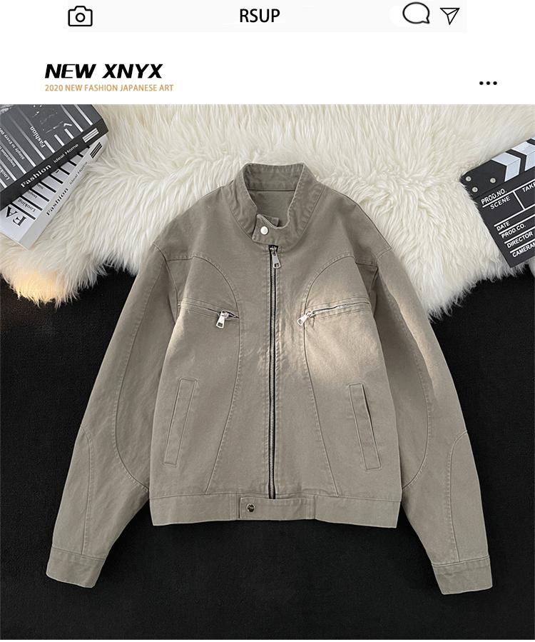 Chaqueta vaquera corta lavada estilo americano con cuello vertical para hombre y mujer, primavera y otoño, estilo retro vintage, estilo informal, estilo crock.