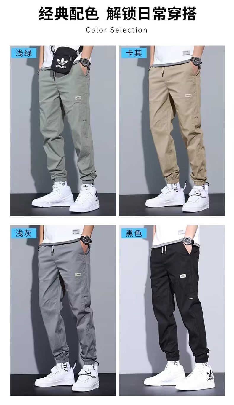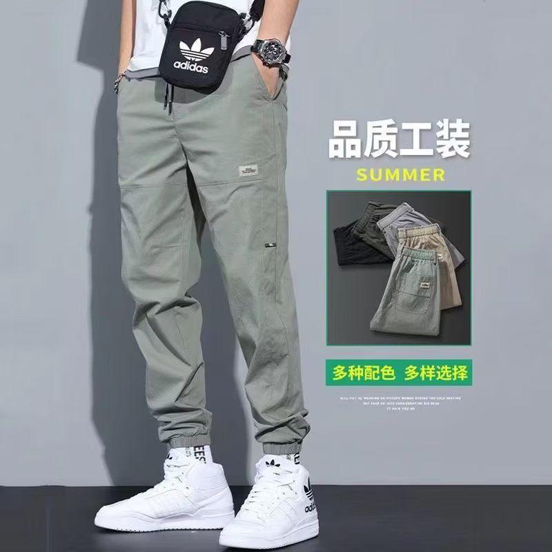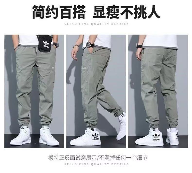Pantalones casuales para hombre, holgados, transpirables, con tobillos atados, monos de verano para hombre, pantalones finos de secado rápido, pantalones de moda de estilo coreano para hombre