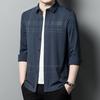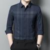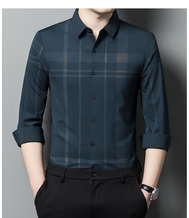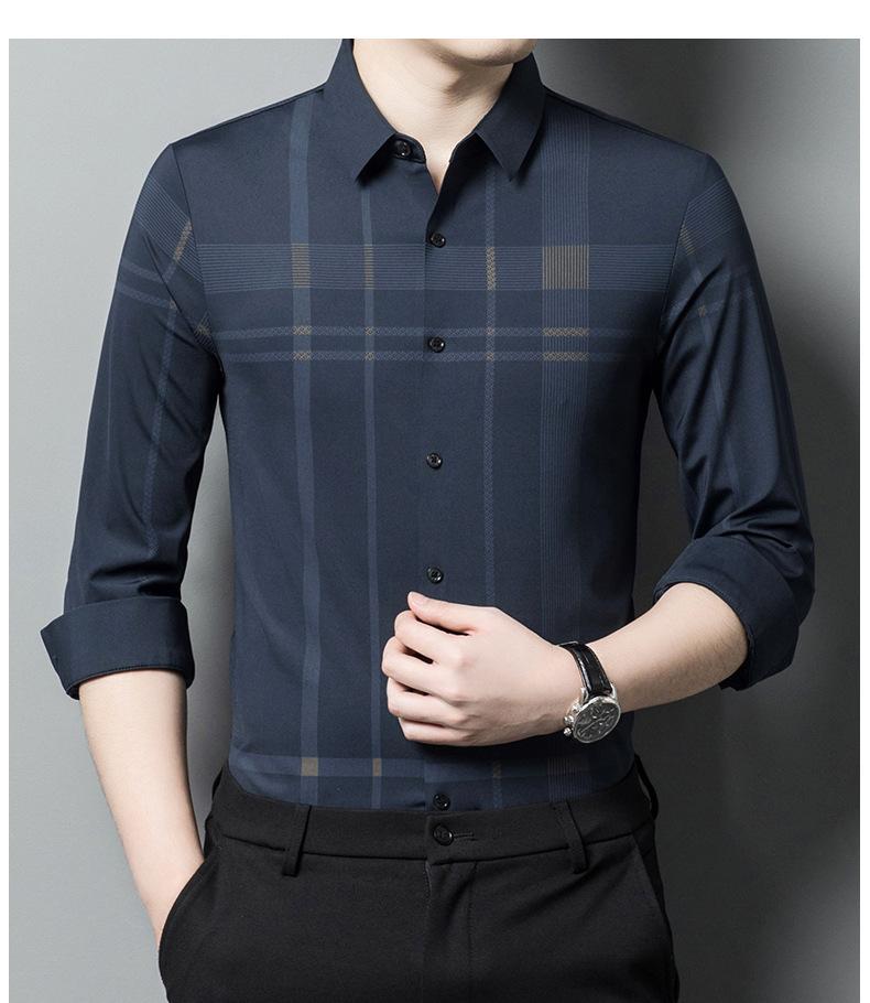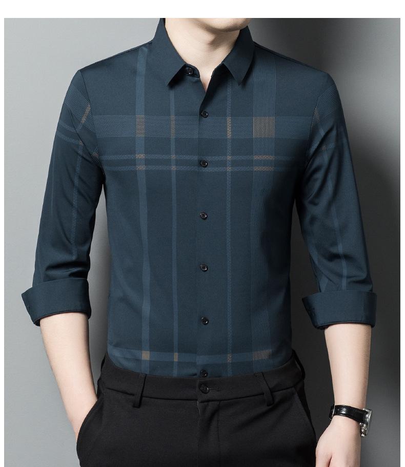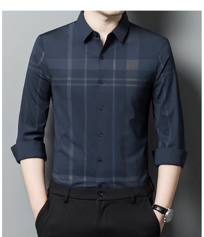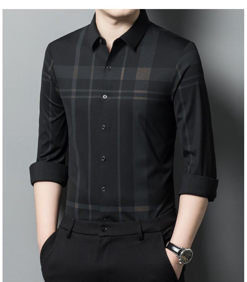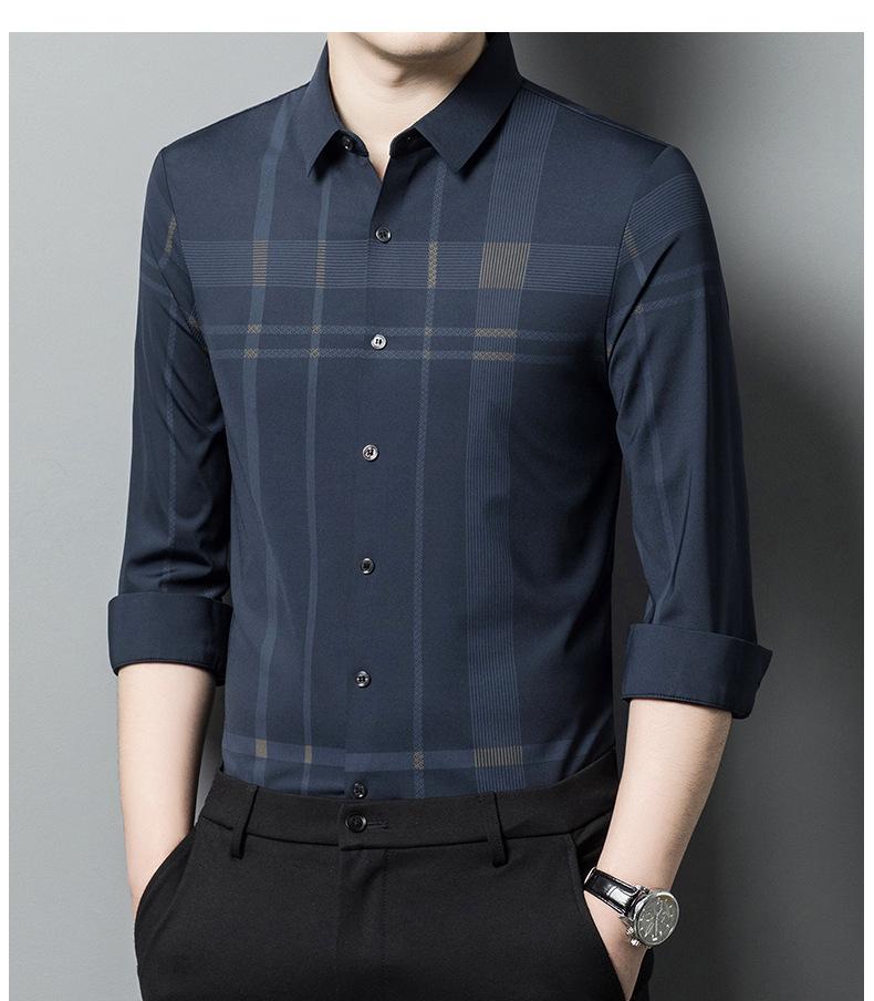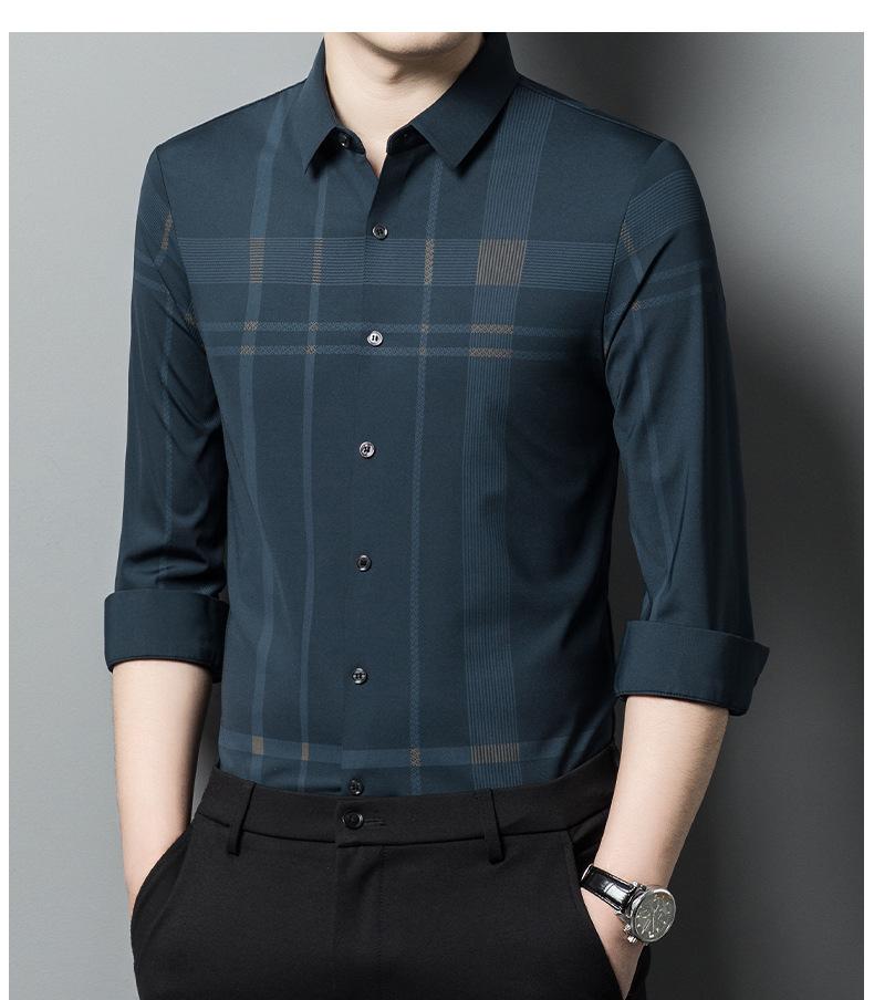 Camisa de primavera y otoño para hombre, nueva, de manga larga, sin costuras, con solapa de goma, fina, elástica, informal, de negocios, de color liso.