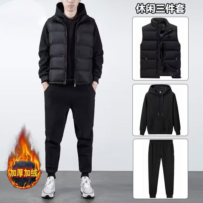 Suéter con capucha de tres piezas para hombre, otoño e invierno, forro polar grueso, traje deportivo informal, cárdigan, chaqueta de chaleco de dos piezas