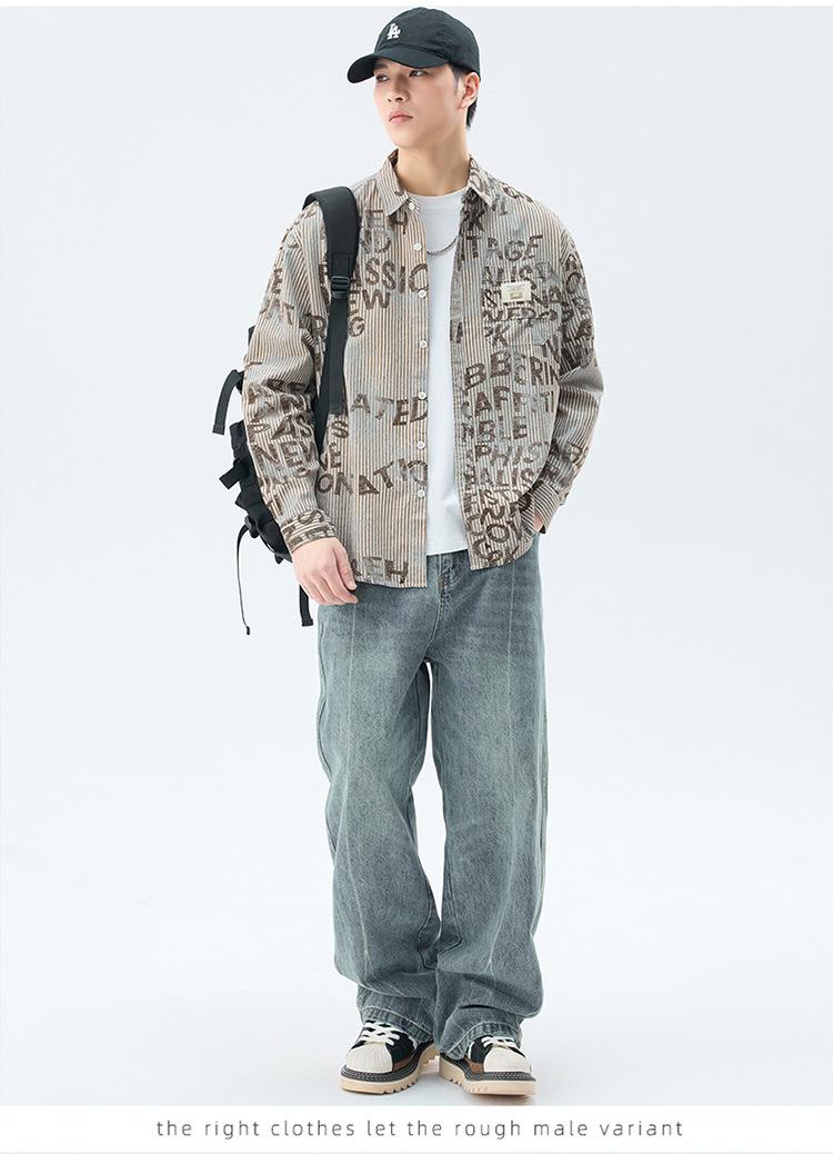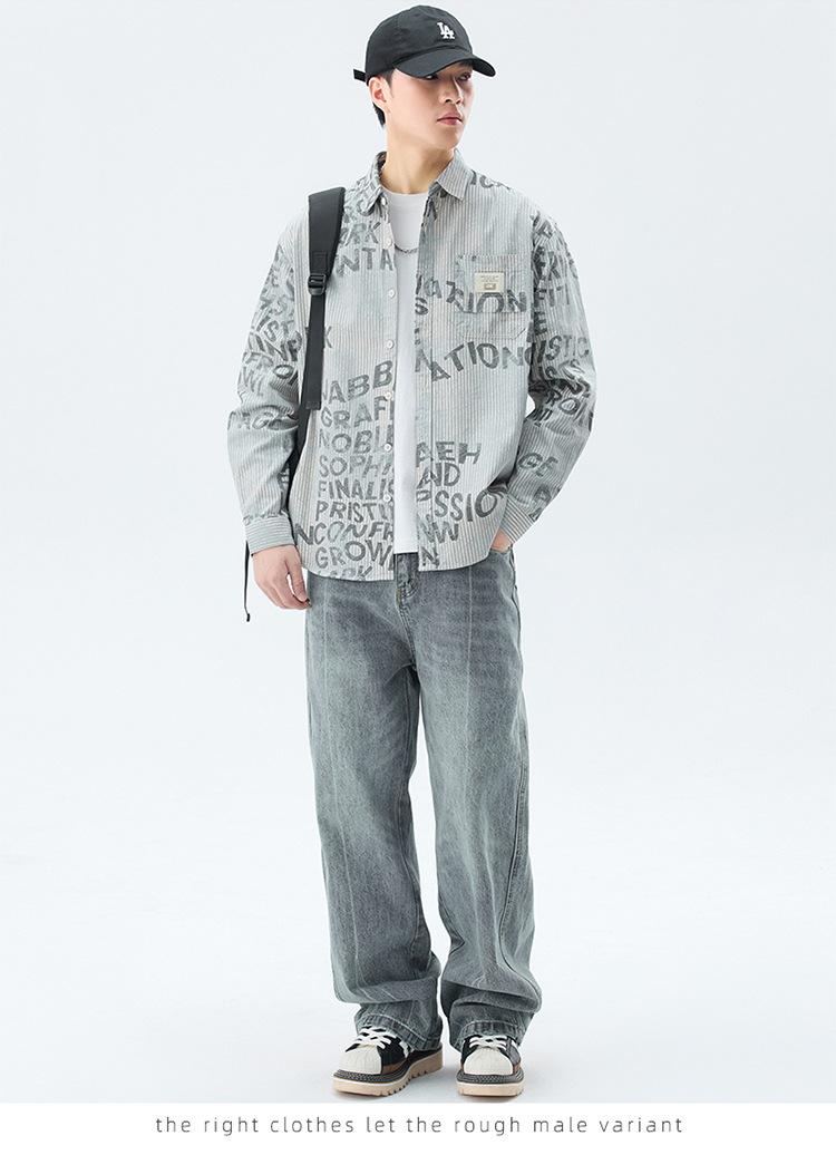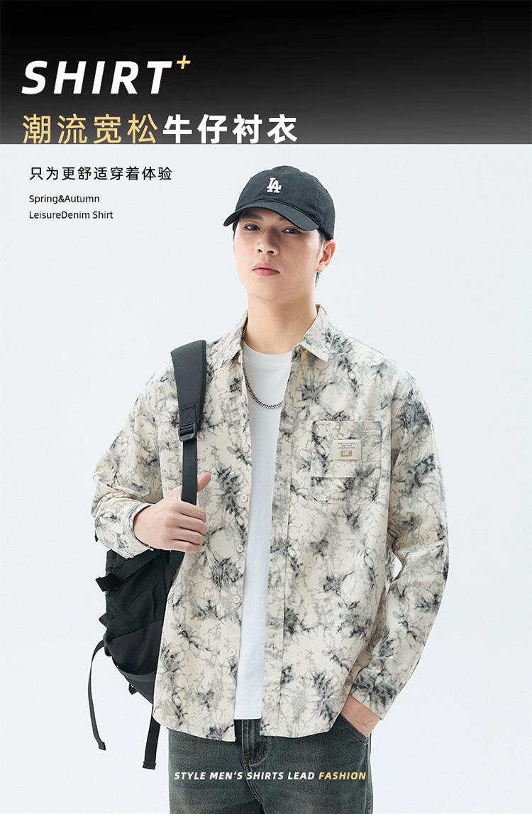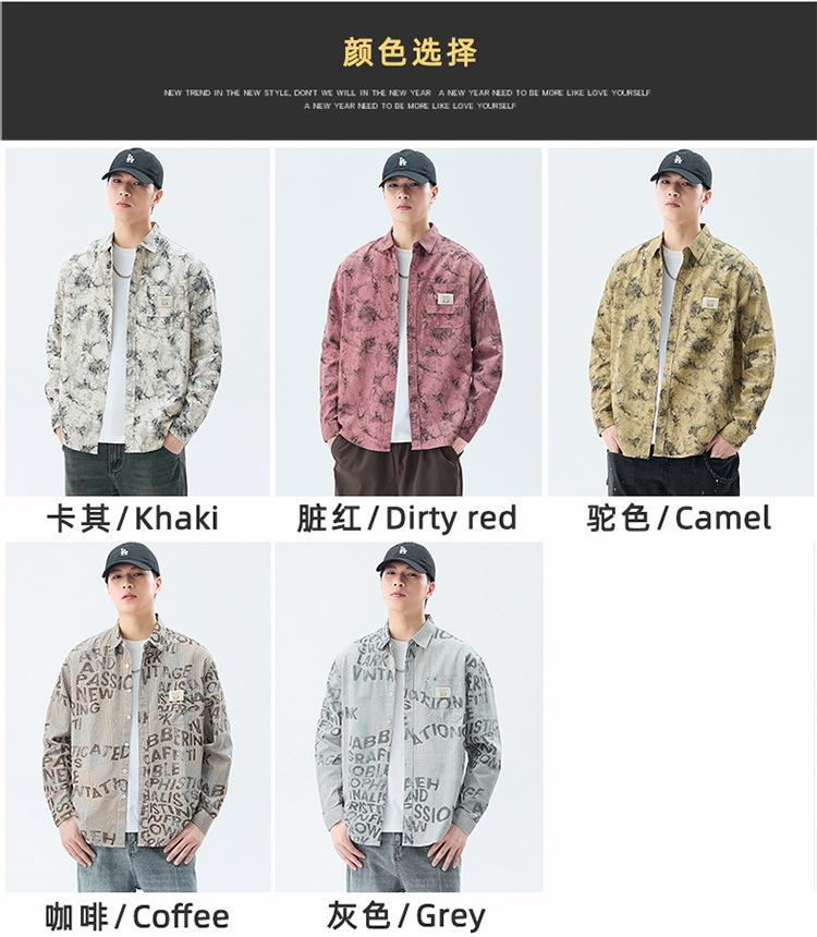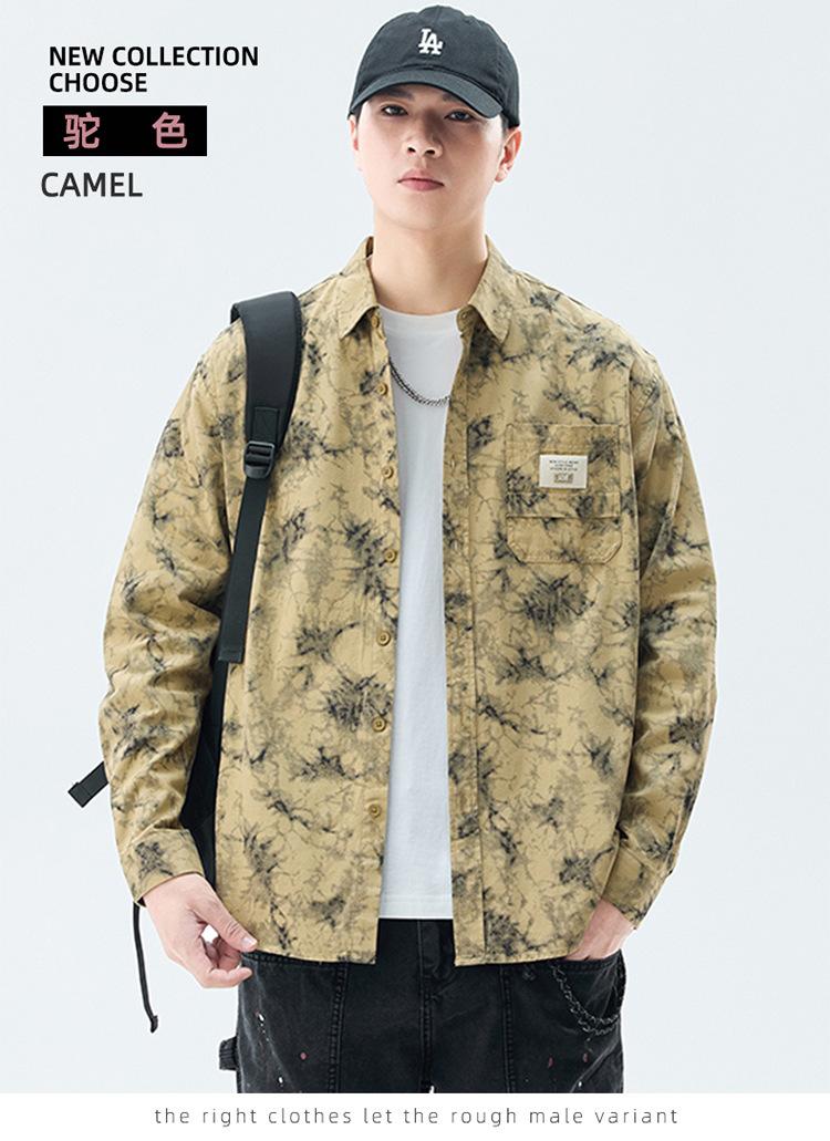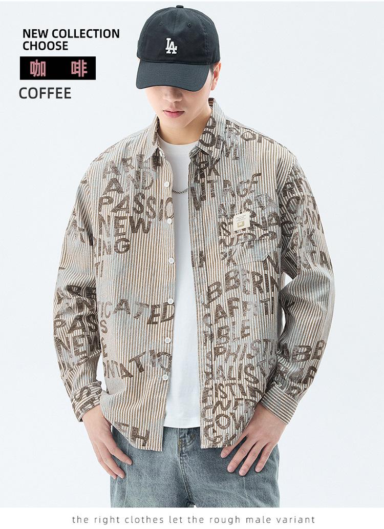Camisa de manga larga para hombre, informal, holgada, combinable, con estampado personalizado, de primavera 2025