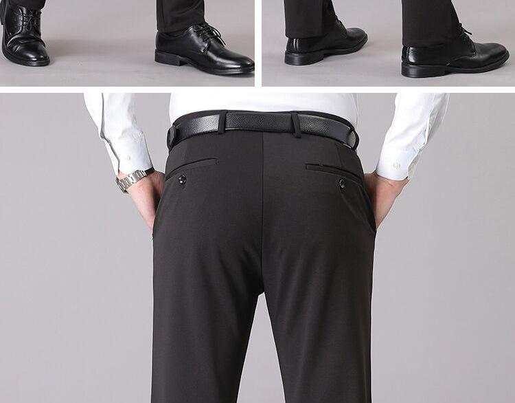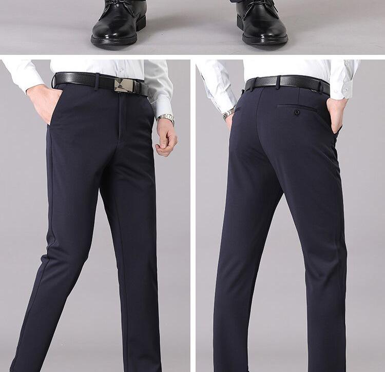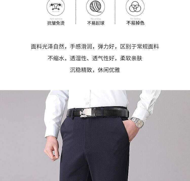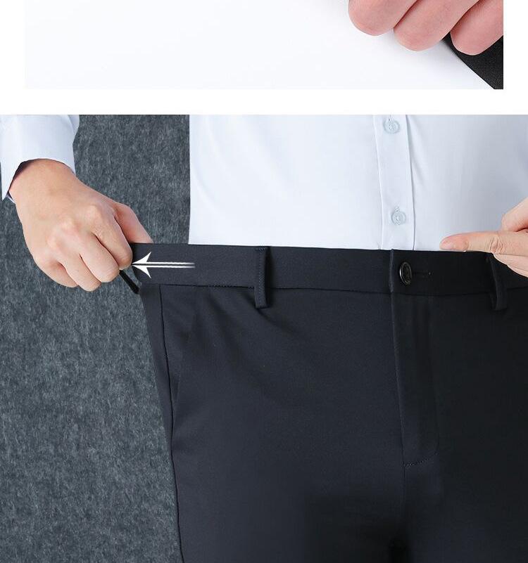 [Nuevo tejido elástico] Cómodo y transpirable, [diseñado con cintura elástica oculta], estilo moderno, ideal para el trabajo, el ocio en casa, para hombres atractivos y hombres de negocios. Nuestra fábrica se especializa en la confección de pantalones, desde el corte, la costura, el planchado, el empaquetado y otros pedidos de gran volumen.