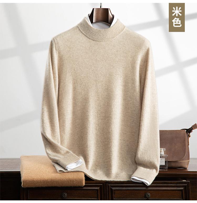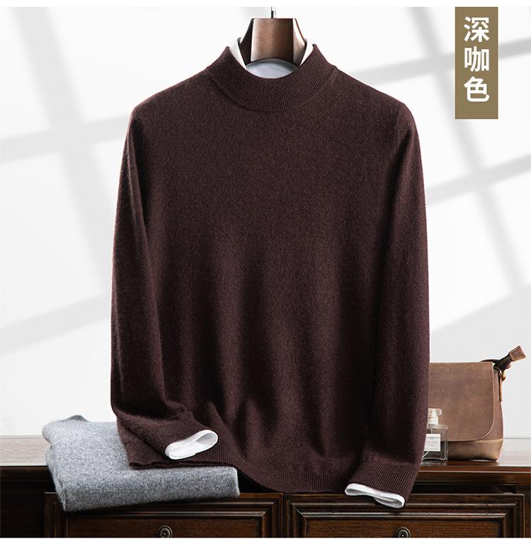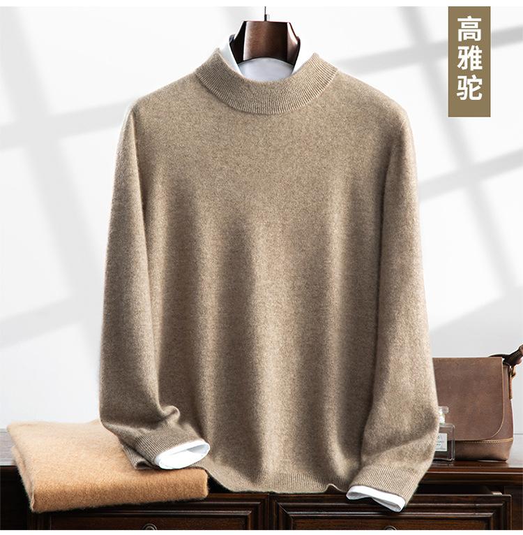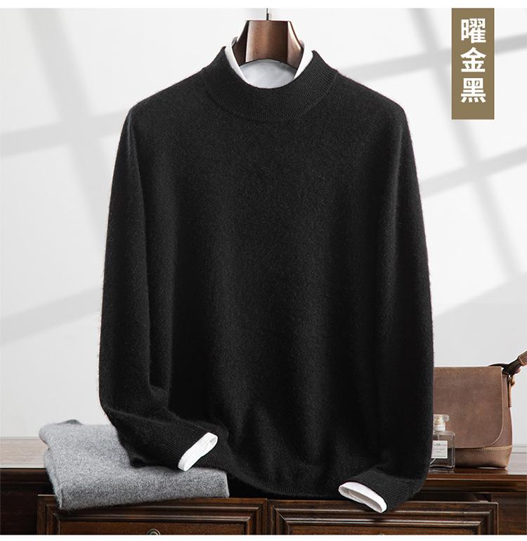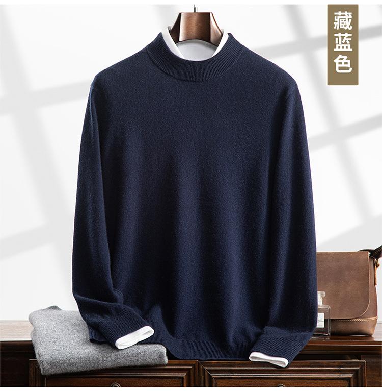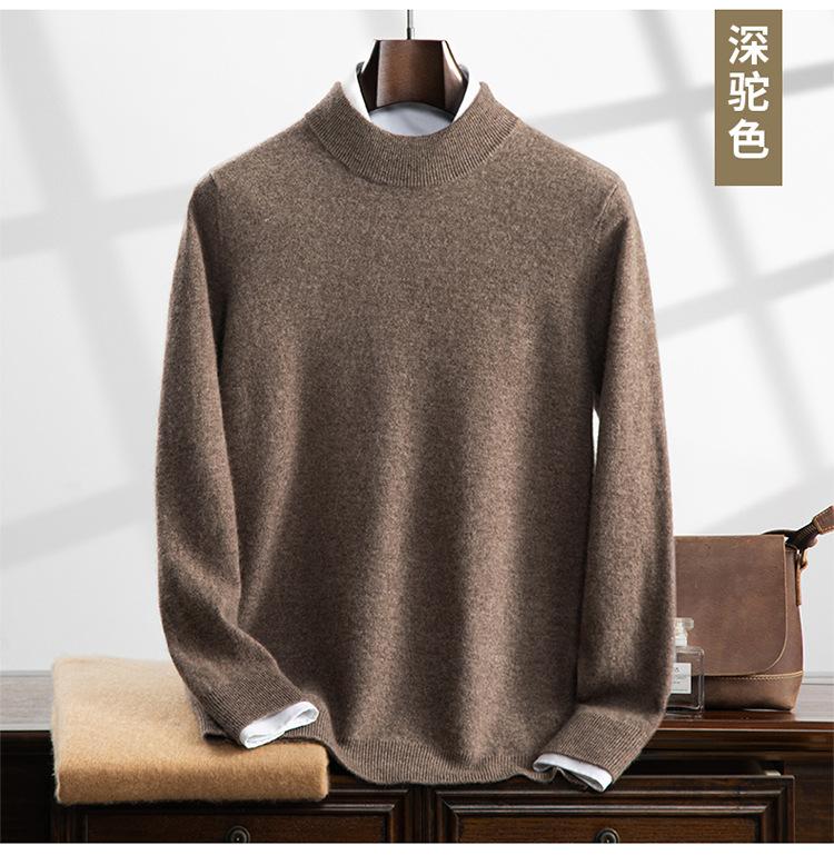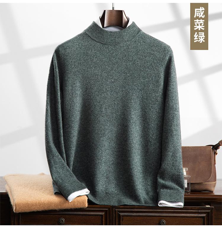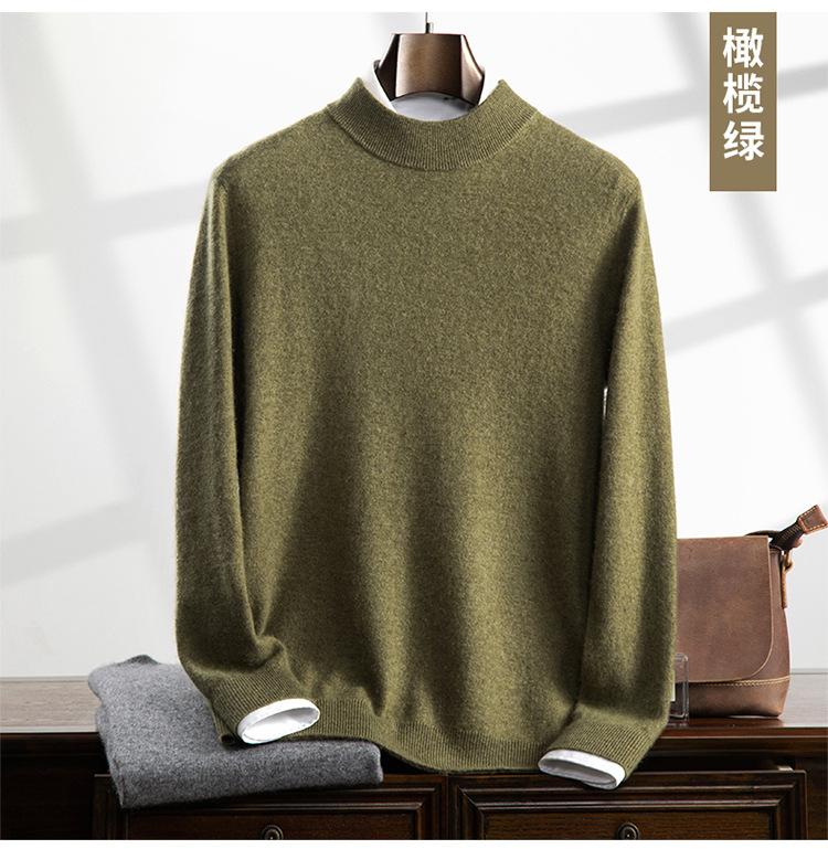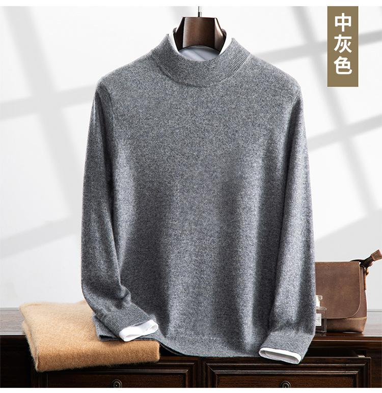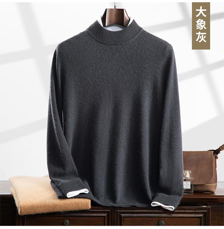 Suéter de cachemira nuevo de otoño e invierno para hombre, cuello medio alto, color sólido, informal, de negocios, de punto, suelto, de talla grande, base superior
