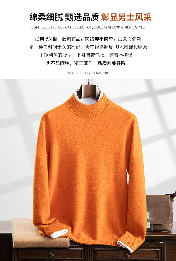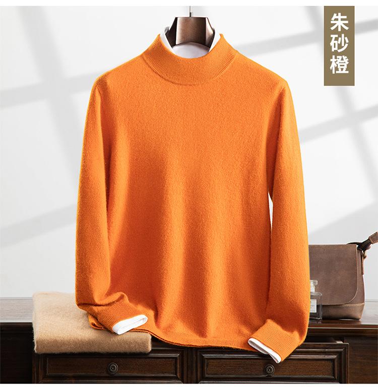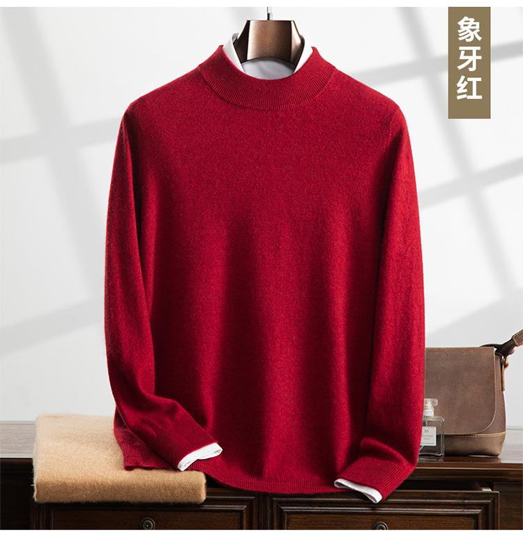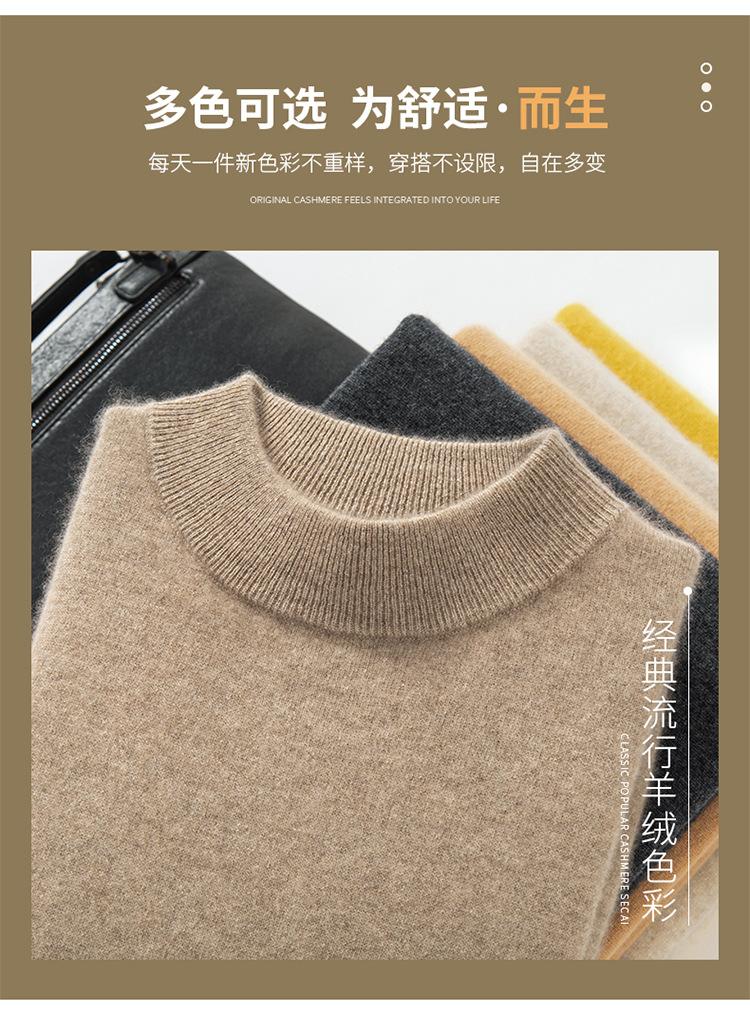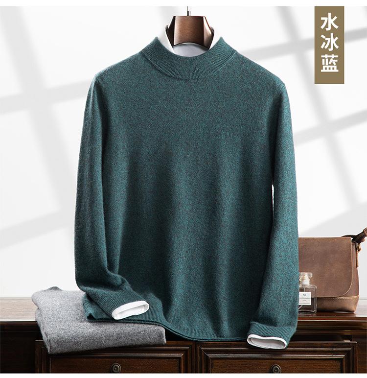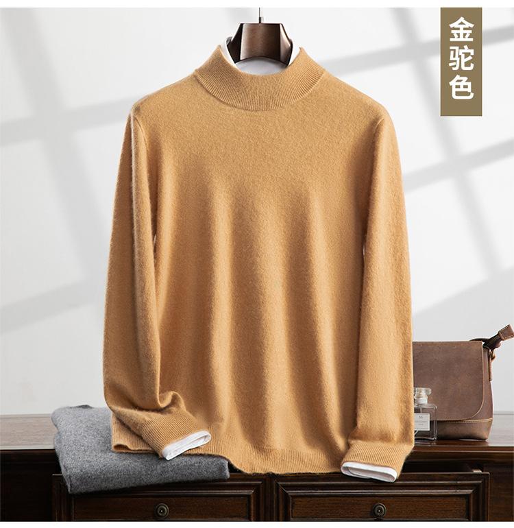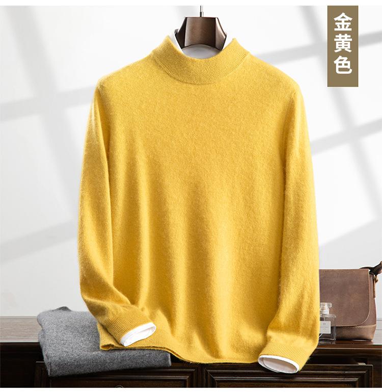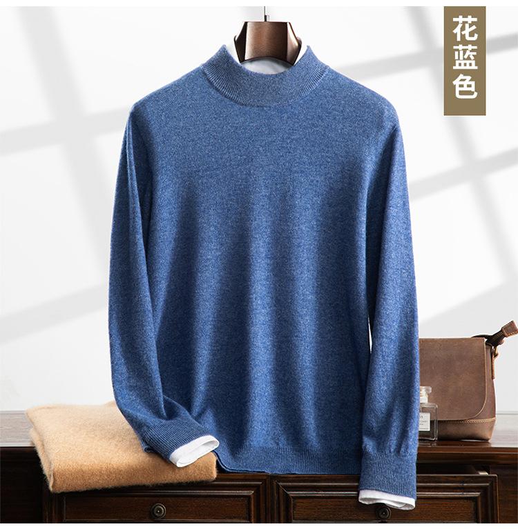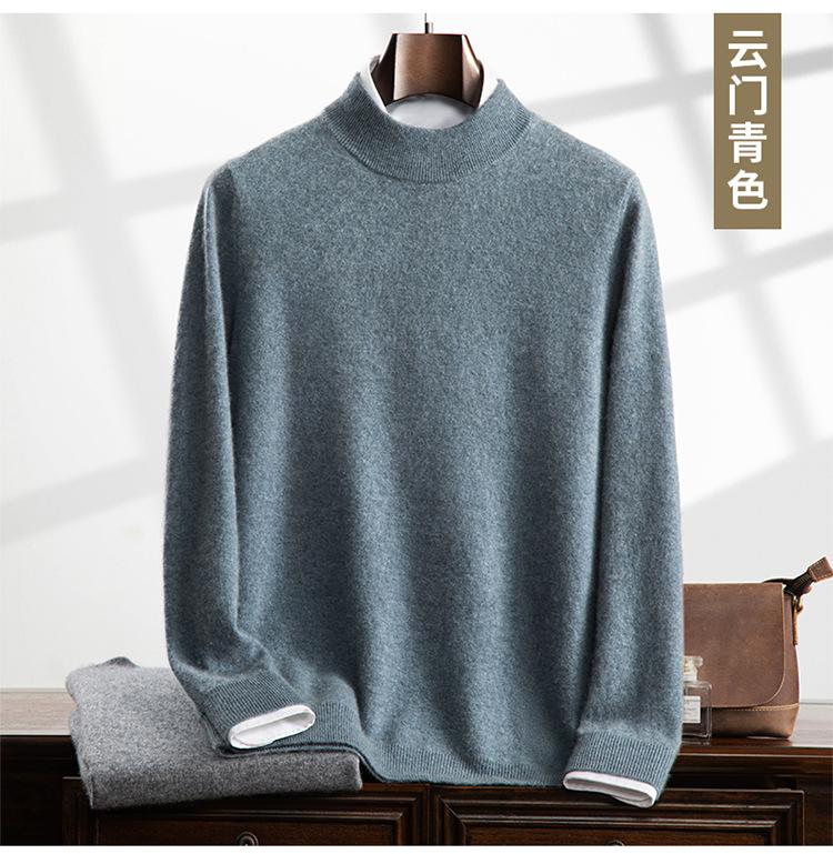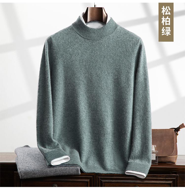 Suéter de cachemira nuevo de otoño e invierno para hombre, cuello medio alto, color sólido, informal, de negocios, de punto, suelto, de talla grande, base superior