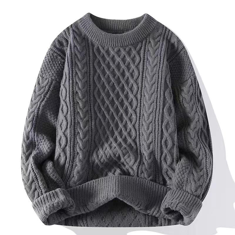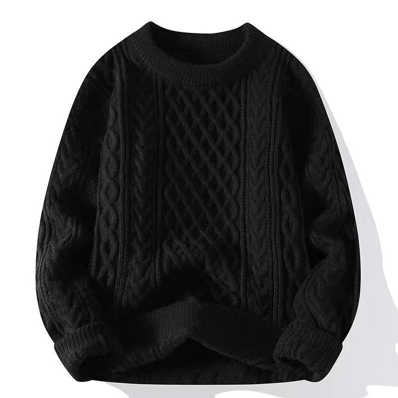 Suéter para Hombre Otoño e Invierno Suéter Trenzado Casual Combinable Maduro Ligero Color Sólido Suéter para Hombre Cuello Redondo Pulóver Top
