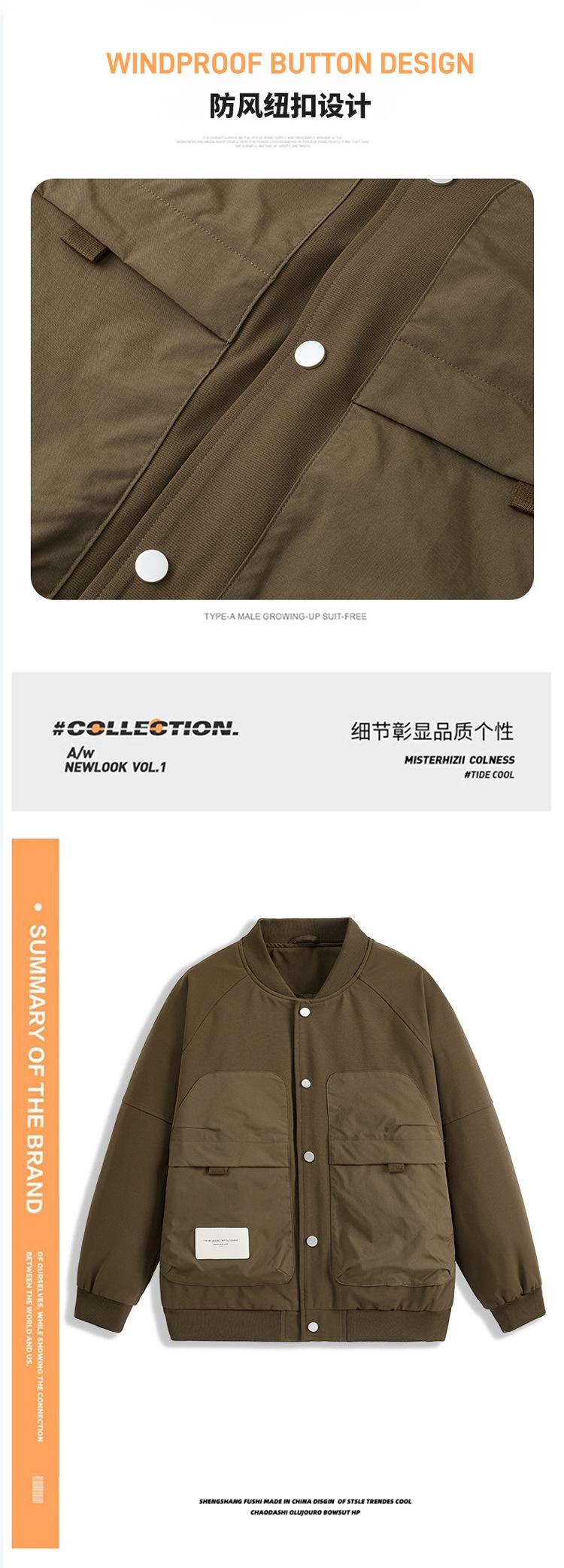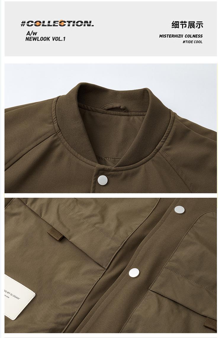 Chaqueta nueva de béisbol para hombre, chaqueta de primavera y otoño, chaqueta informal de moda para hombre, bolsillo estéreo, mangas decorativas para el cuello, a prueba de agua.