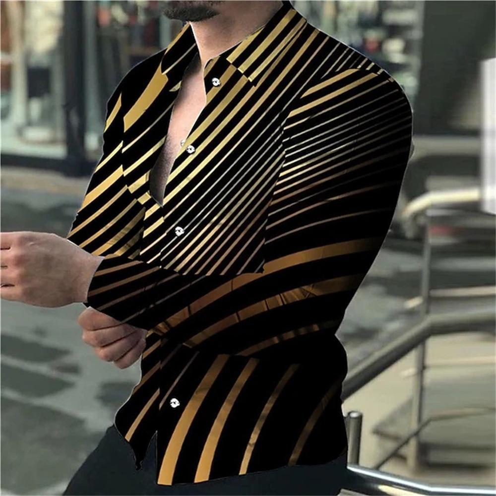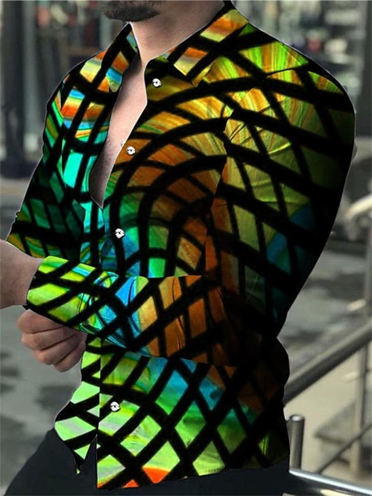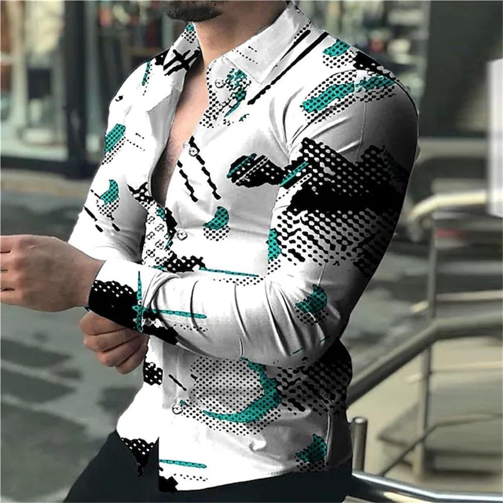 Nueva Calle de Comercio Transfronterizo Camiseta Casual de Impresión 3D Moderna de Corte Slim para Jóvenes Europeos y Americanos de Manga Larga para Hombre con Estampado Irregular