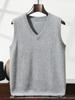 Chaleco de cachemira de 7 pines para hombre, cuello en V, tejido holgado, para otoño e invierno, informal, de negocios, para papá de mediana edad, cálido.