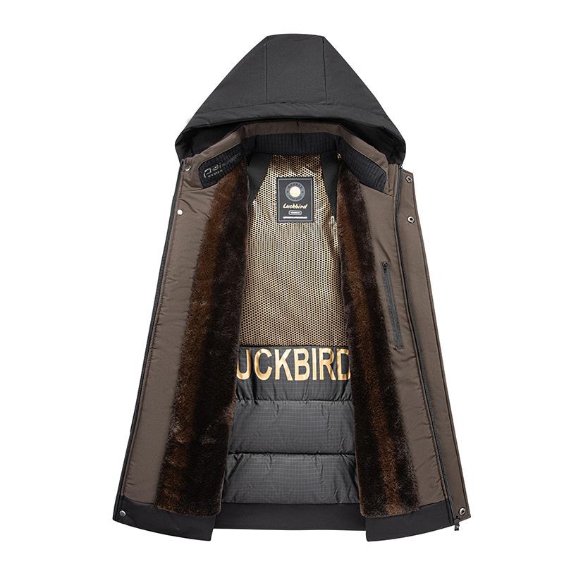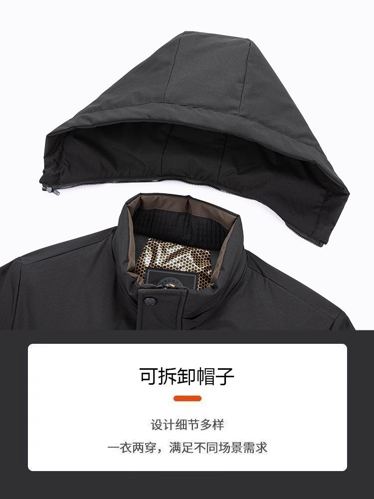 Abrigo de invierno acolchado de algodón de talla grande con capucha desmontable y forro polar cálido para hombre de mediana edad y mayor para padre