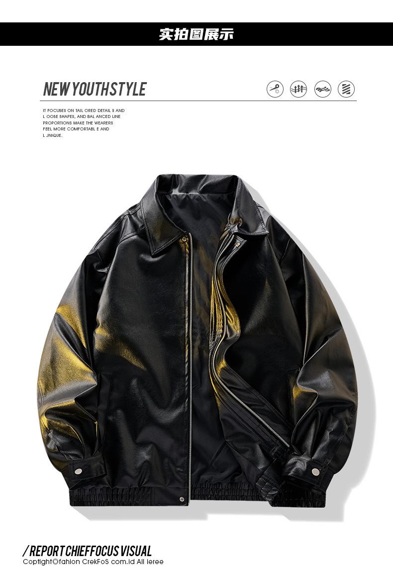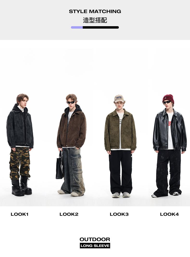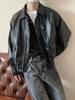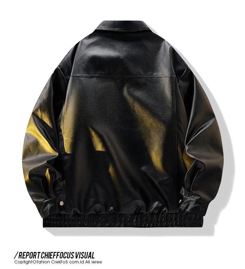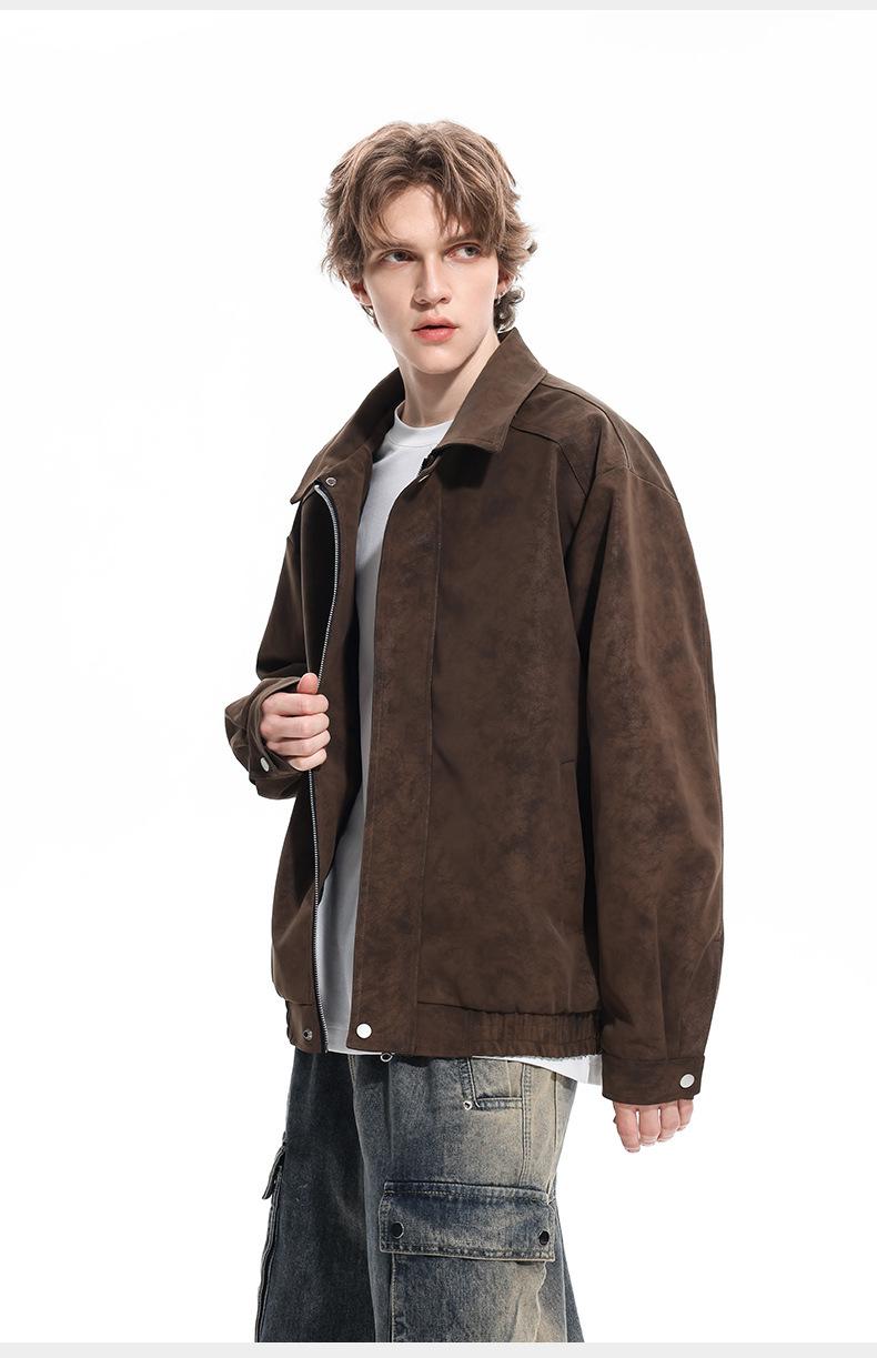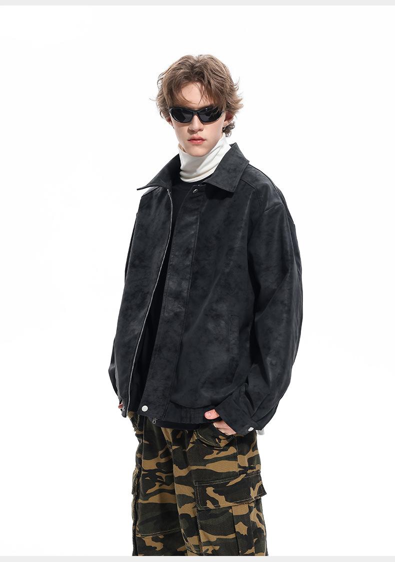 Chaqueta de Cuero Vintage Desgastada para Hombre 2025 Primavera y Otoño Nuevo Estilo Americano Solapa Abrigo de Cuero Suelto Elegante Casual Chaqueta para Parejas