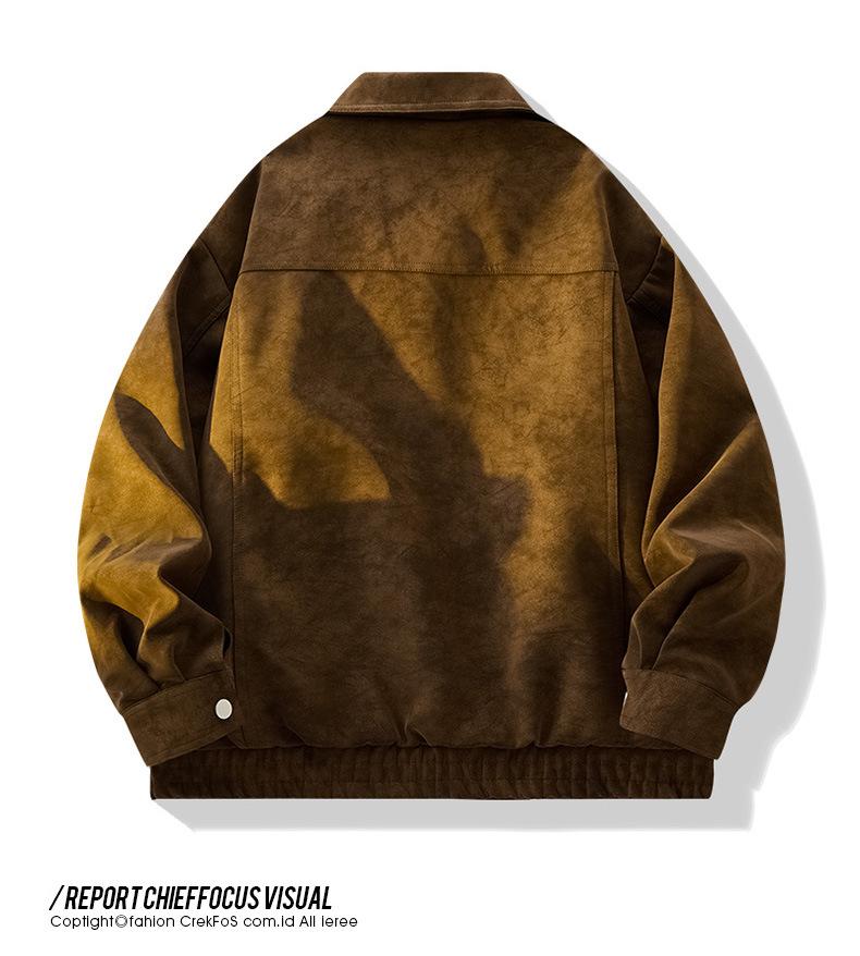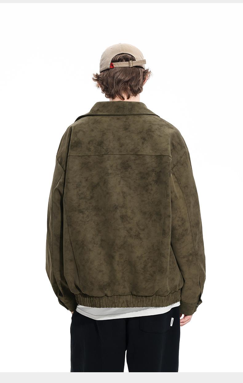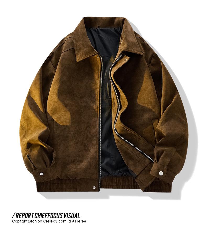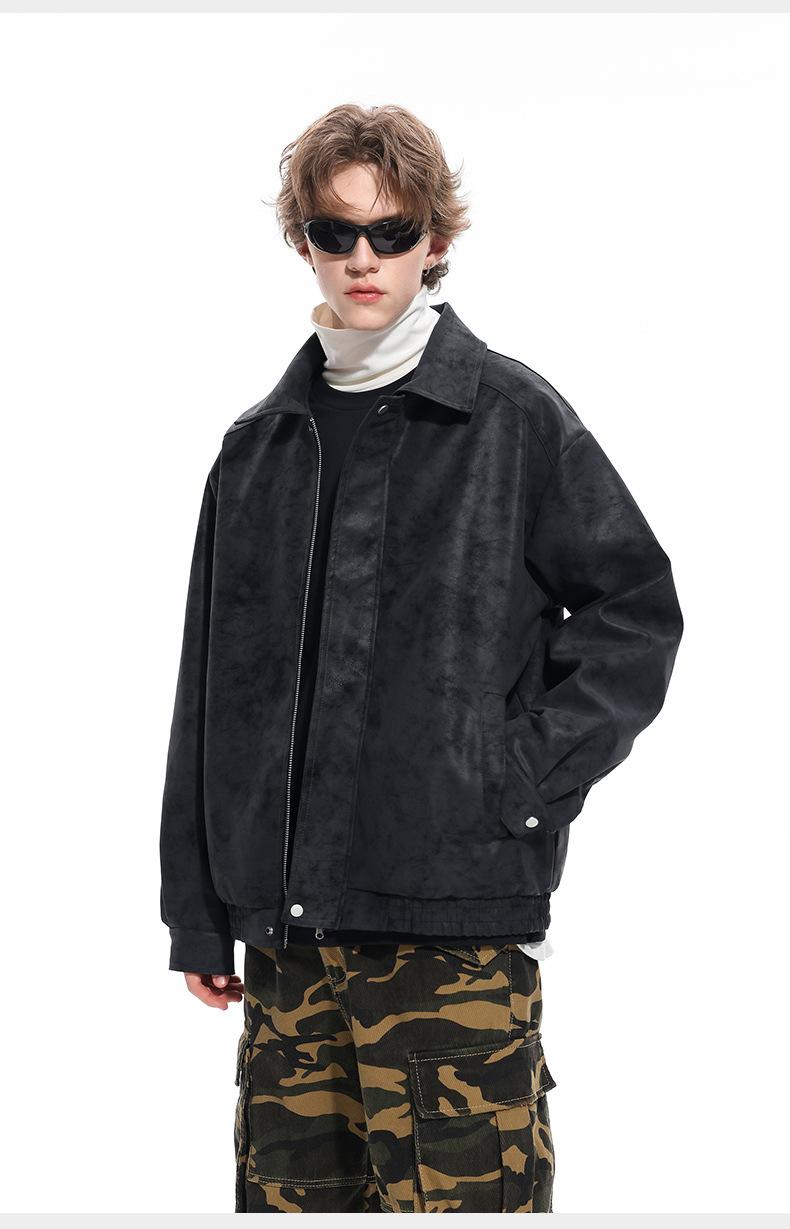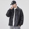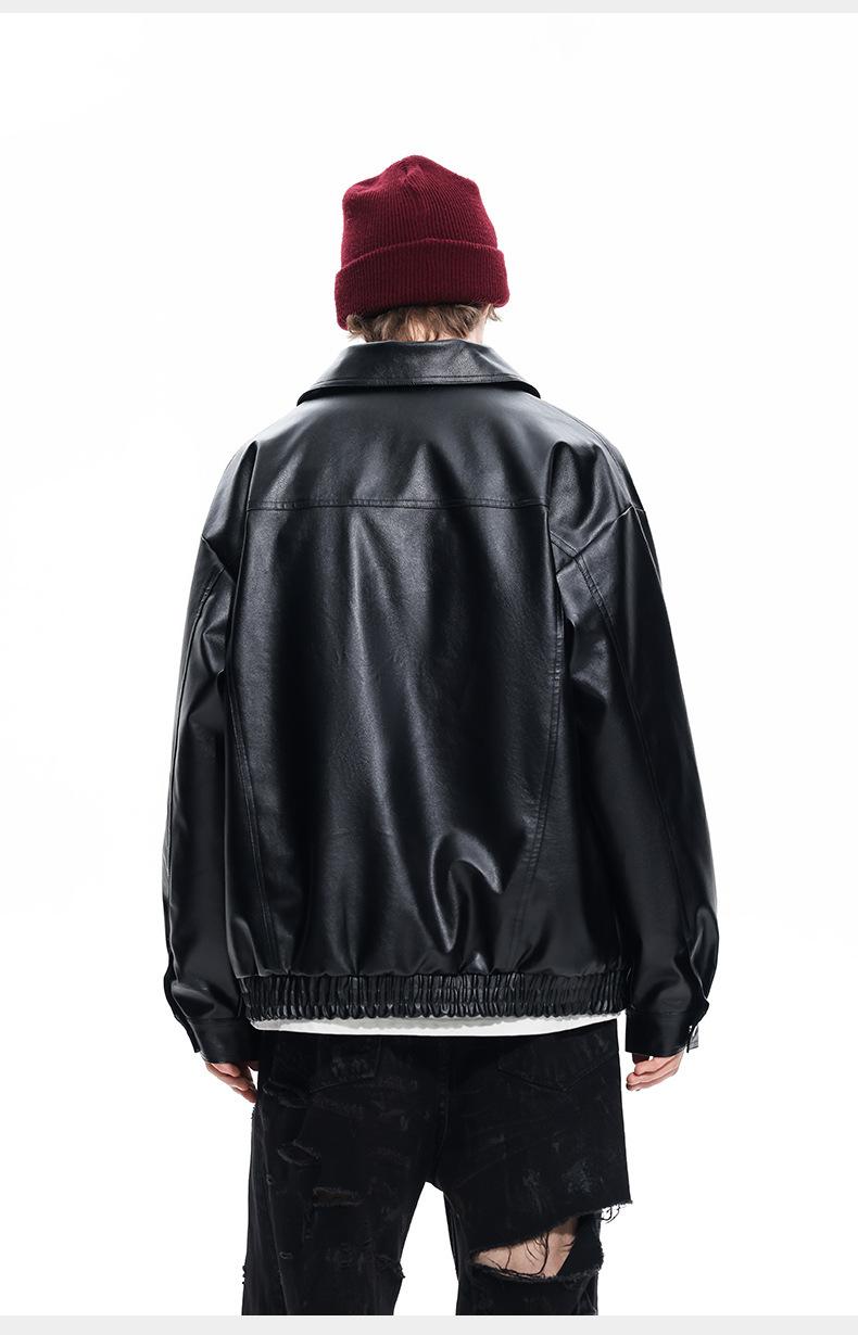 Chaqueta de Cuero Vintage Desgastada para Hombre 2025 Primavera y Otoño Nuevo Estilo Americano Solapa Abrigo de Cuero Suelto Elegante Casual Chaqueta para Parejas