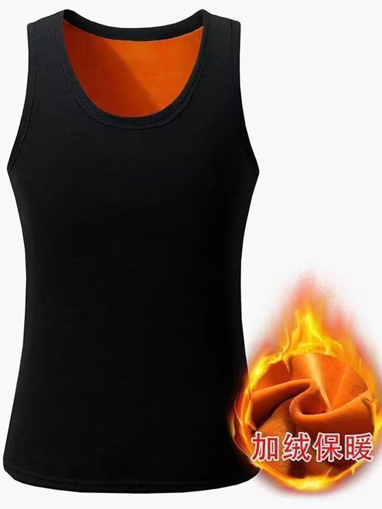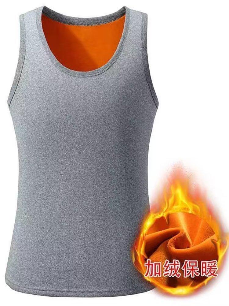 Chaleco cálido de terciopelo sin costuras personalizado con forro polar, ajustado, elástico, interior, para hombre, cuello redondo, color sólido, ropa interior, camisa base