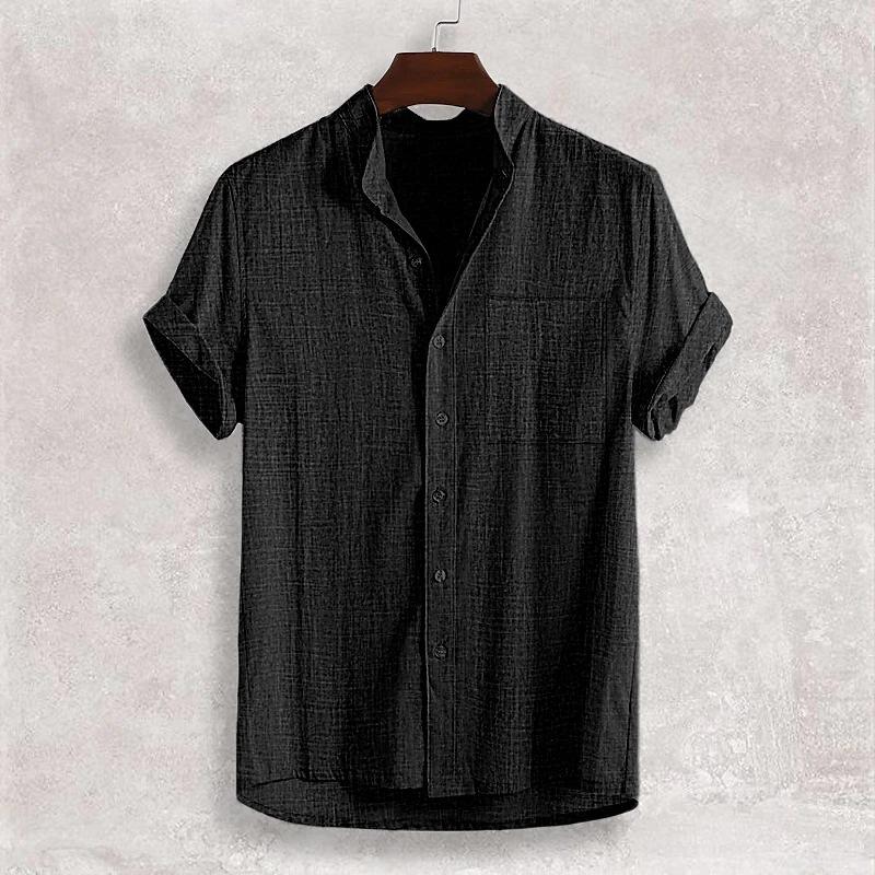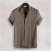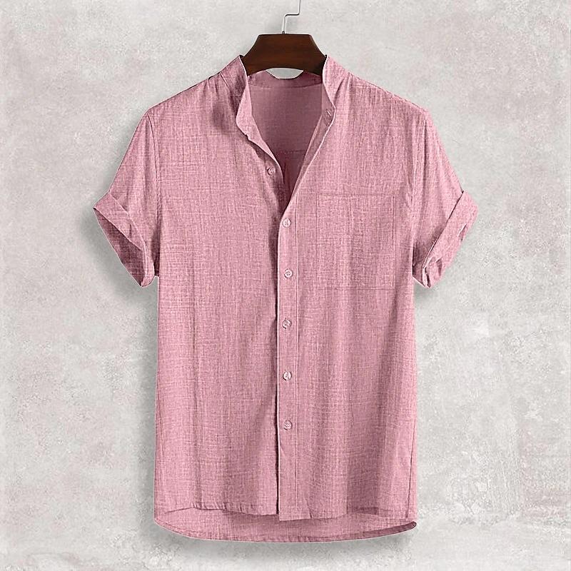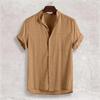 Comercio exterior transfronterizo de Amazon - Cárdigan de algodón y lino con cuello alto para hombre, camisa fina de manga corta, talla europea, camisa de verano para hombre