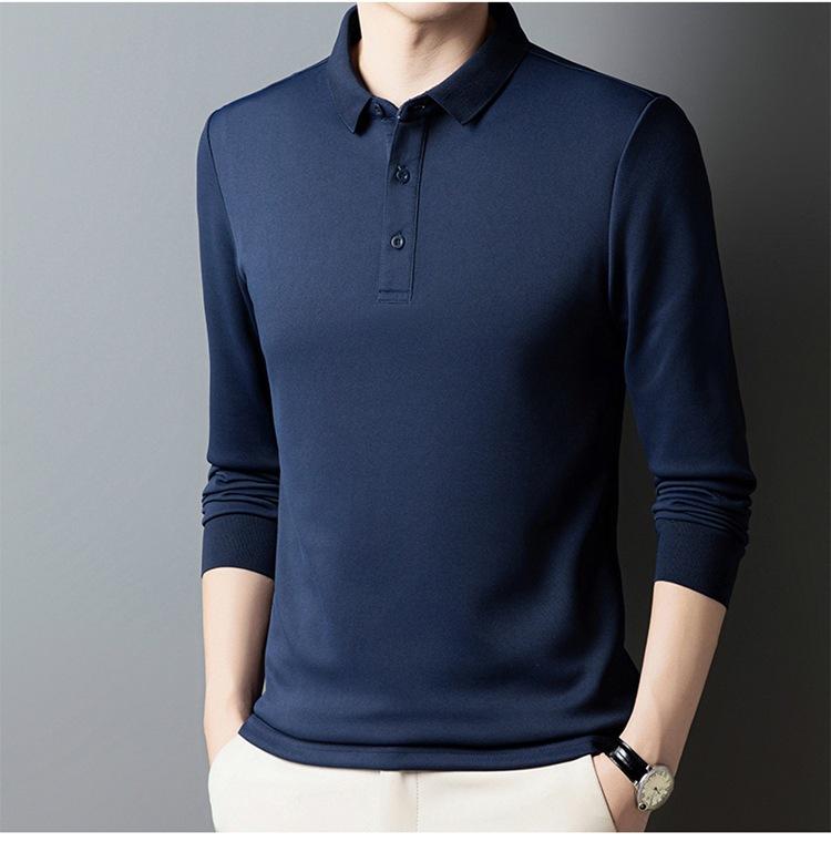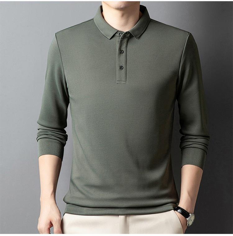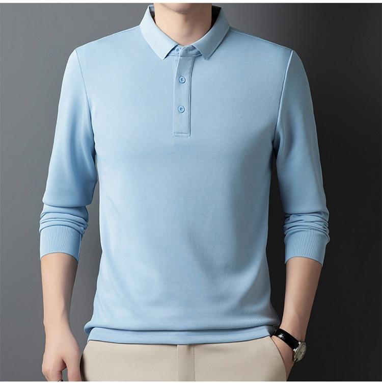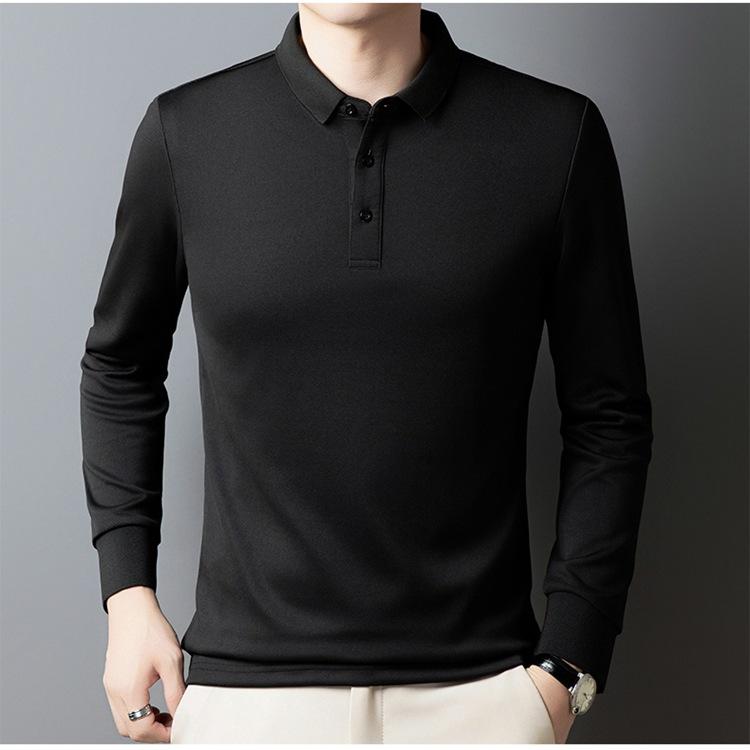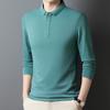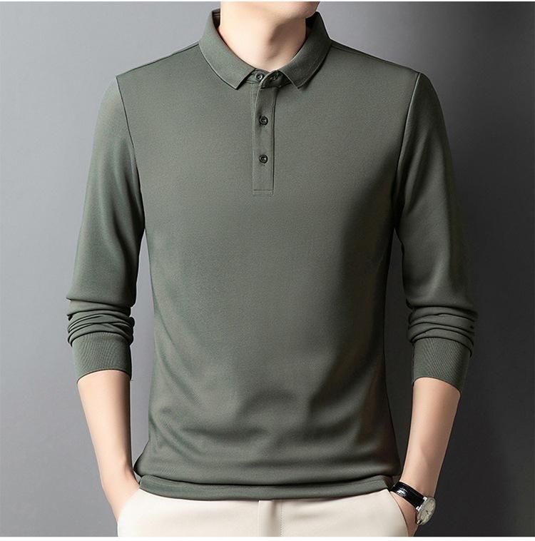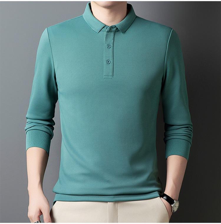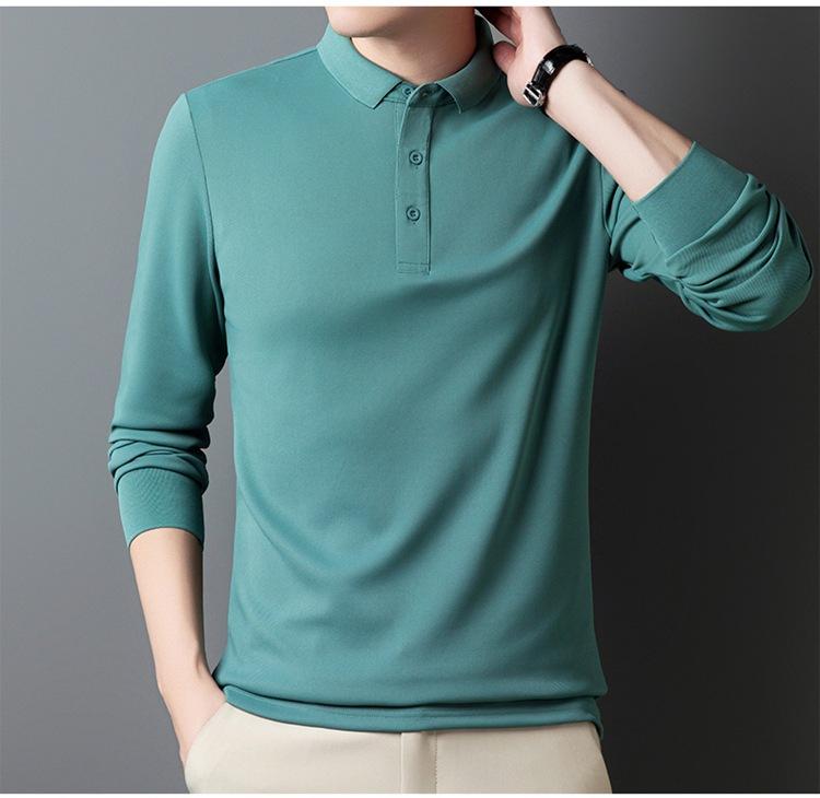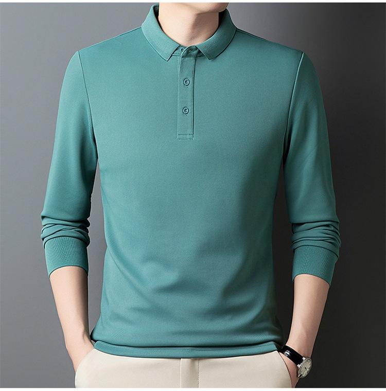 Camiseta informal de manga larga para hombre de mediana edad y jóvenes, de negocios, de otoño, con solapa de color liso, polo de moda