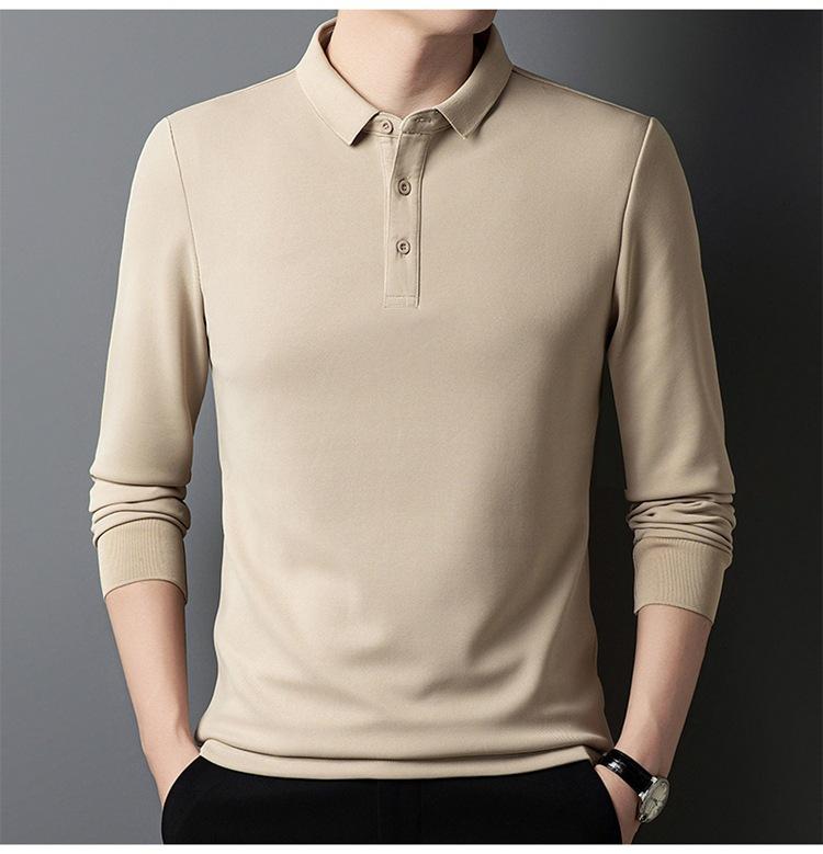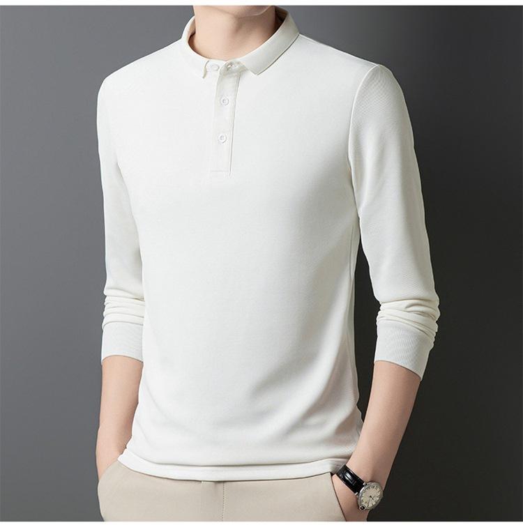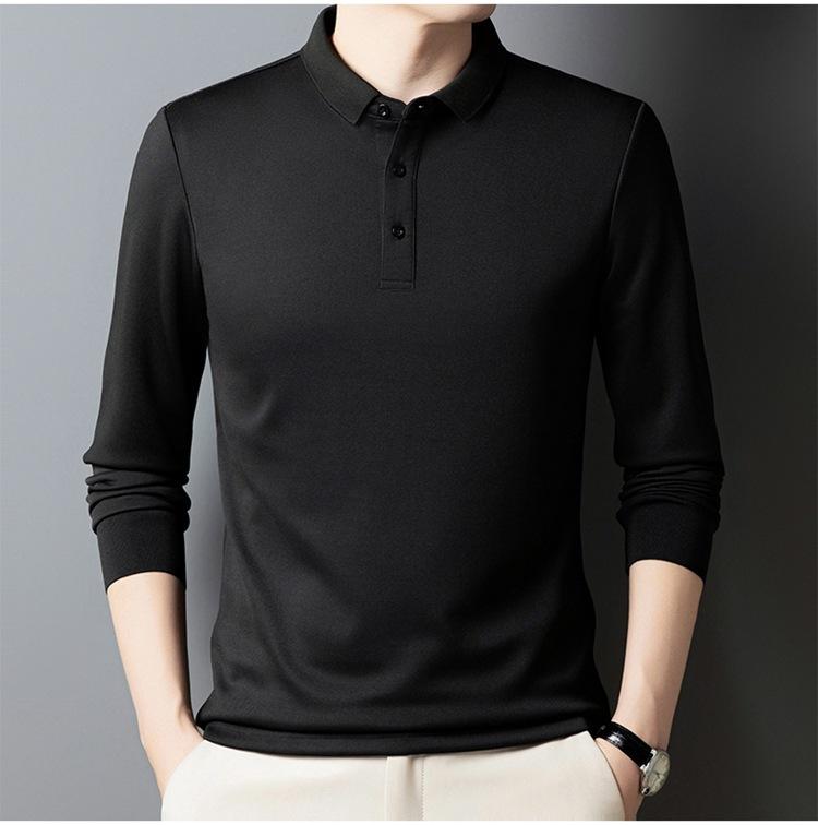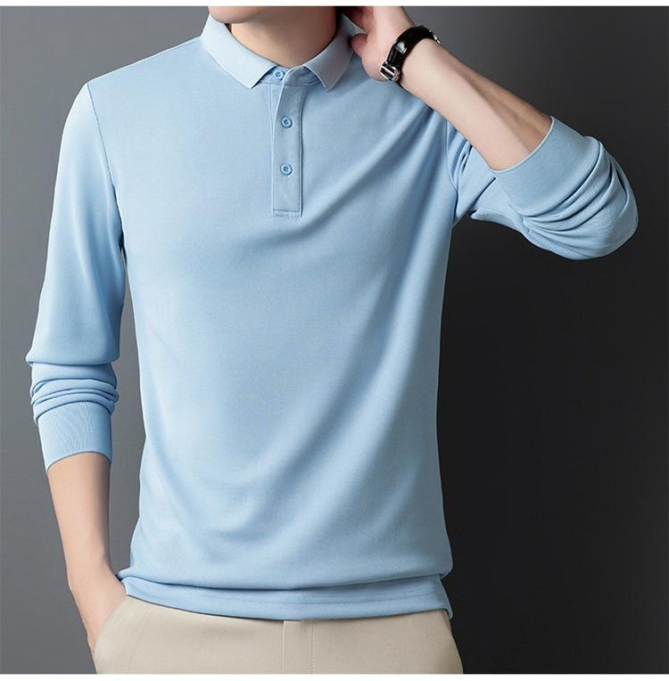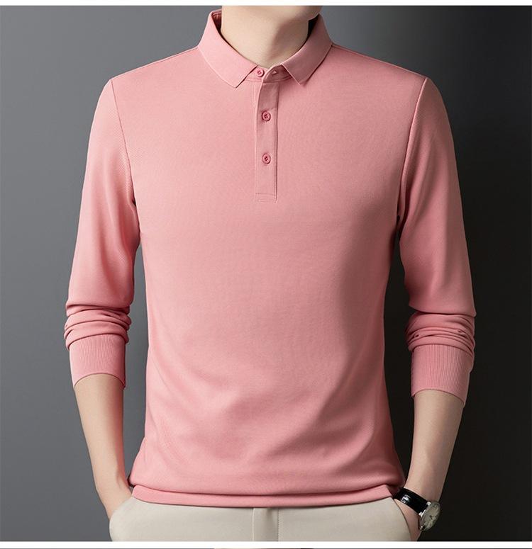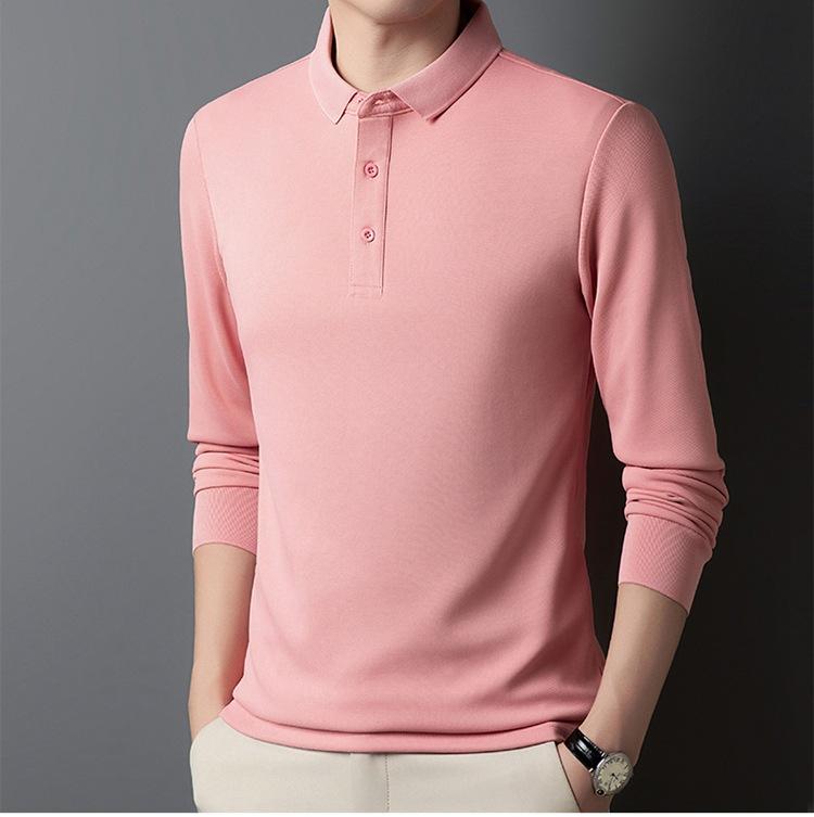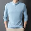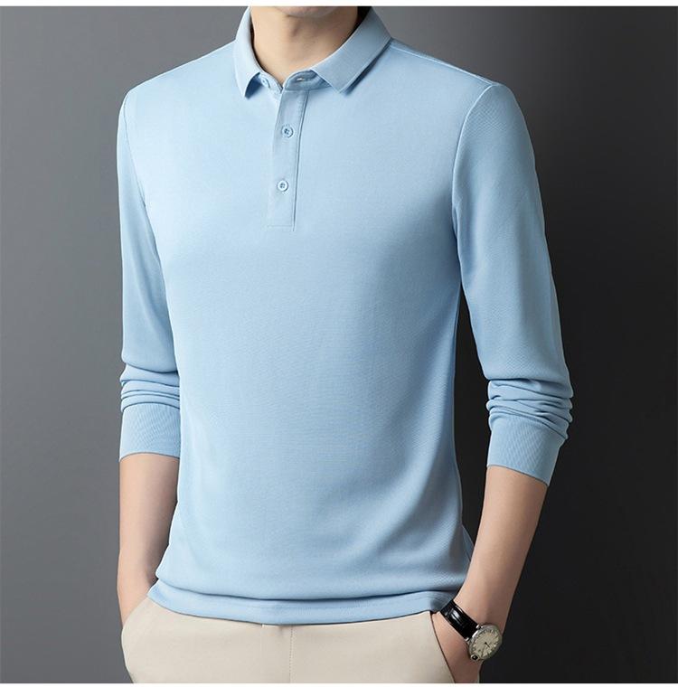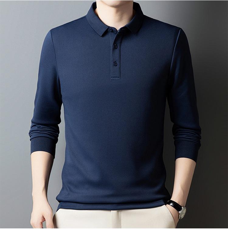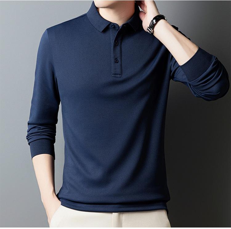 Camiseta informal de manga larga para hombre de mediana edad y jóvenes, de negocios, de otoño, con solapa de color liso, polo de moda