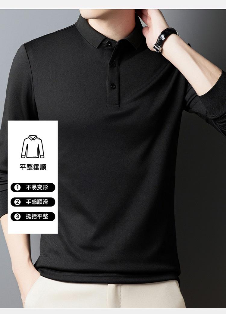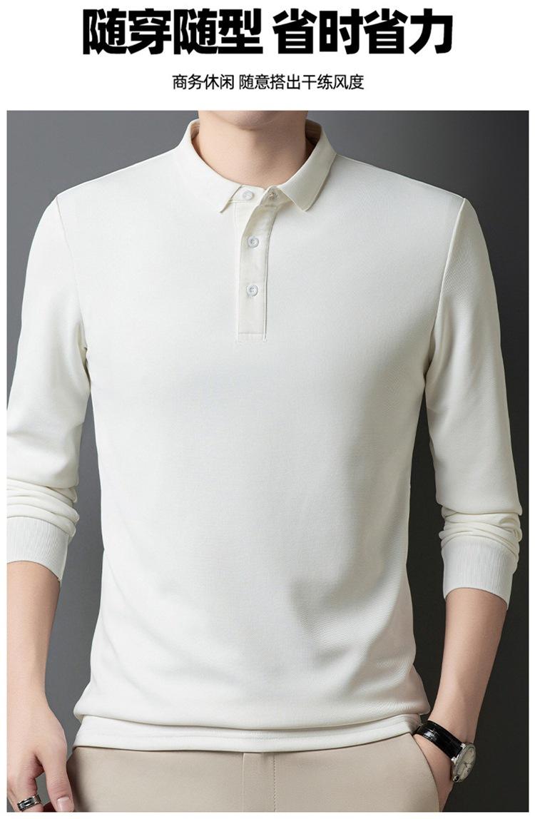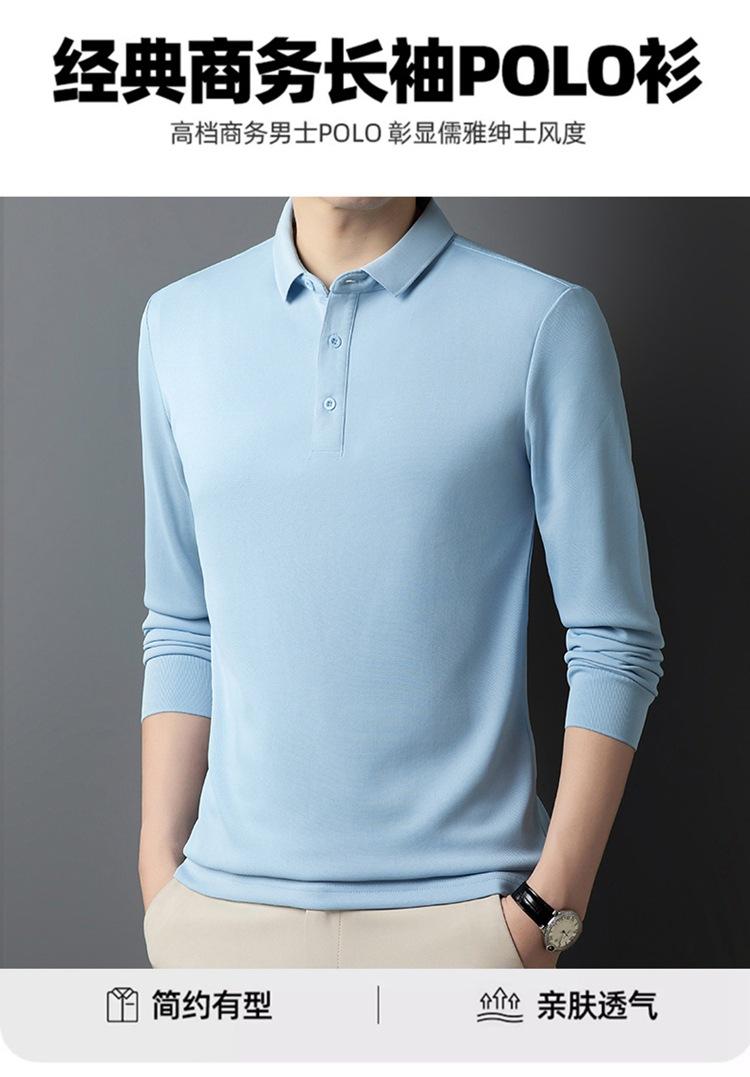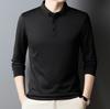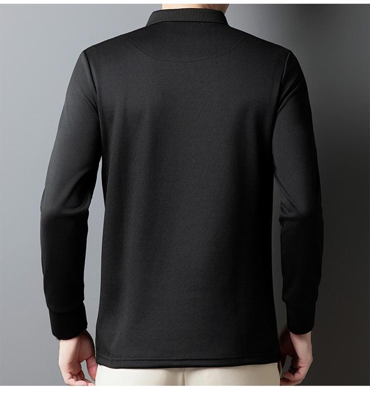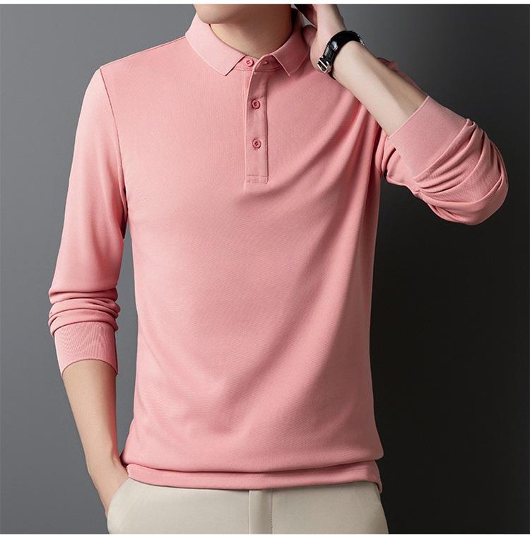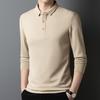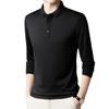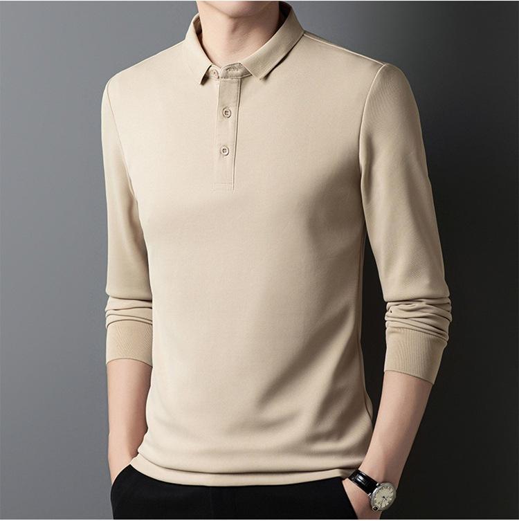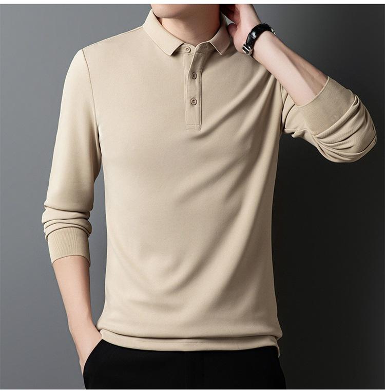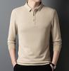 Camiseta informal de manga larga para hombre de mediana edad y jóvenes, de negocios, de otoño, con solapa de color liso, polo de moda