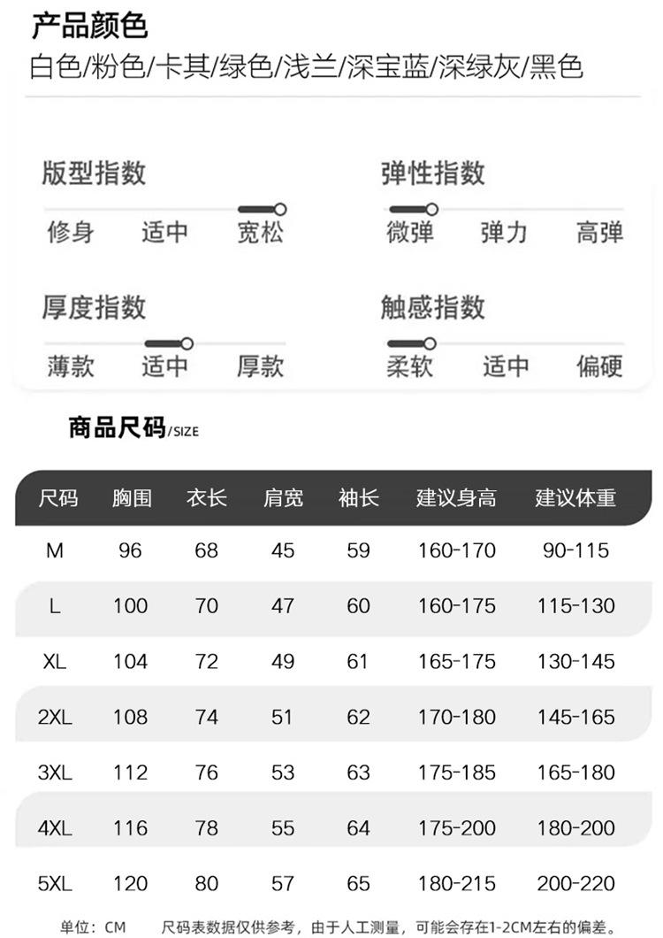 M, L, XL, 2XL, 3XL, 4XL, 5XL