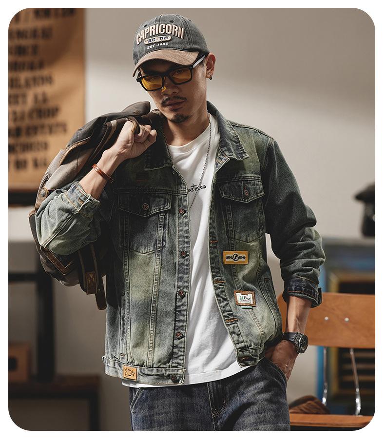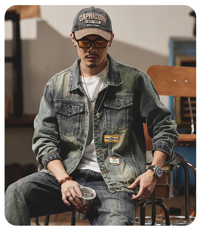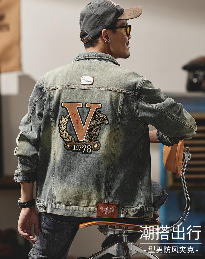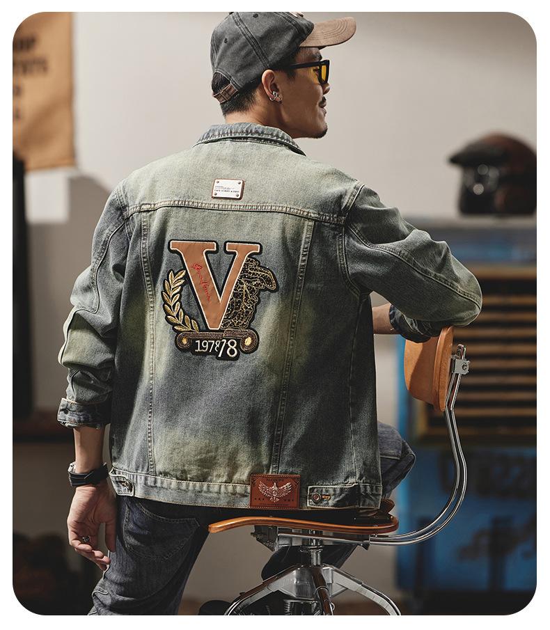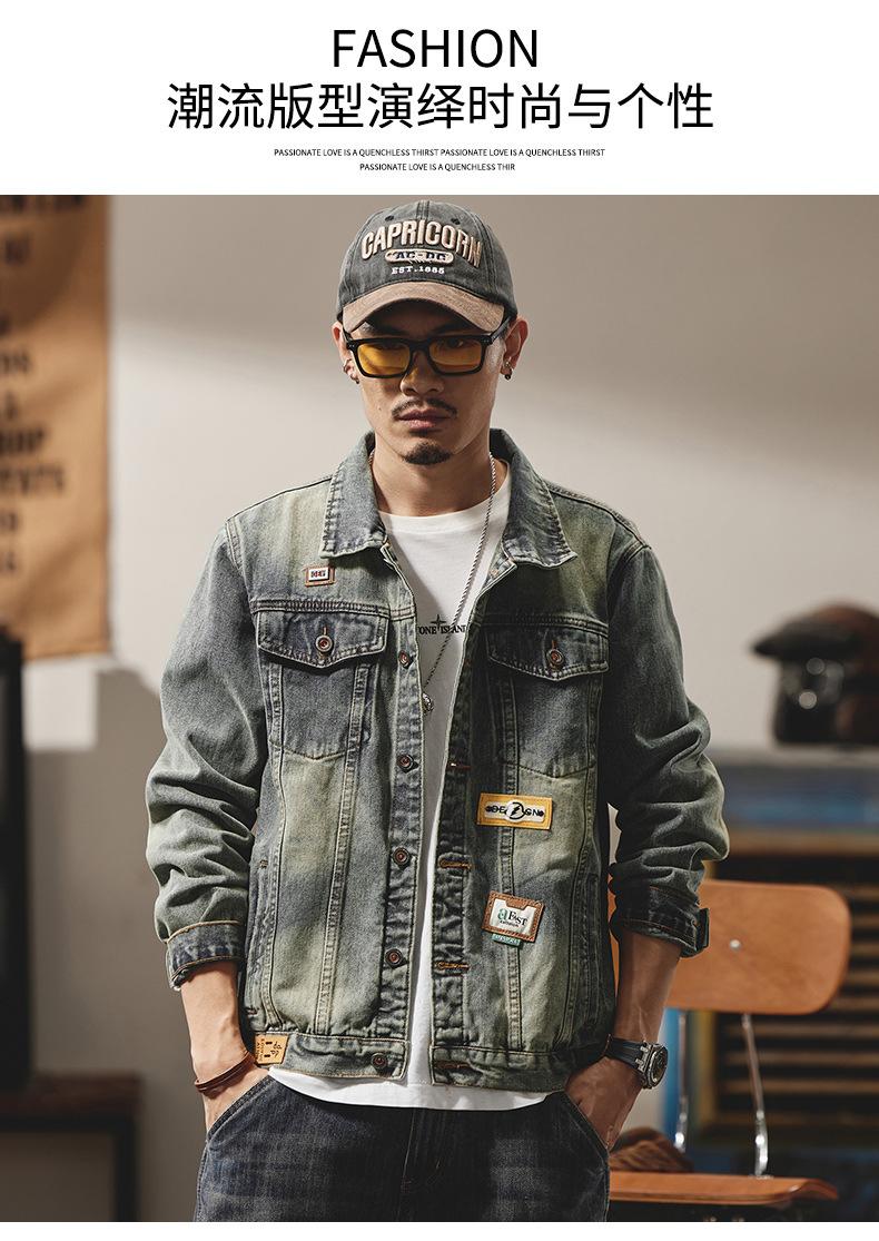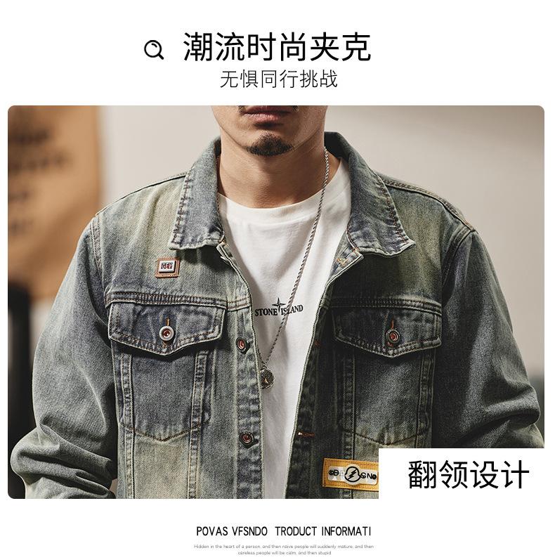 Chaqueta vaquera lavada vintage de marca de moda de estilo americano para hombre, holgada, de talla grande, de primavera, informal, de alta gama, con solapa