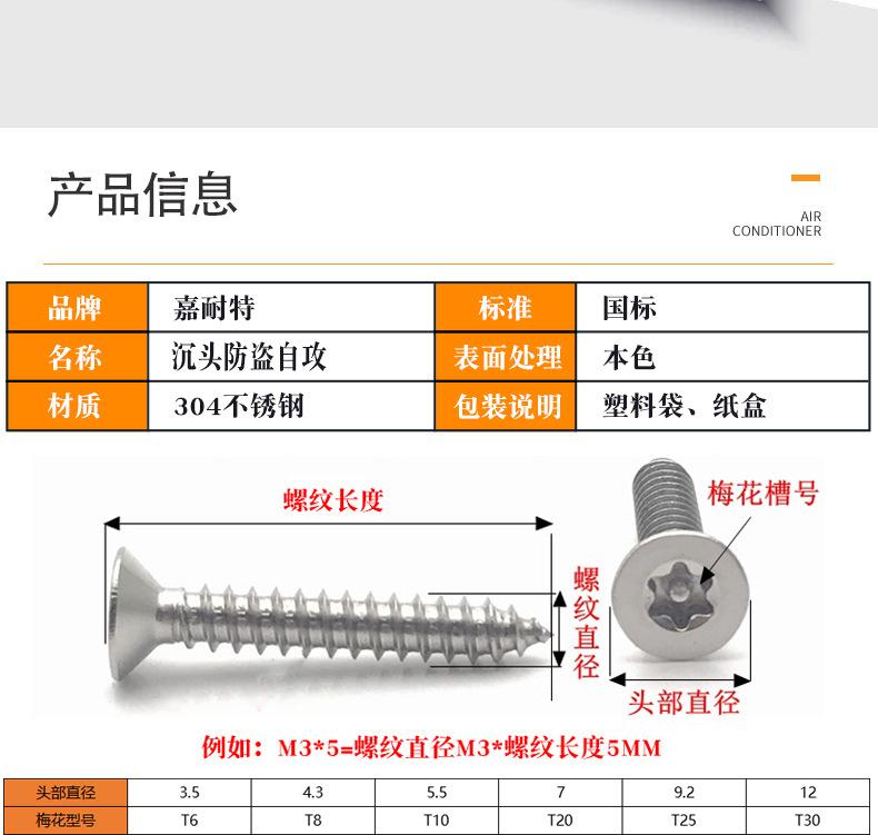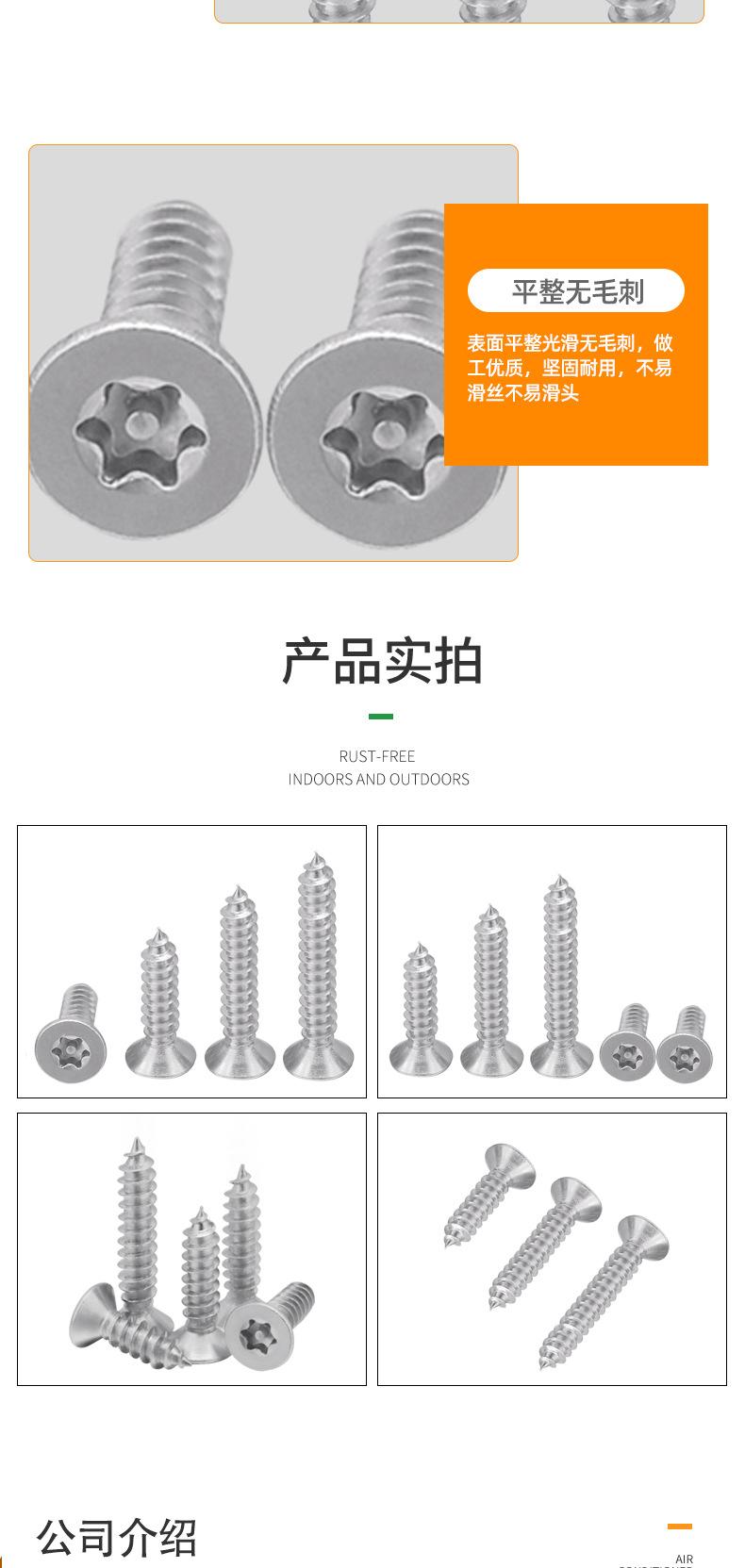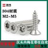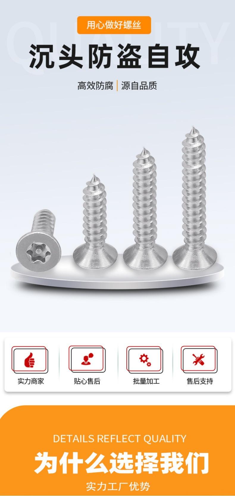 Tornillo autorroscante antirrobo de cabeza avellanada de acero inoxidable 304 con forma de flor de ciruelo, cabeza plana y columna, M2M2.6M3M4M5