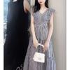 Vestido de verano sin mangas con escote francés, ideal para el té, de alta gama, para mujer, 2024, nuevo vestido floral X2265