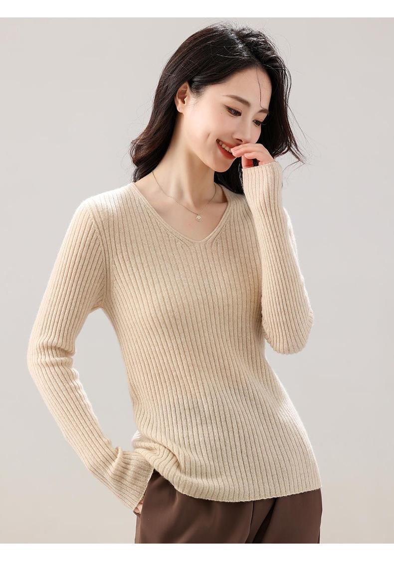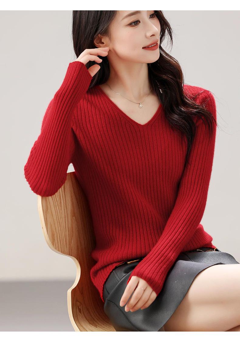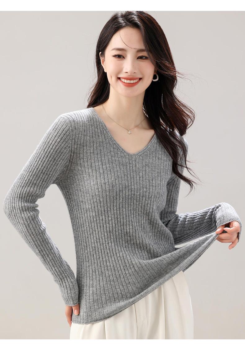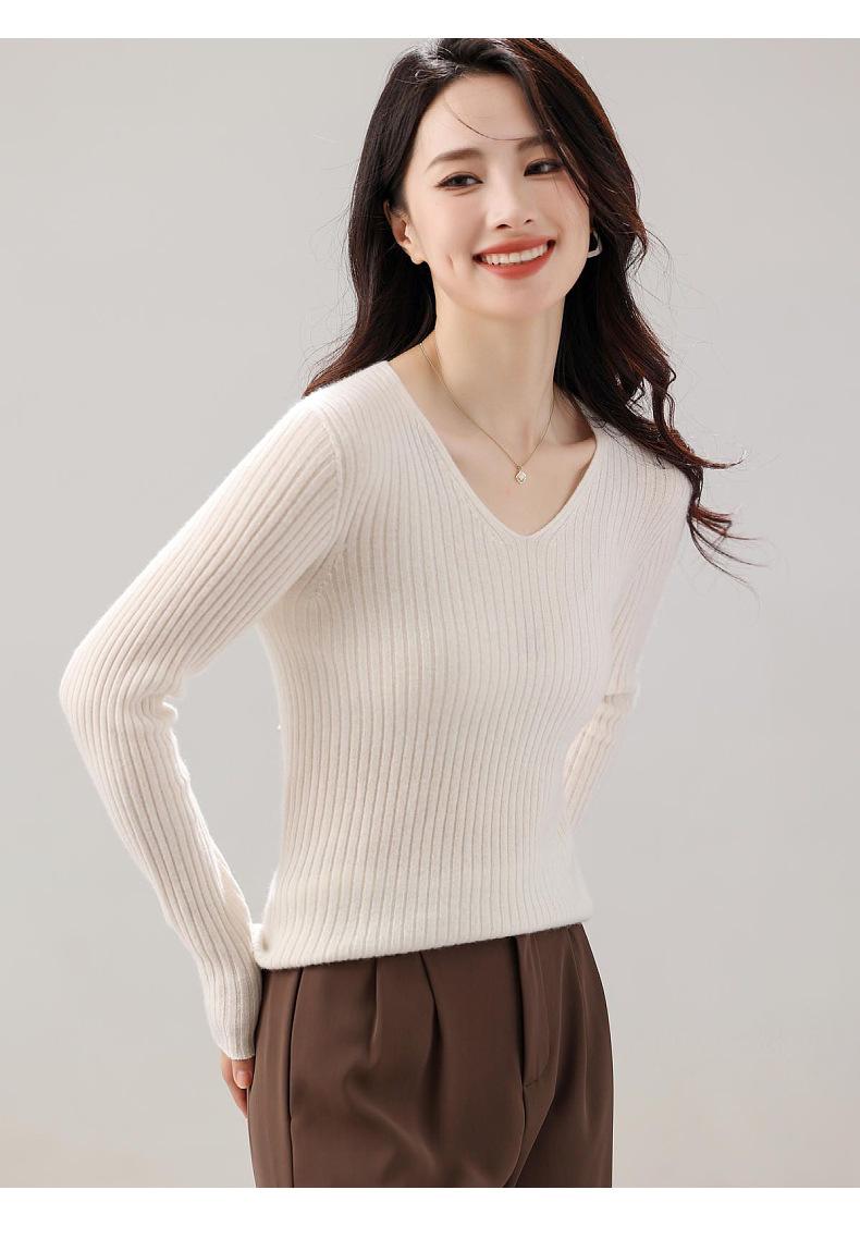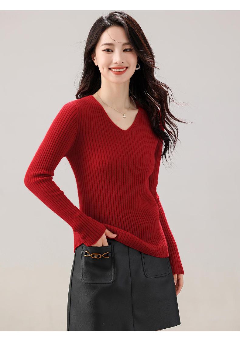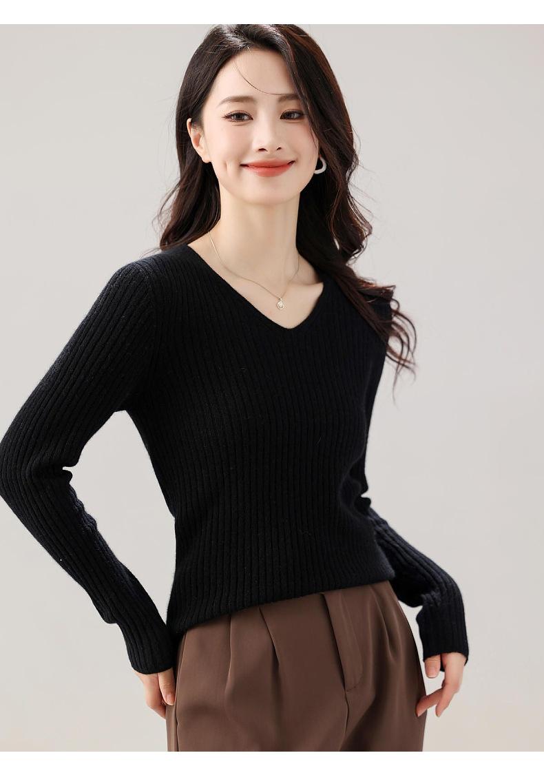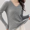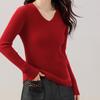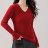 Nuevo Otoño e Invierno 2024 Casual para Ir al Trabajo Más Fácil de Combinar Moda 100 Pequeño Cachemir Cuello Redondo Manga Larga Slim Camiseta Básica para Mujer