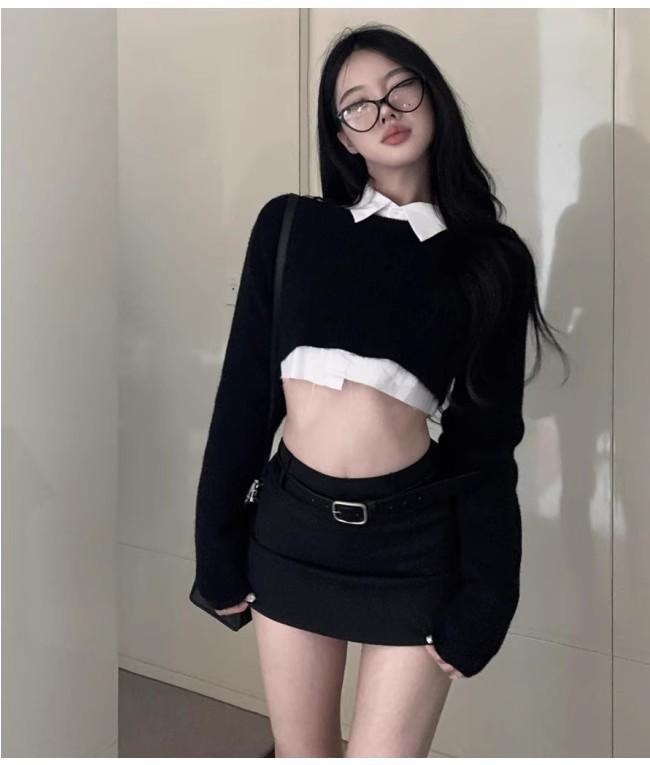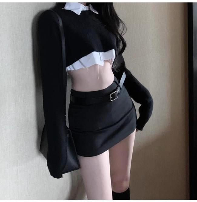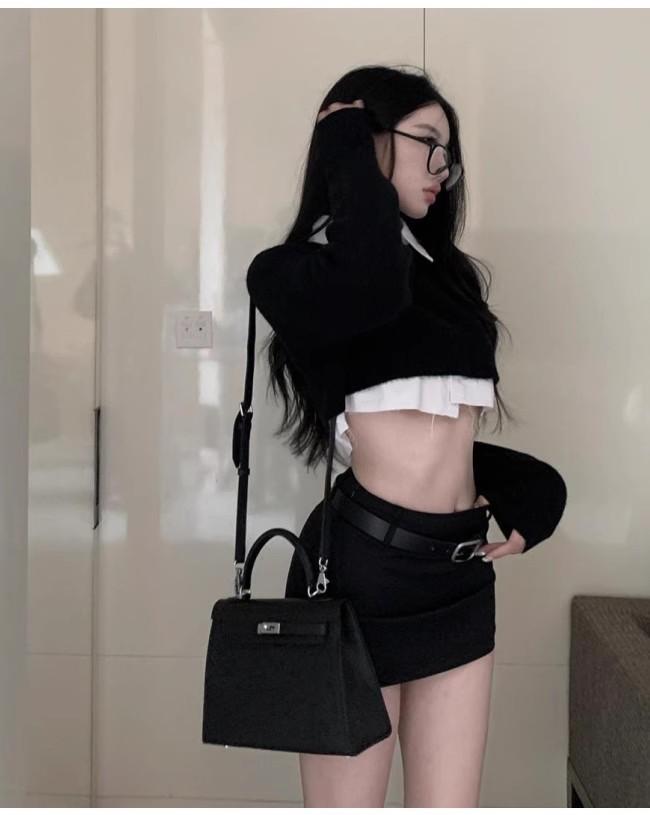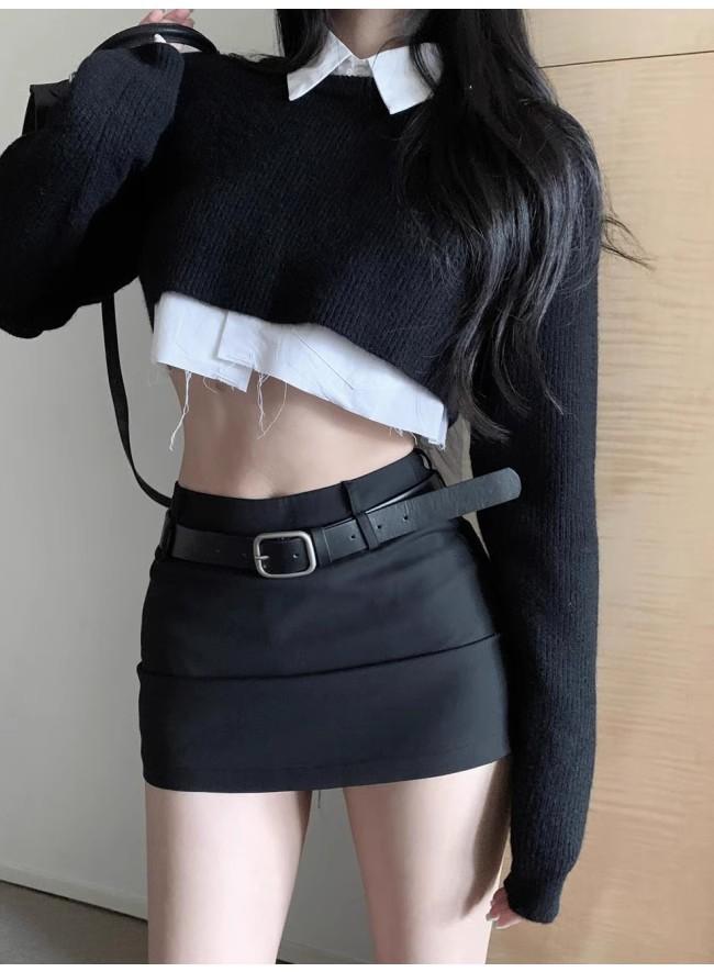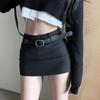 Falda negra para chicas sexys, primavera y verano 2024, falda corta de un solo paso, cintura alta, ajustada, sexy, a la cadera.