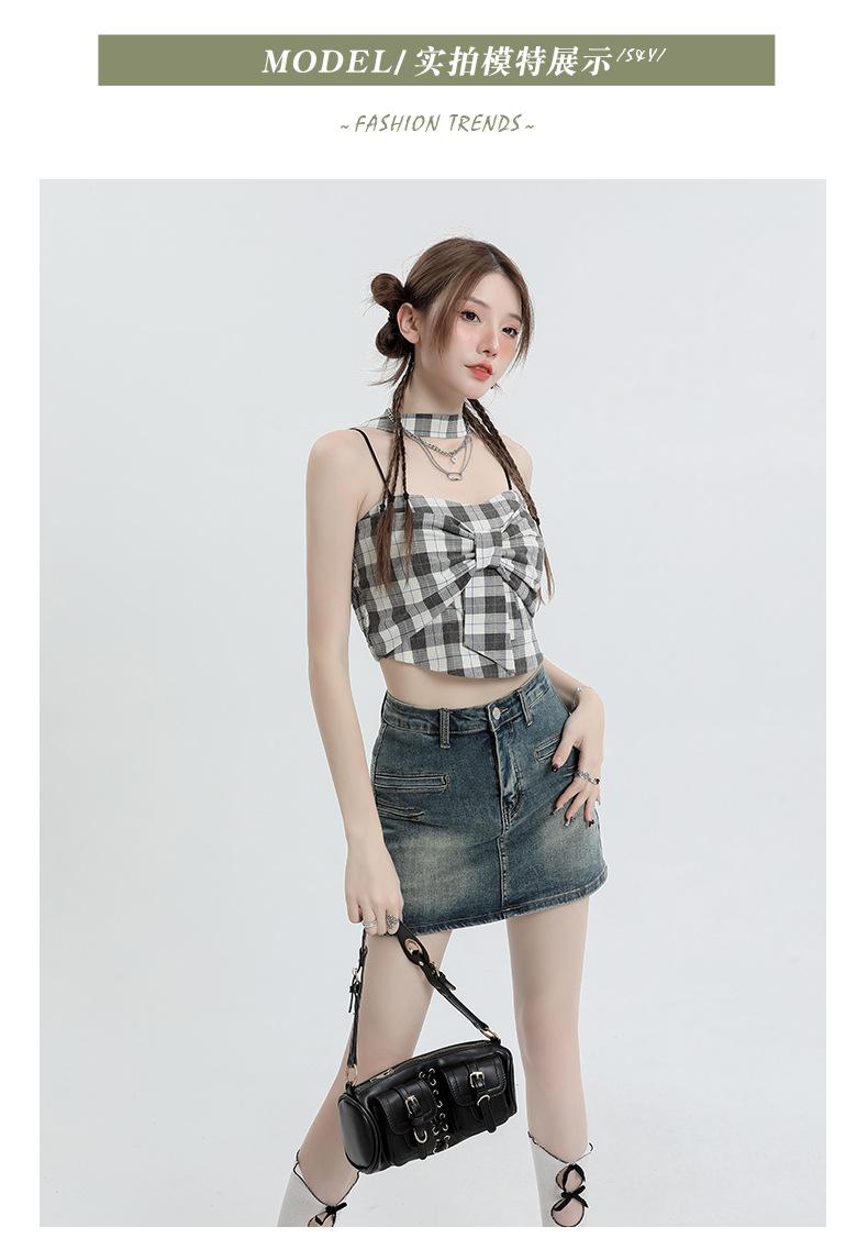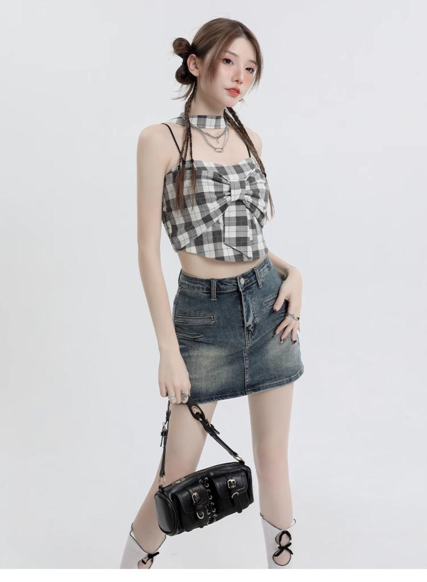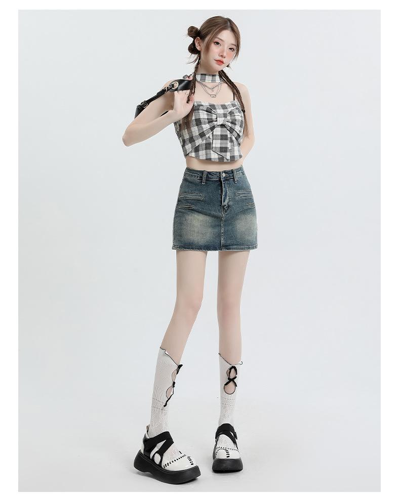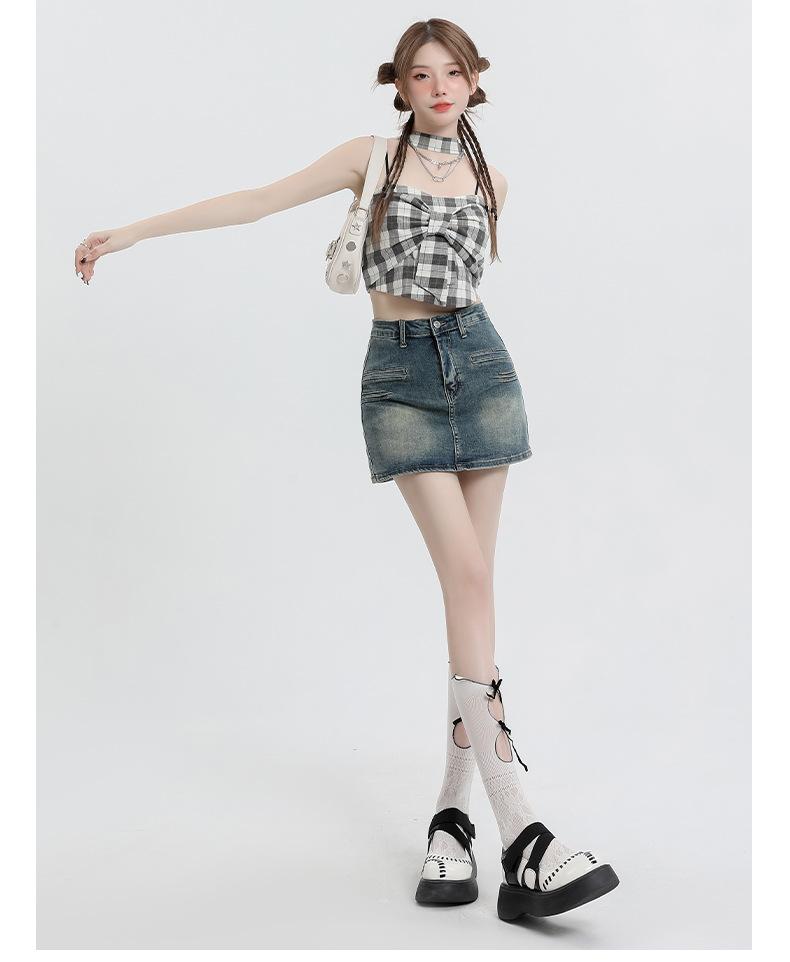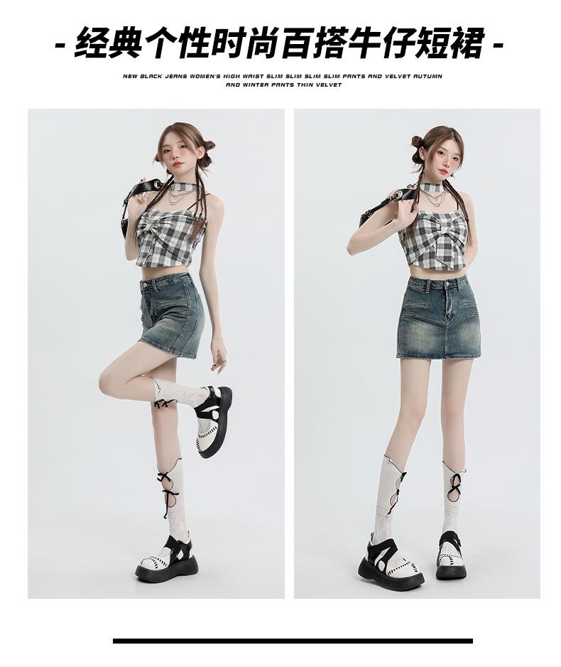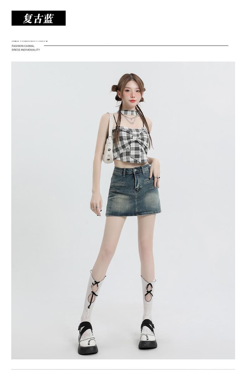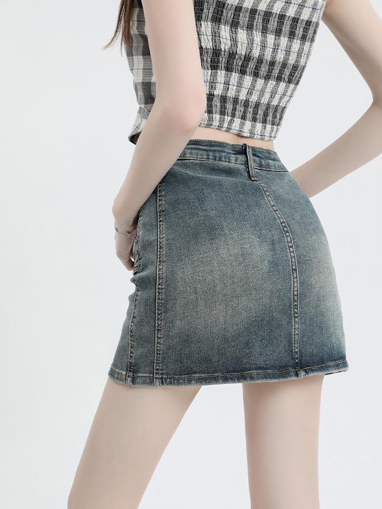 Falda Retro de Mezclilla Azul para Mujer 2025 Verano Nuevo Sexy Cintura Alta Look Adelgazante y Falda Línea A Cubre Caderas Altas