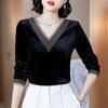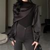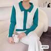 Estilo Elegante para Ir al Trabajo, Camisa de Cuello Verde de Alta Gama, Camisa Simple Vintage, Top Rojo de Manga Larga, Ropa de Mujer de Otoño y Verano