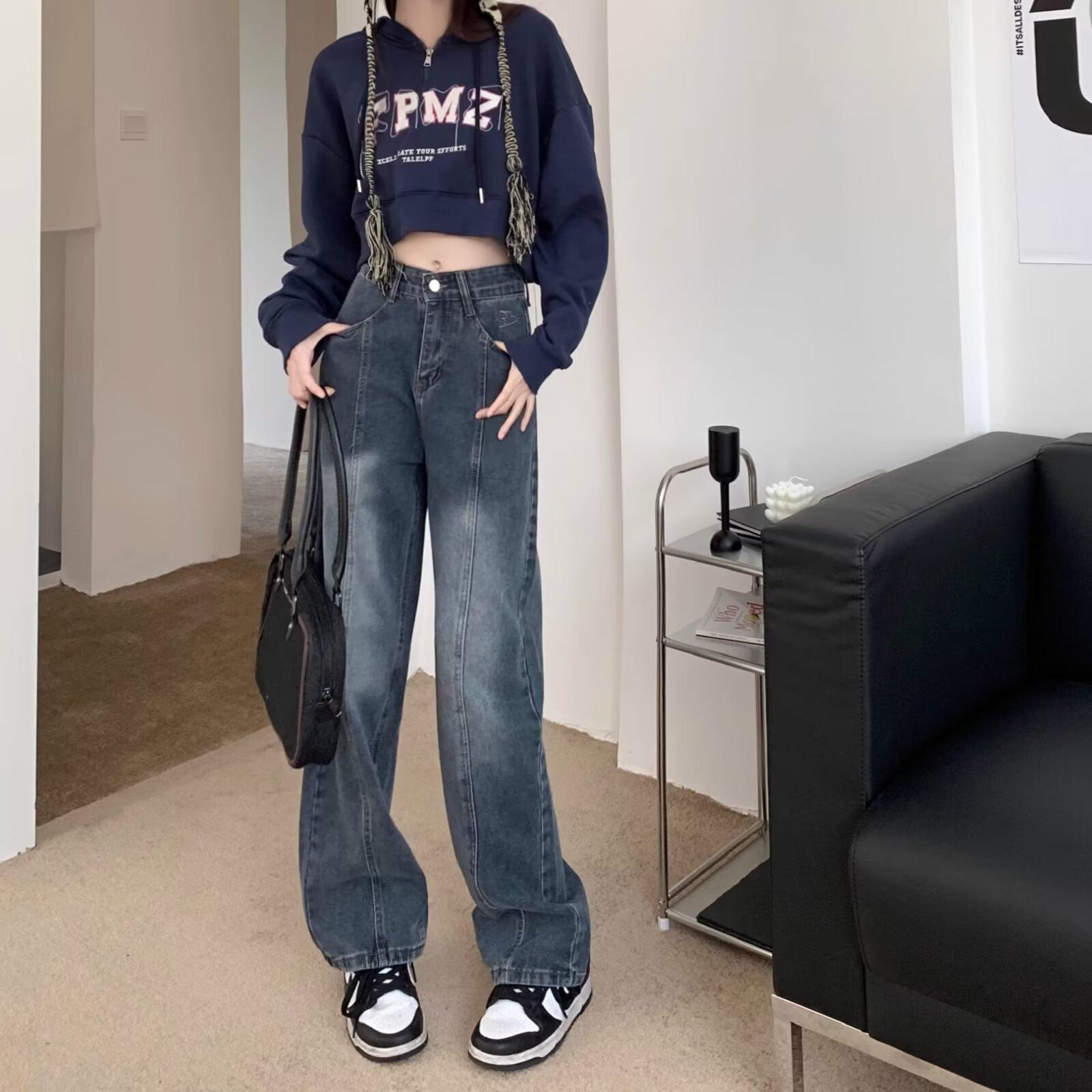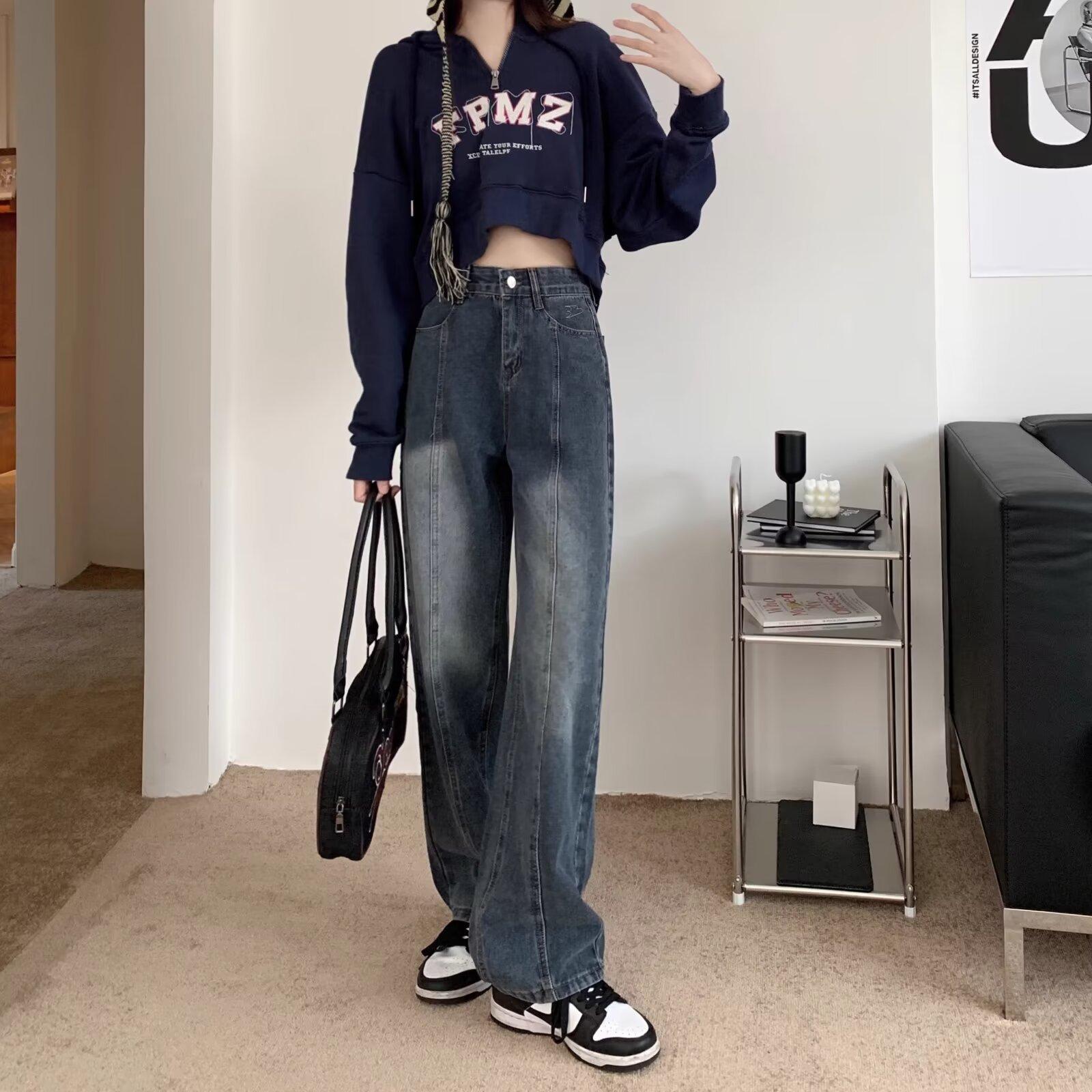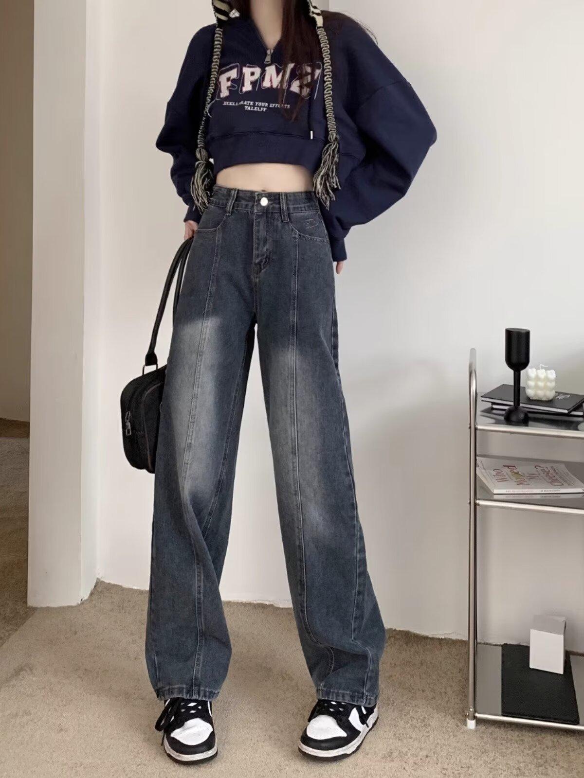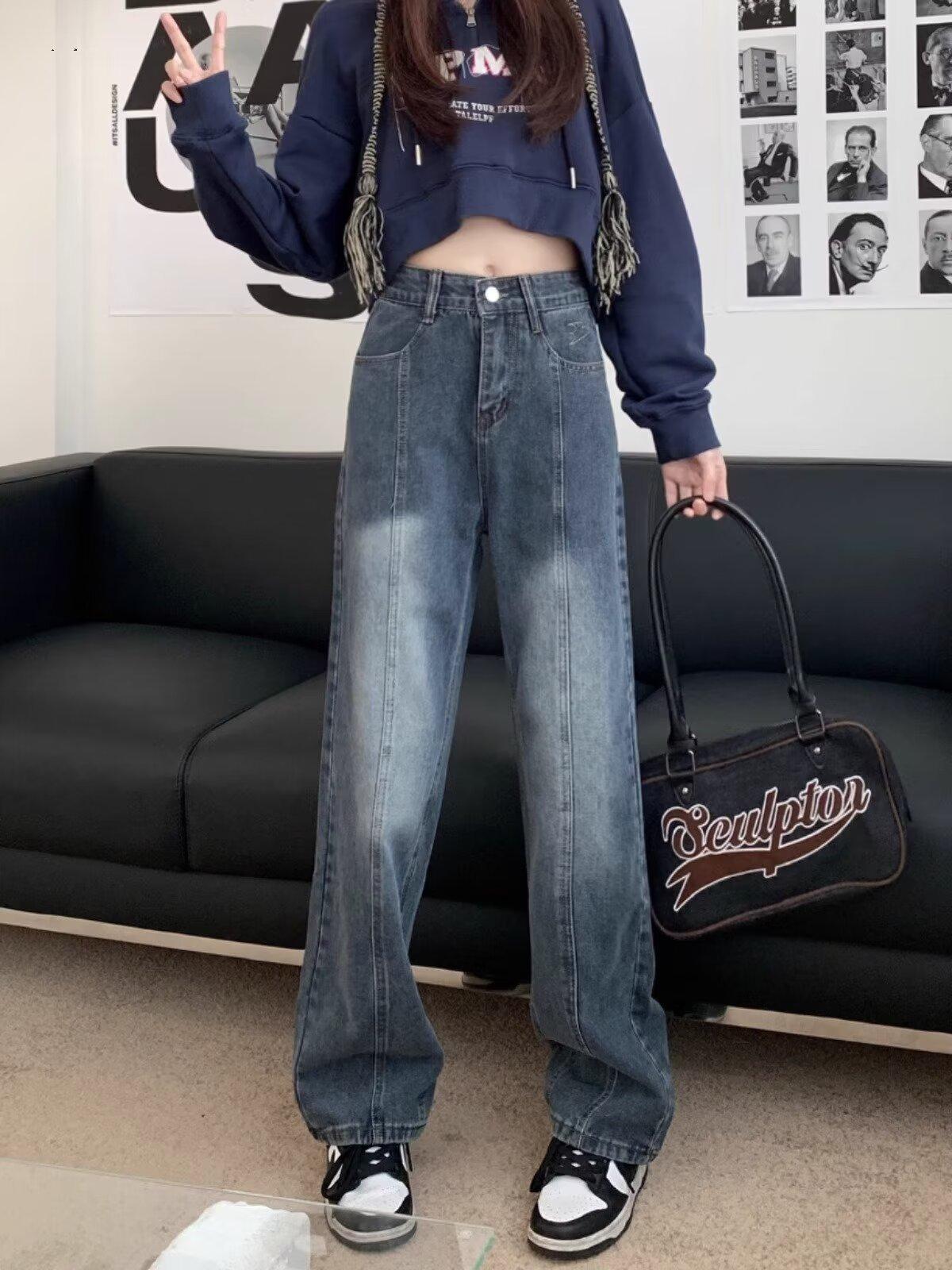 Compra Pantalones vaqueros de pierna ancha estilo americano retro, primavera 2024, de cintura alta, rectos y sueltos para mujer al por mayor en Joom.pro