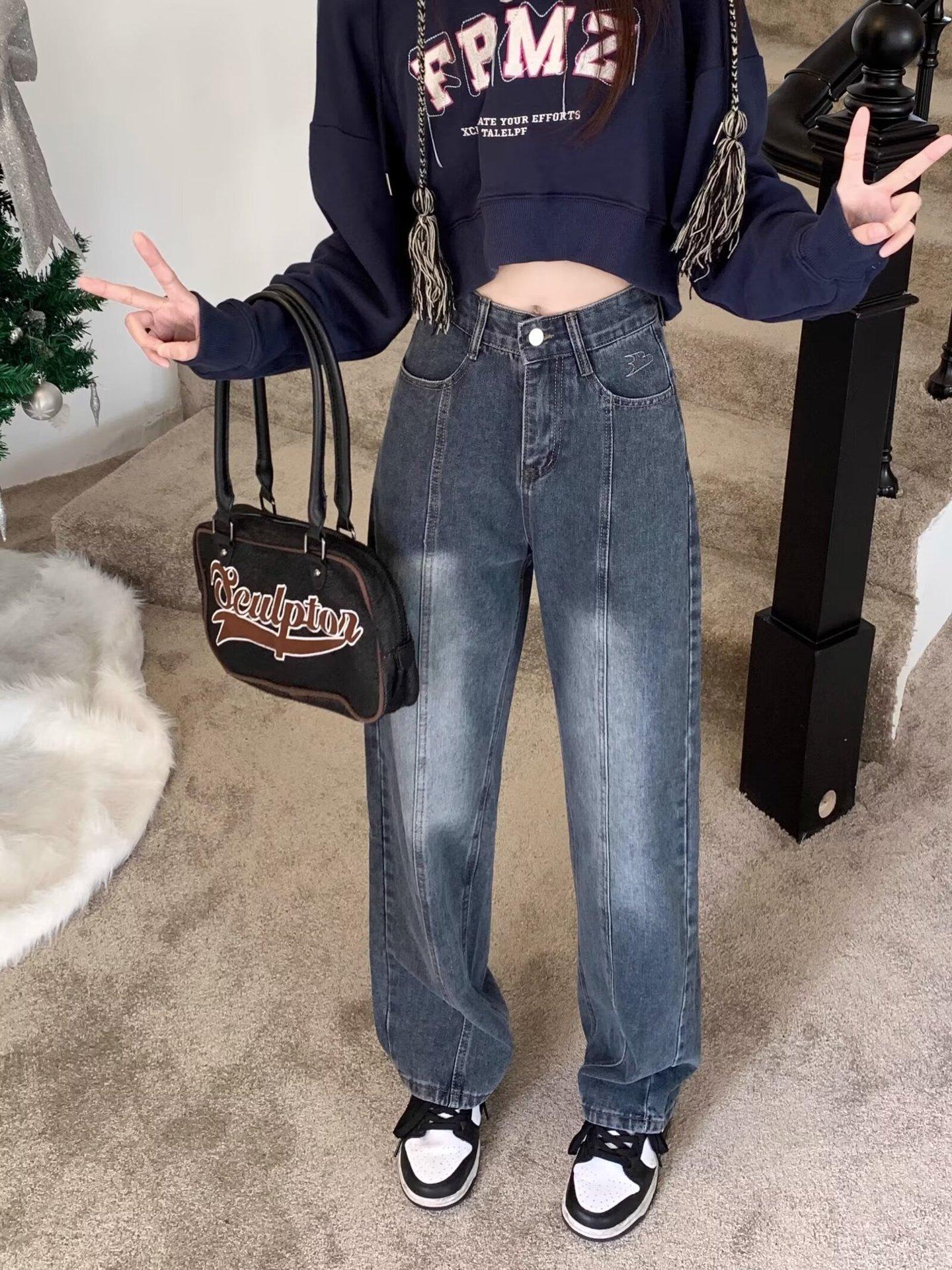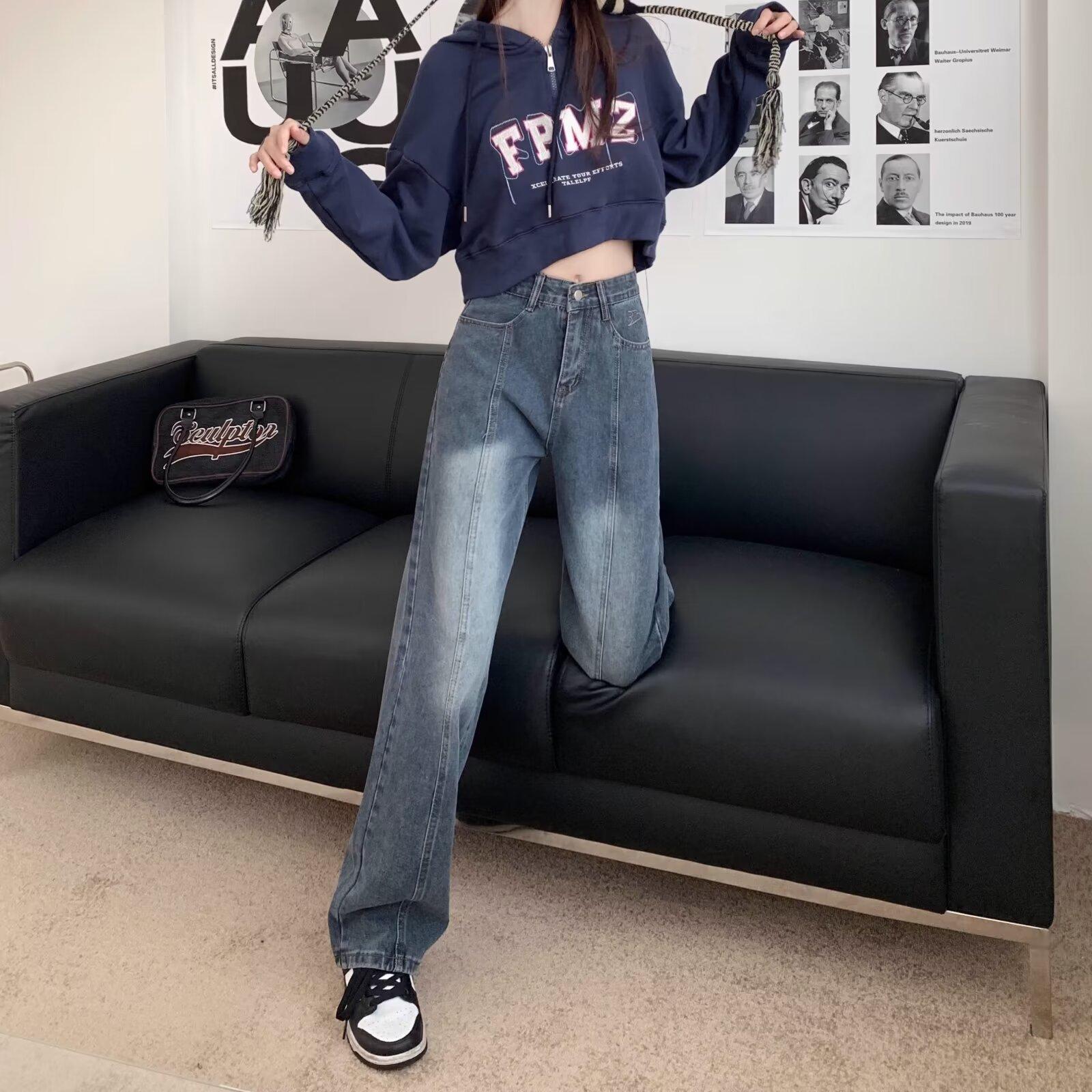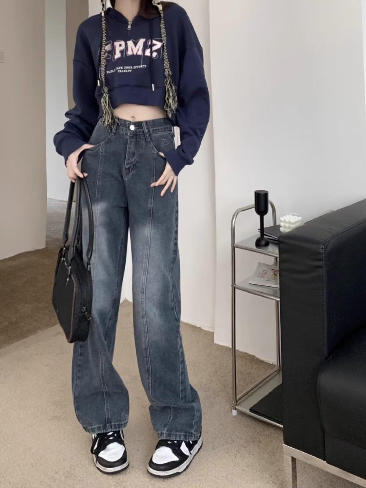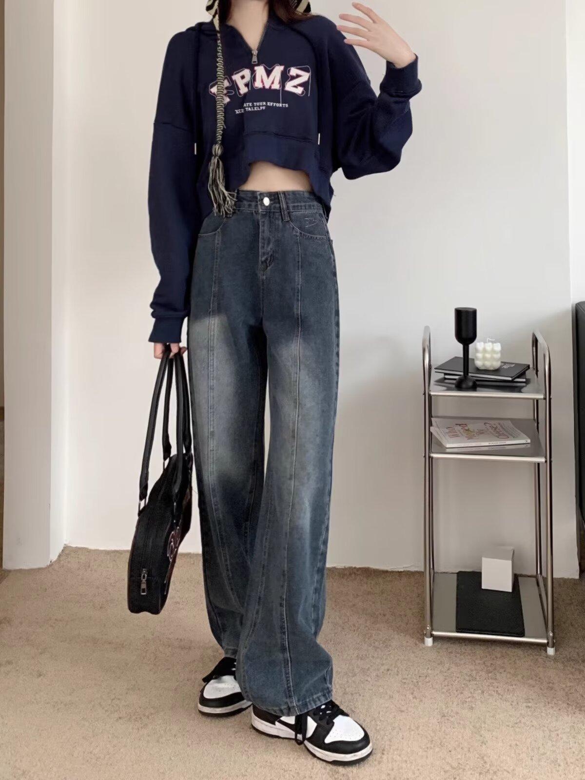 Compra Pantalones vaqueros de pierna ancha estilo americano retro, primavera 2024, de cintura alta, rectos y sueltos para mujer al por mayor en Joom.pro