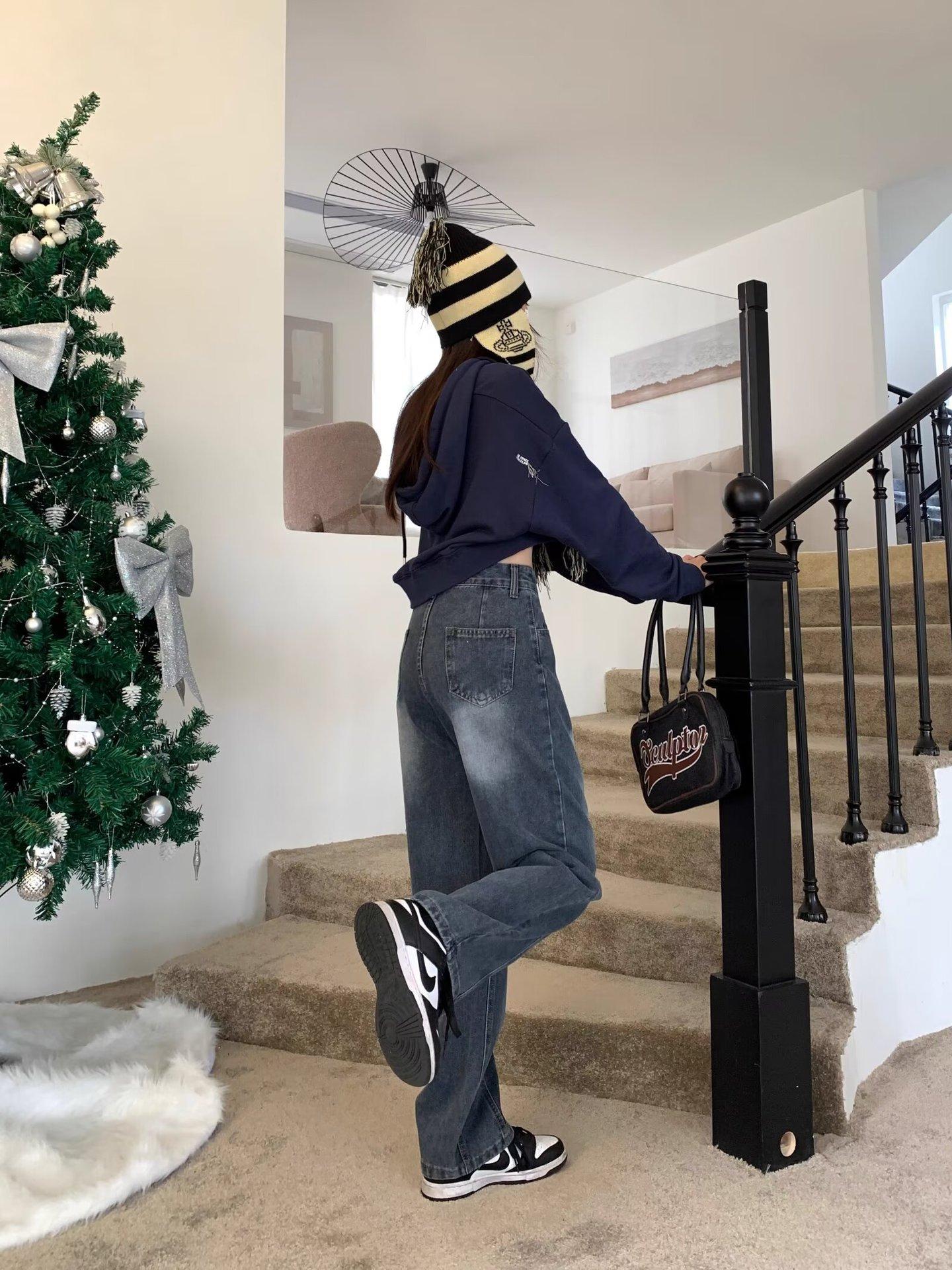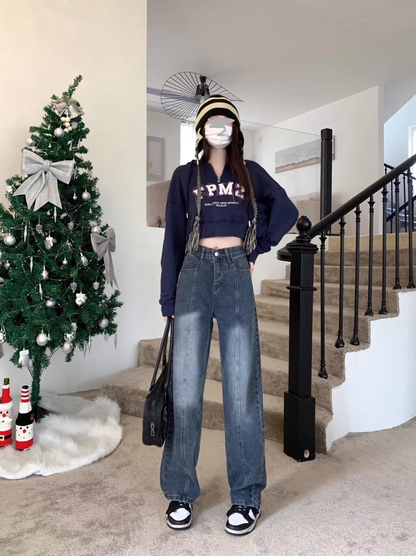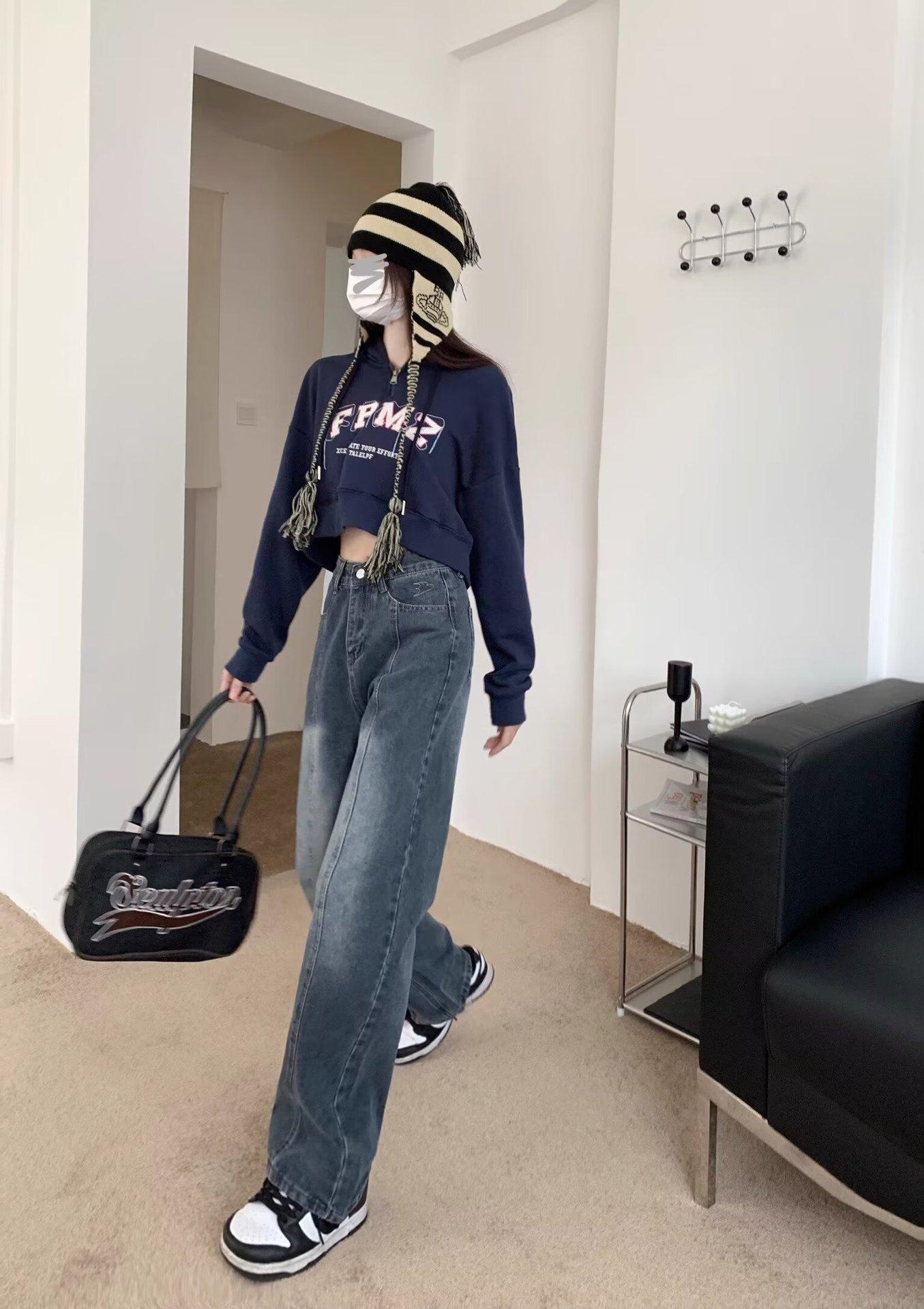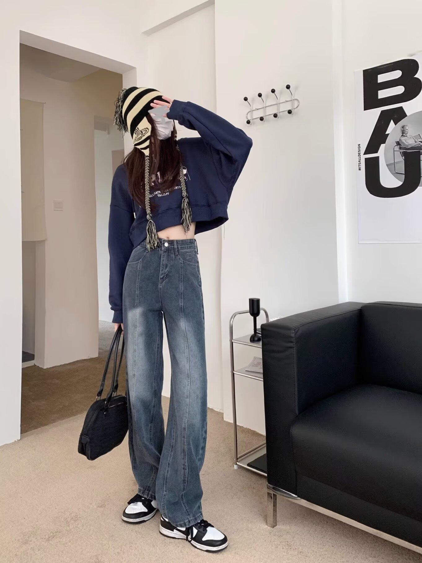 Compra Pantalones vaqueros de pierna ancha estilo americano retro, primavera 2024, de cintura alta, rectos y sueltos para mujer al por mayor en Joom.pro