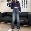 Pantalones vaqueros de pierna ancha estilo americano retro, primavera 2024, de cintura alta, rectos y sueltos para mujer
