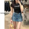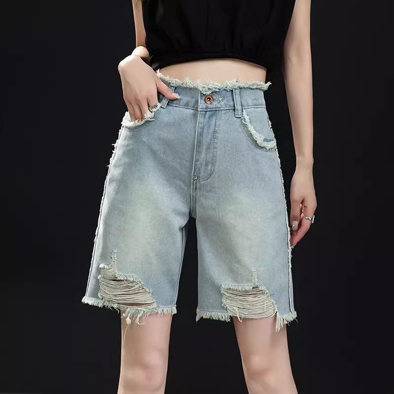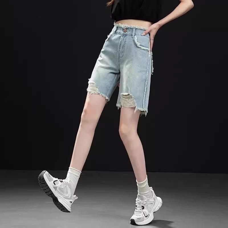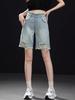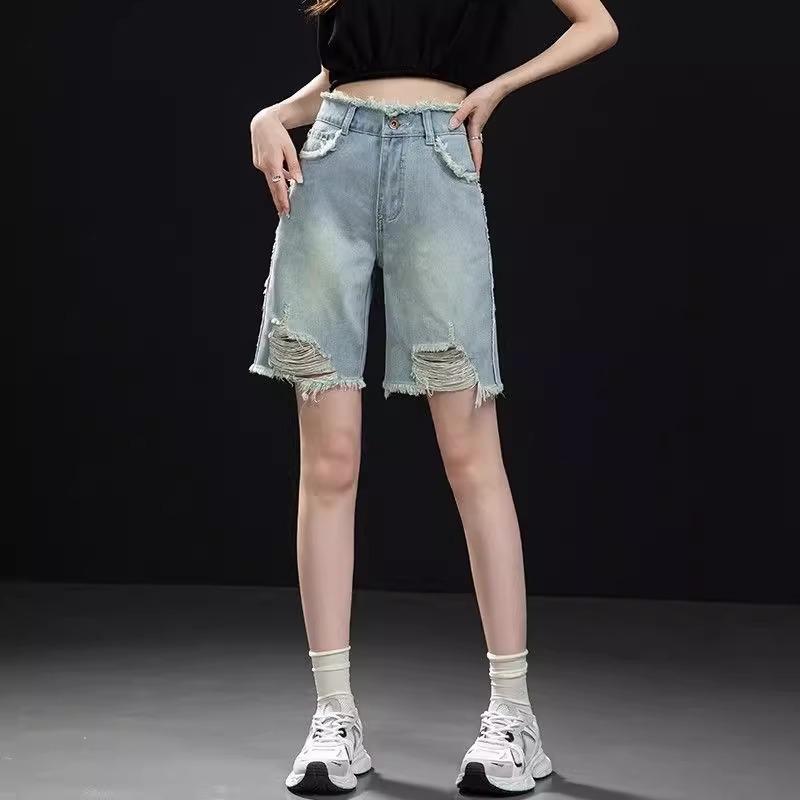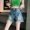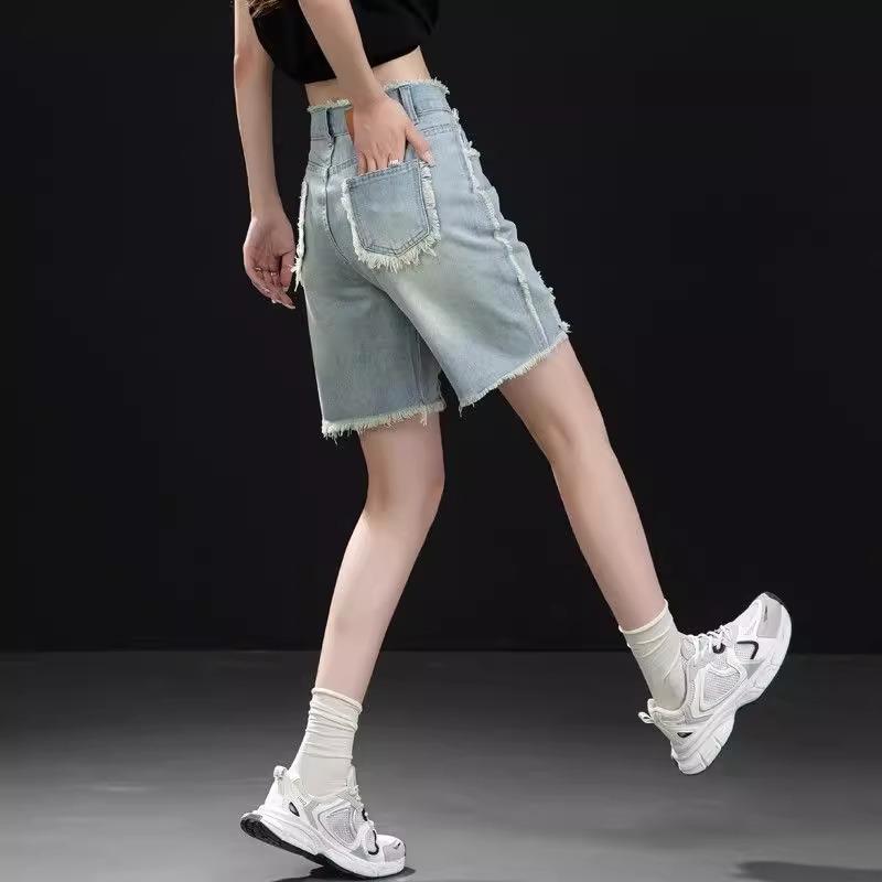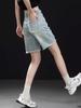 Pantalones cortos vaqueros para mujer, novedad de verano 2024, de cintura alta, combinables, adelgazantes, sueltos, rectos y a la moda.