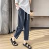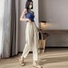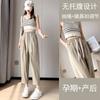 Pantalones de embarazada estilo retro holgado 2024, nuevo estilo, ropa exterior para primavera y verano, pantalones de embarazada de longitud media con cordón, nuevo diseño, pantalones de pierna ancha.