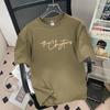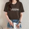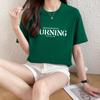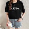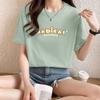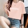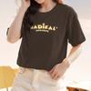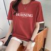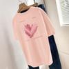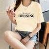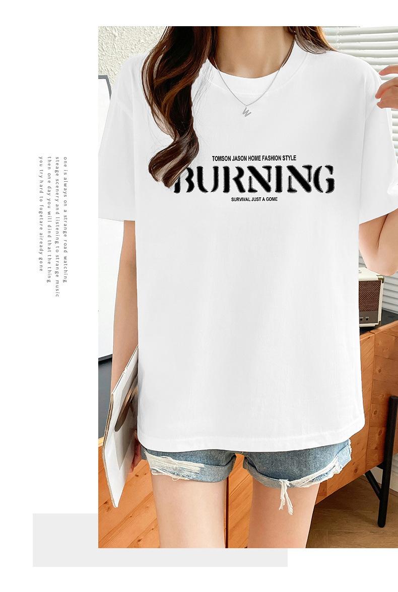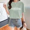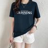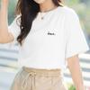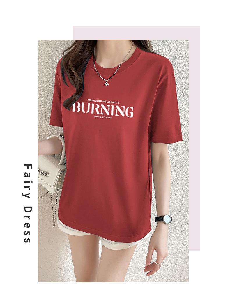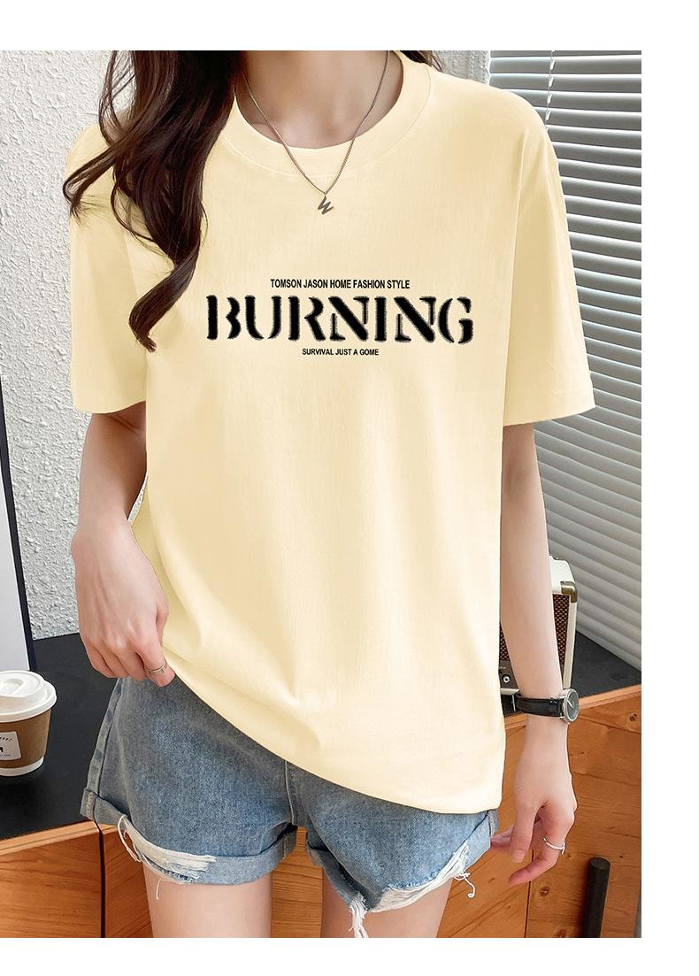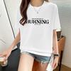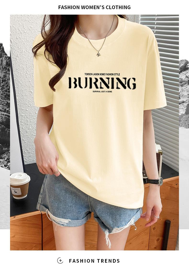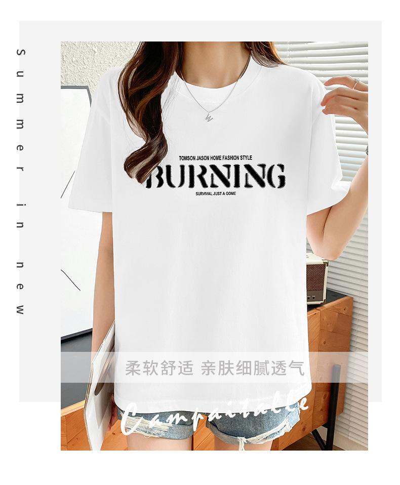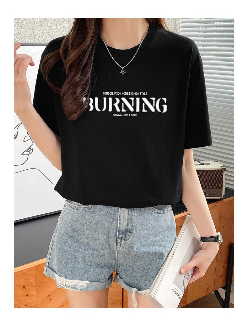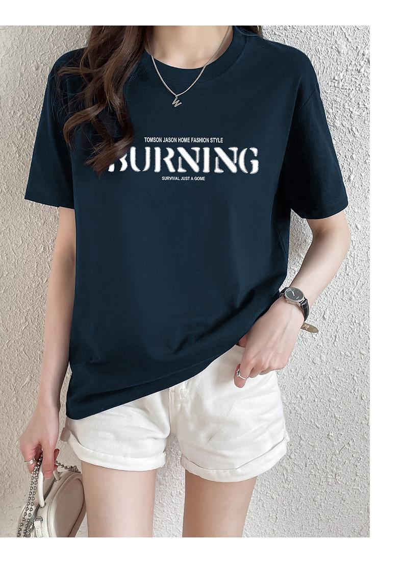 Camiseta de manga corta de algodón grueso de 260 g para mujer, diseño de cuello redondo, camiseta holgada con estampado de nicho y media manga.