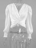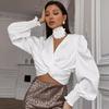 2024 otoño e invierno nuevo diseño francés de cuello en V manga larga camisa temperamento ceñida moda para ir al trabajo transfronteriza estilo europeo y americano