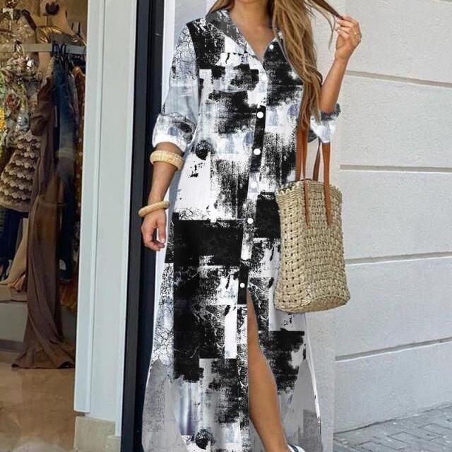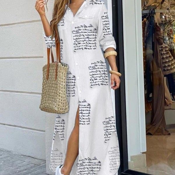 2025 Ventas Calientes Transfronterizas Amazon Ebay Nuevo Europeo y Americano Primavera y Verano Moda Sexy Camisa Falda Larga Vestido para Mujeres