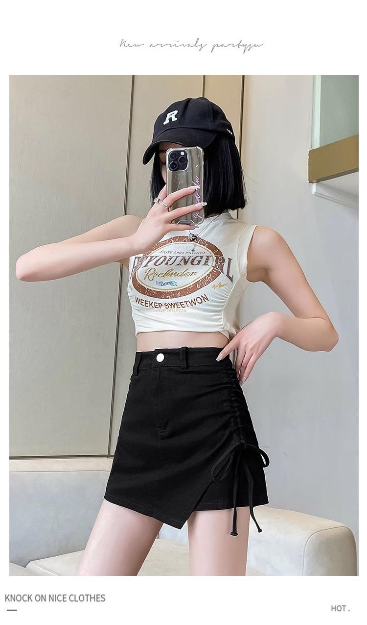 Falda negra sexy para mujer, novedad de verano 2024, ajustada, plisada, de cintura alta, irregular, corte A, pantalones de cadera