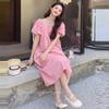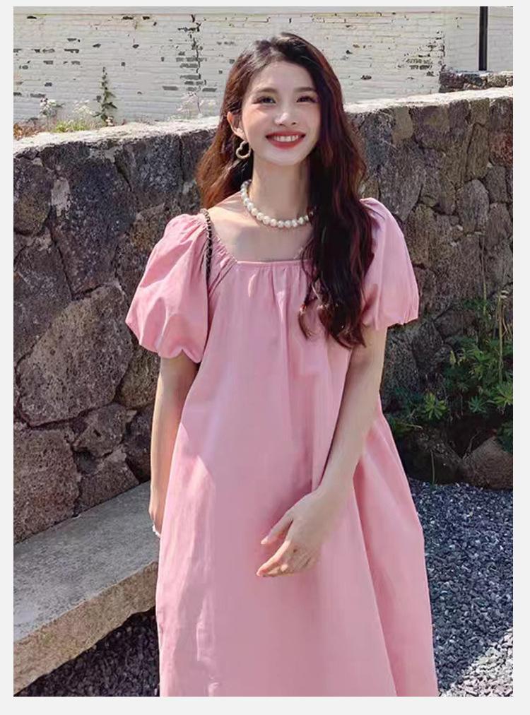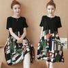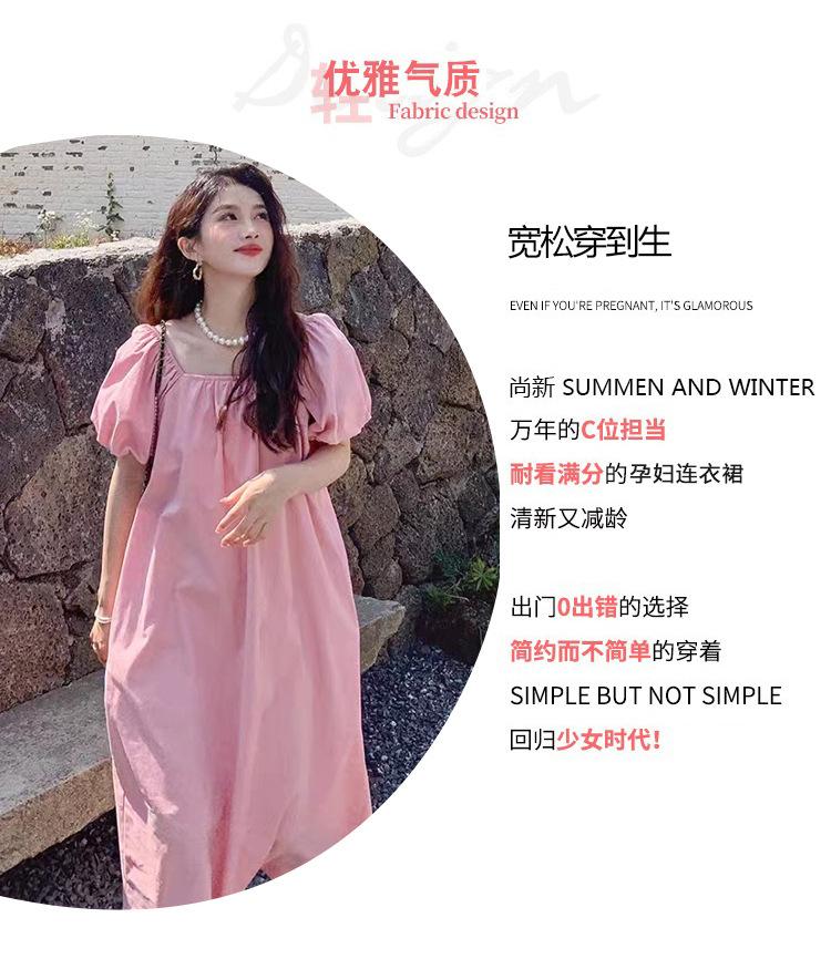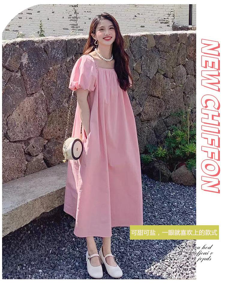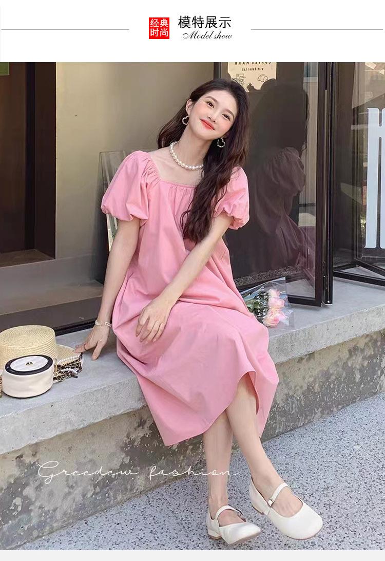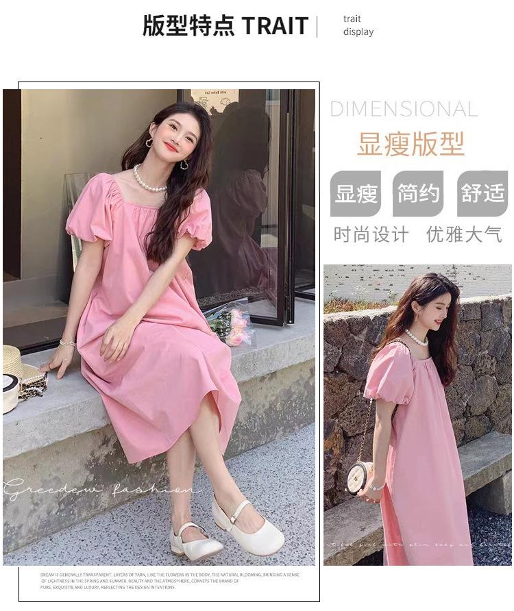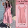 Vestido de talla grande de manga corta de verano nuevo para chica gordita adelgazante elegante cuello cuadrado falda informal suelta de longitud media