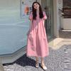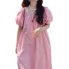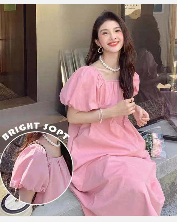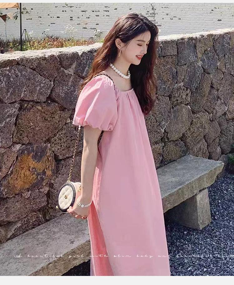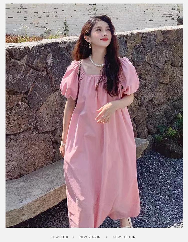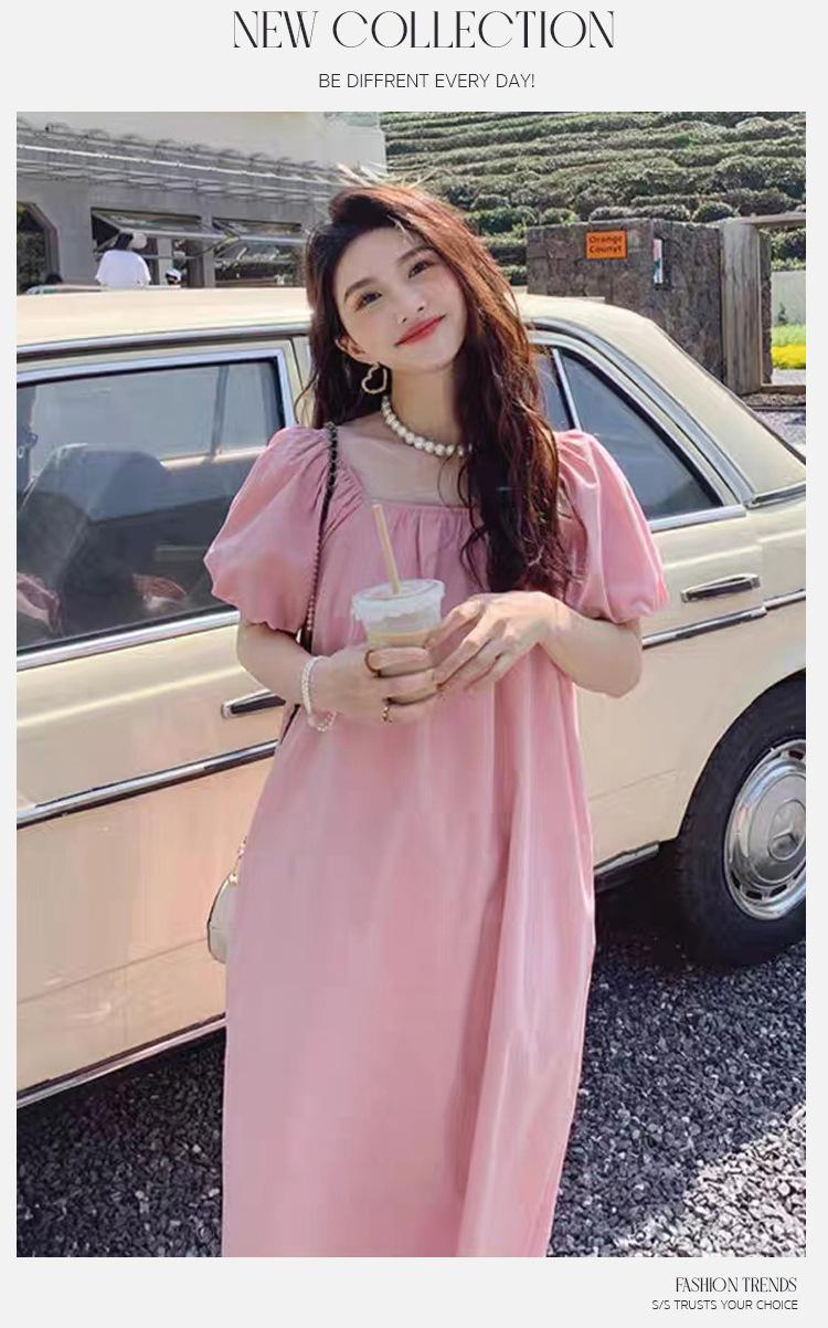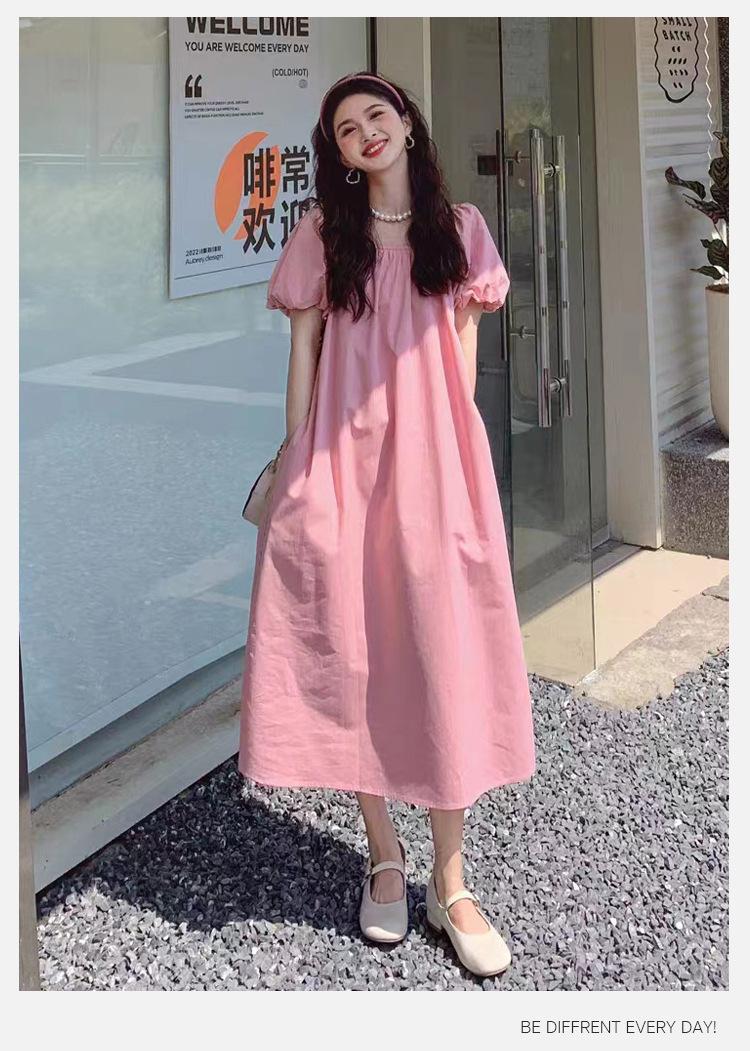 Vestido de talla grande de manga corta de verano nuevo para chica gordita adelgazante elegante cuello cuadrado falda informal suelta de longitud media