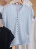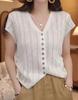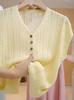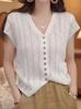 Suéter de manga corta de alta gama para mujer verano 2024 nuevo estilo camiseta de cuello en V moda top calado delgado